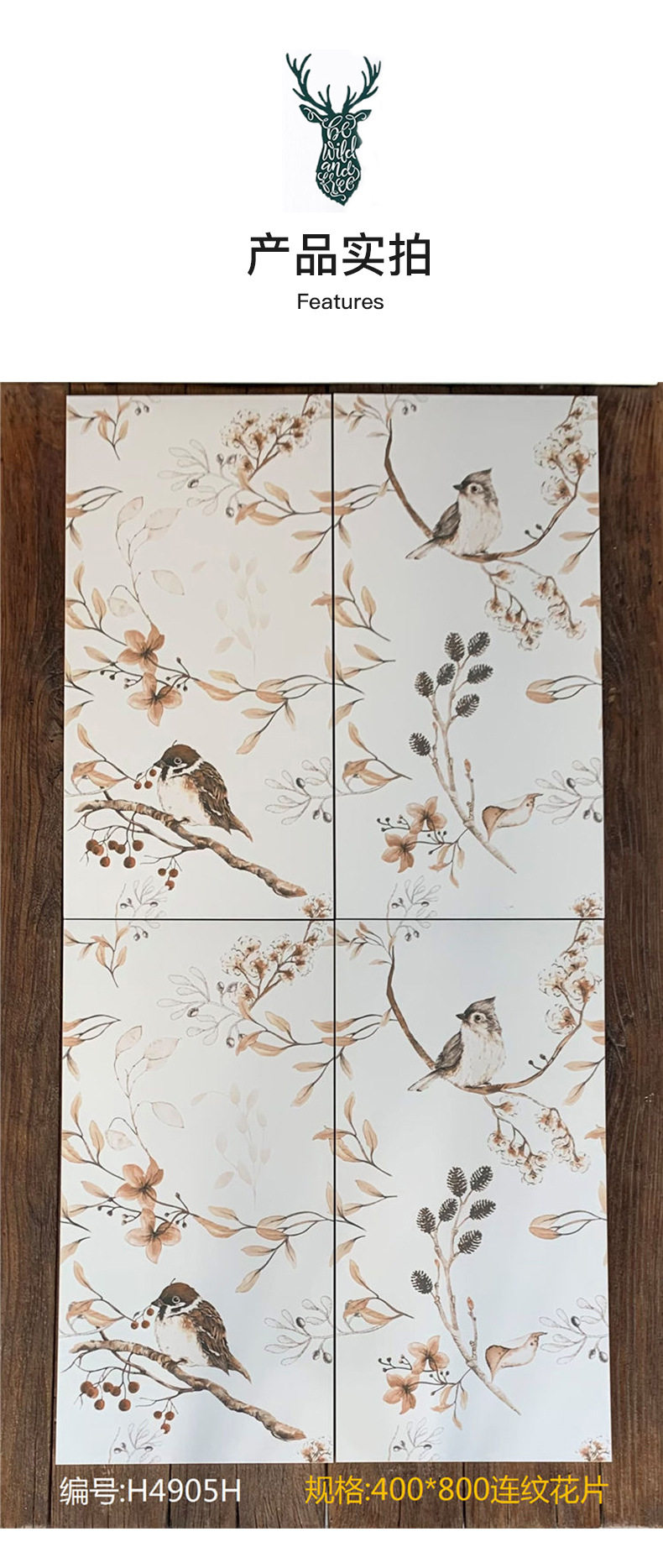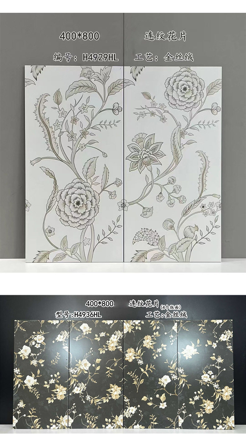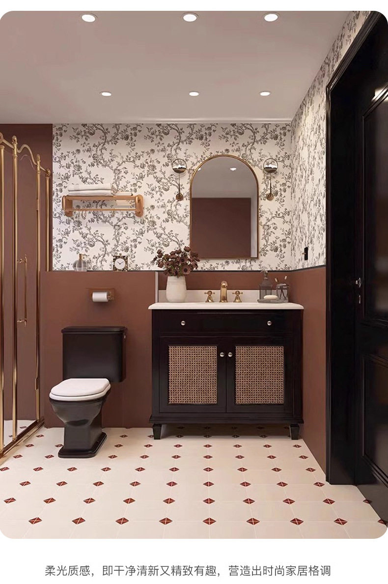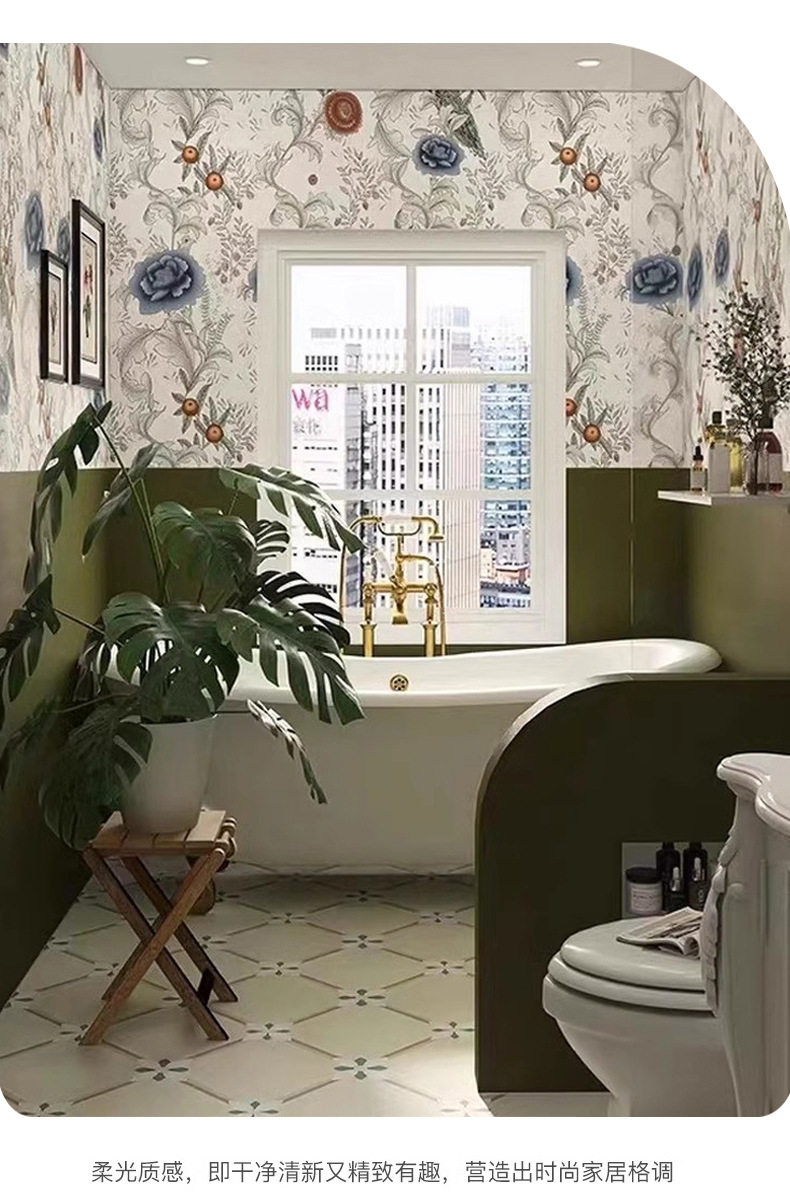 复古柔光浴室花砖卫生间背景墙全瓷400瓷砖法式花片墙砖奶油x800 商品图4