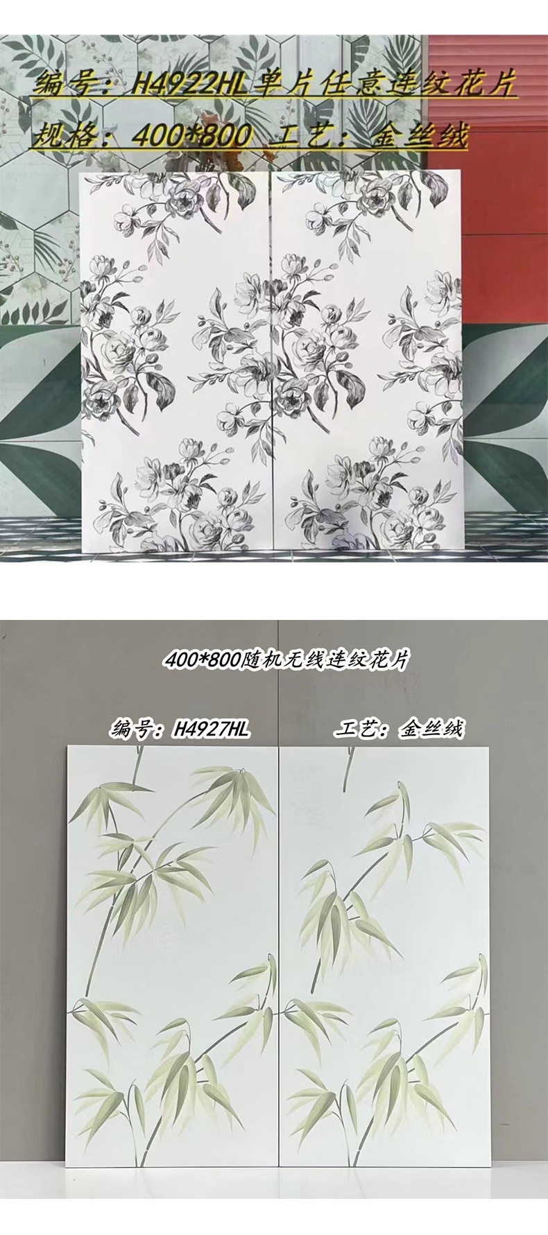 复古柔光浴室花砖卫生间背景墙全瓷400瓷砖法式花片墙砖奶油x800 商品图2