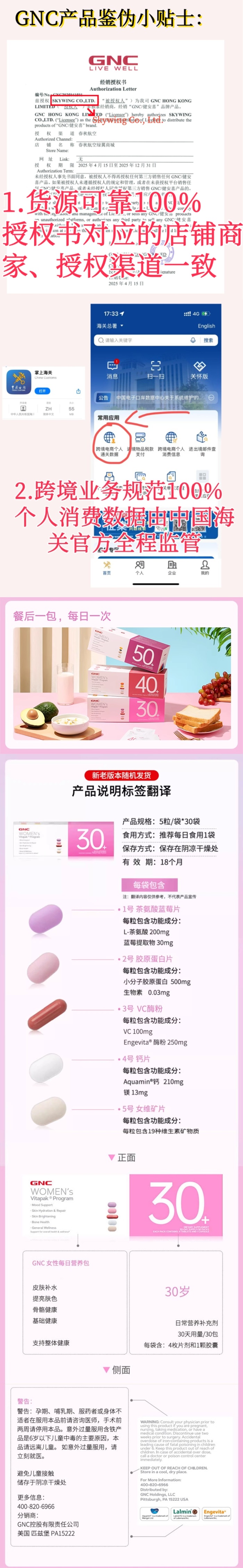 【保税仓】GNC-Vitapak女性30+每日营养包30袋/盒