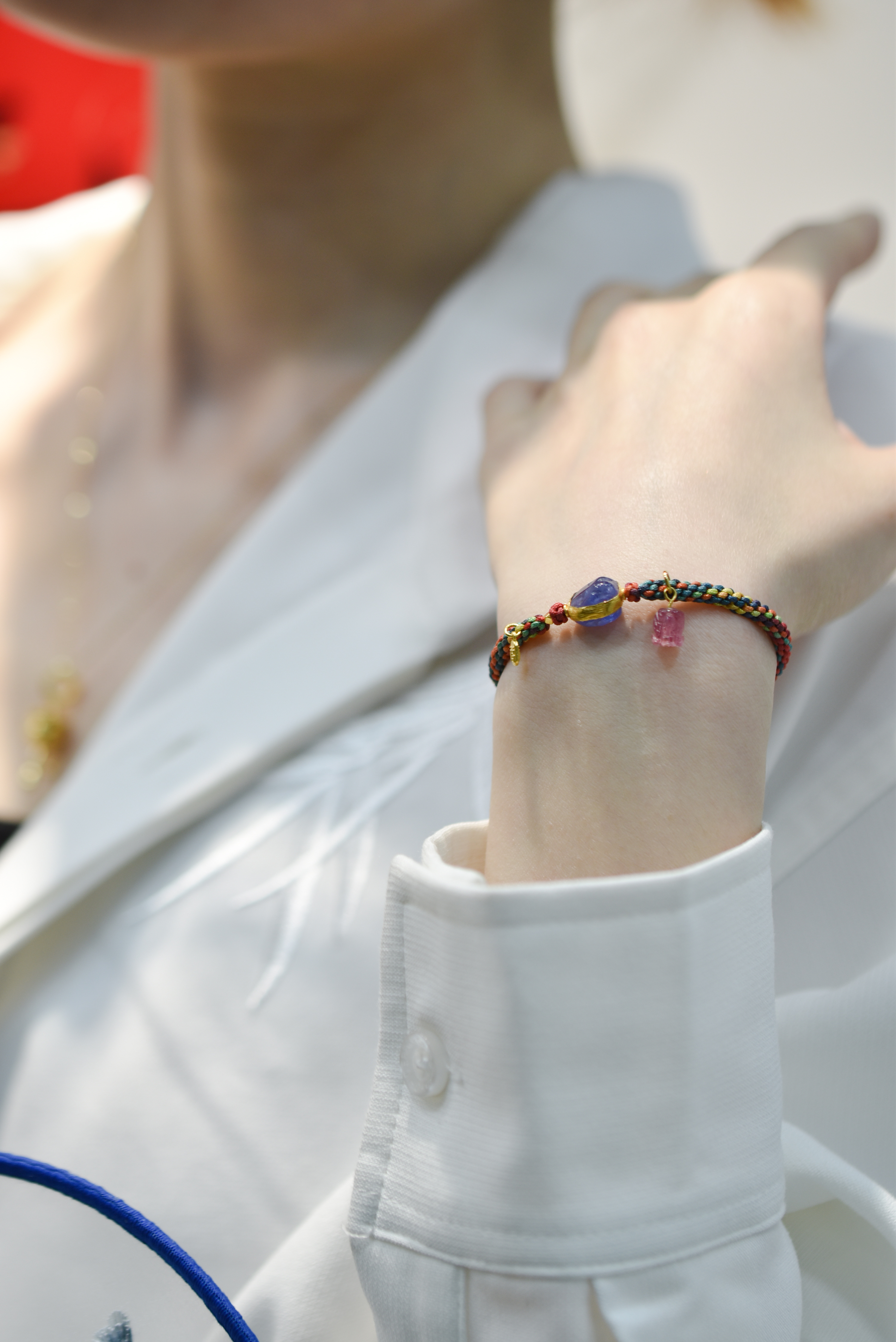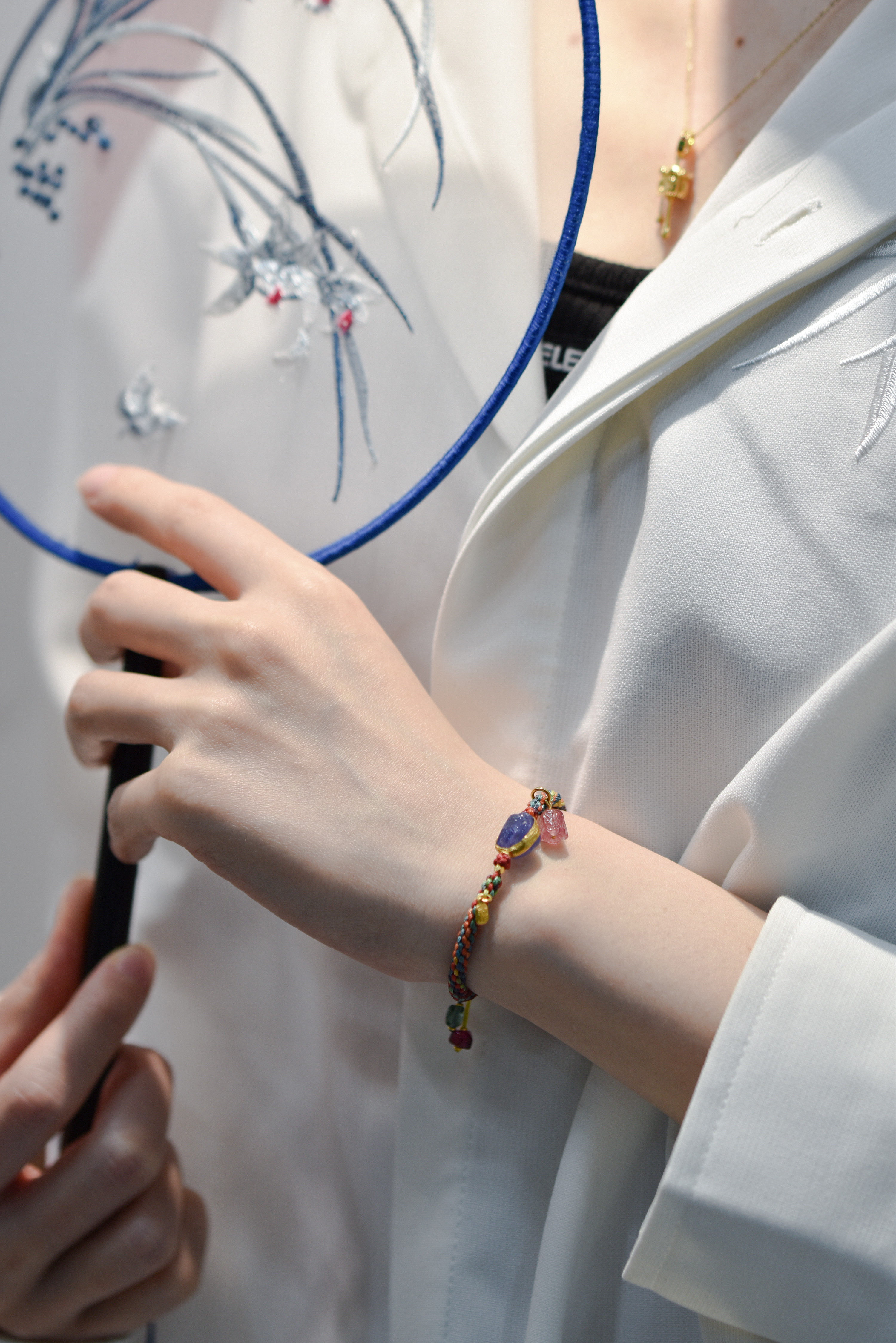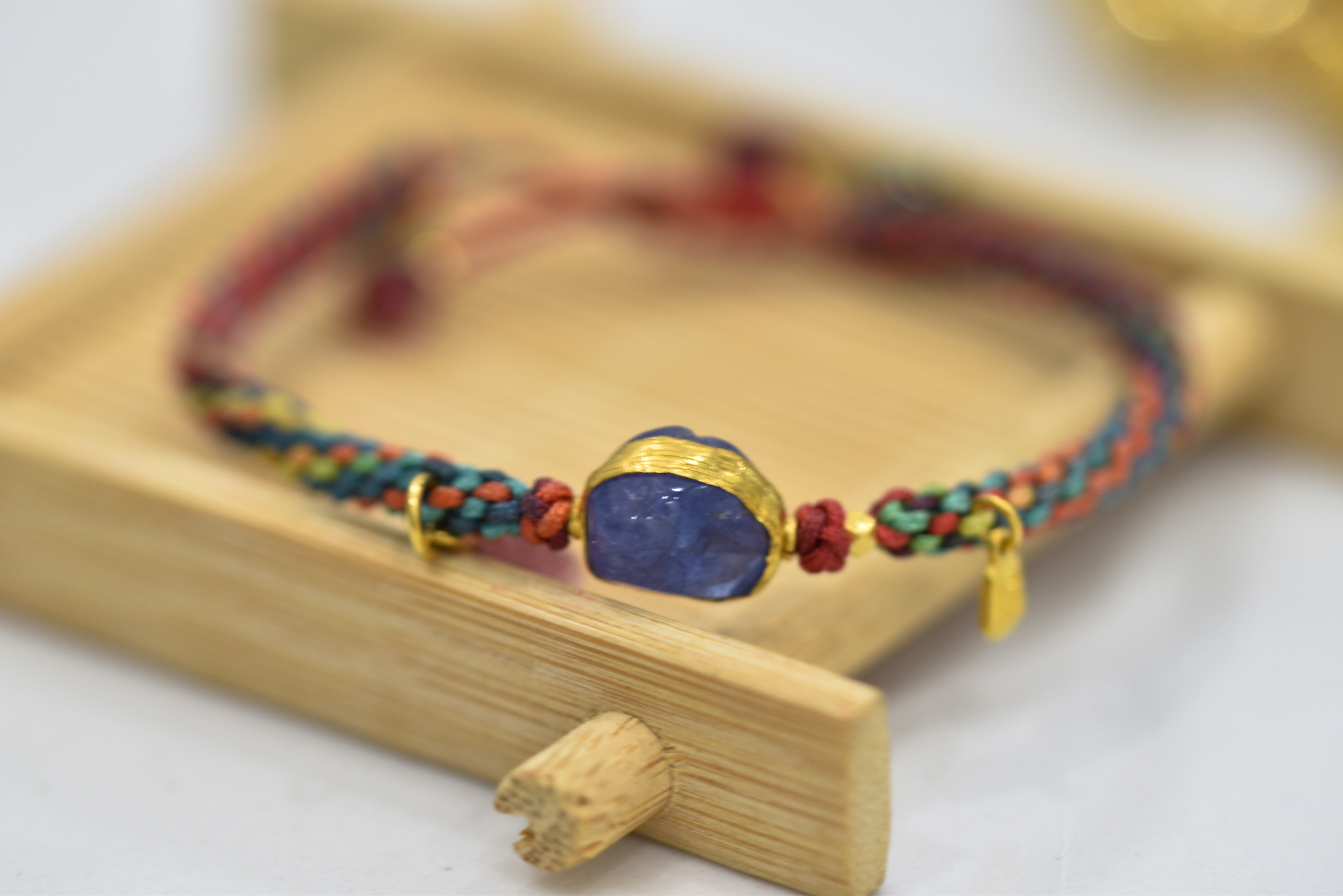 五福瑞彩编织足金坦桑碧玺手环(手围4.5-5.5cm)
