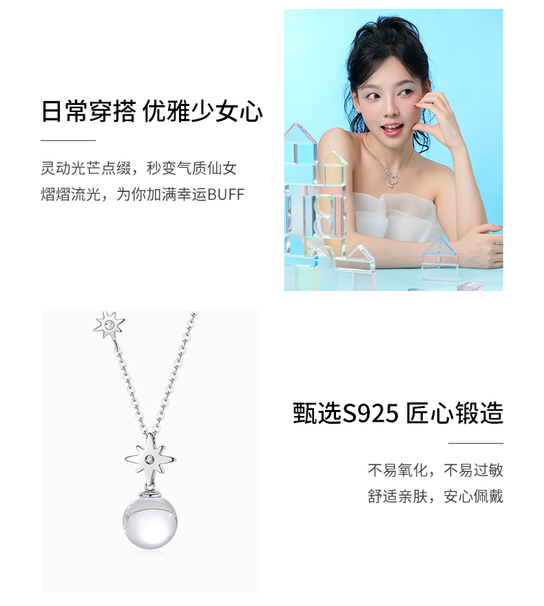 KADER卡蒂罗星芒水晶项链女S925银轻奢小众设计感锁骨链生日礼物送女友