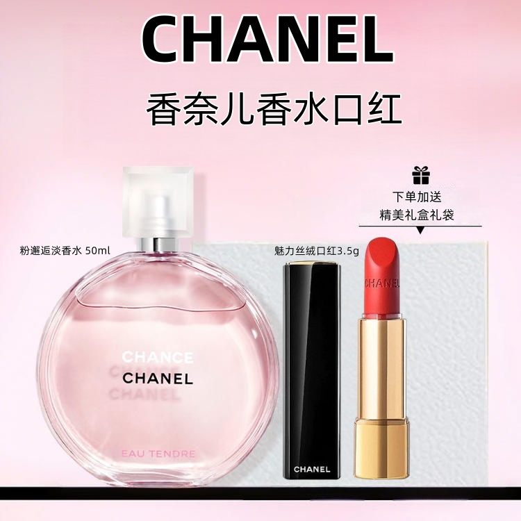 【 礼盒礼袋】CHANEL 香奈儿 邂逅系列 粉邂逅淡香水 50ml+香奈儿 魅力丝绒口红3.5g