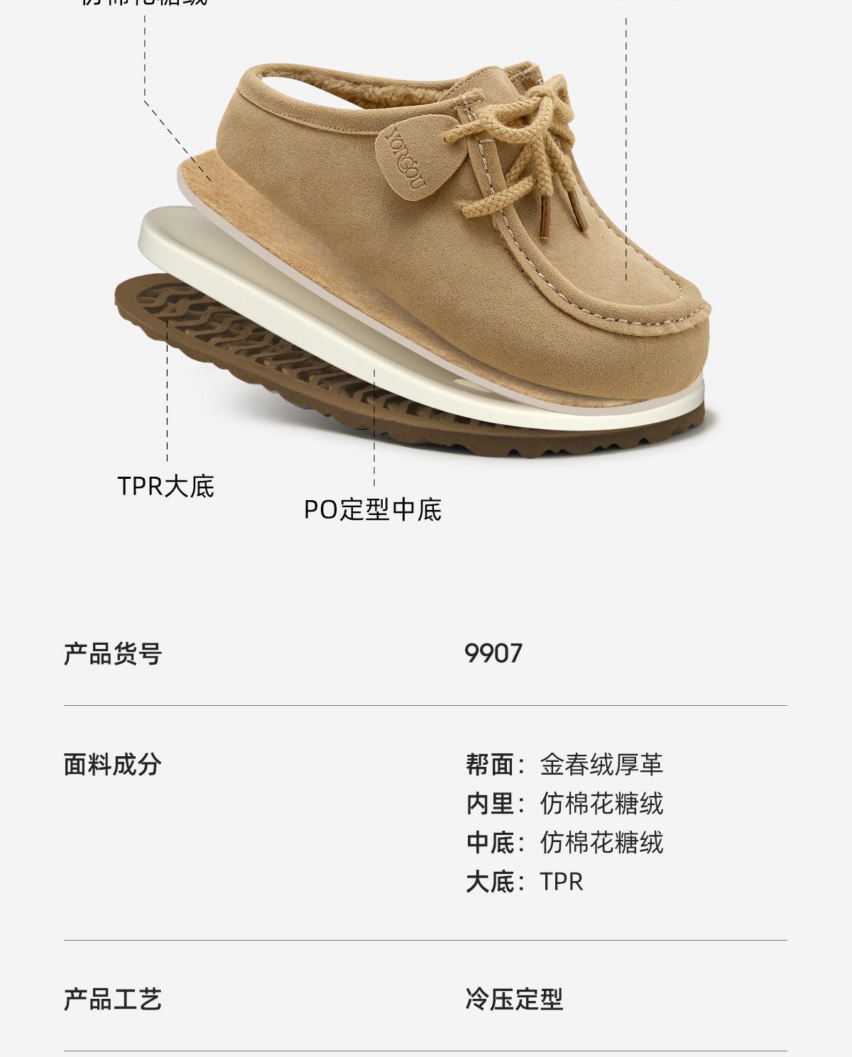 远港可调节鞋带棉拖鞋女士秋冬季防滑可外穿加绒保暖包头勃肯拖鞋