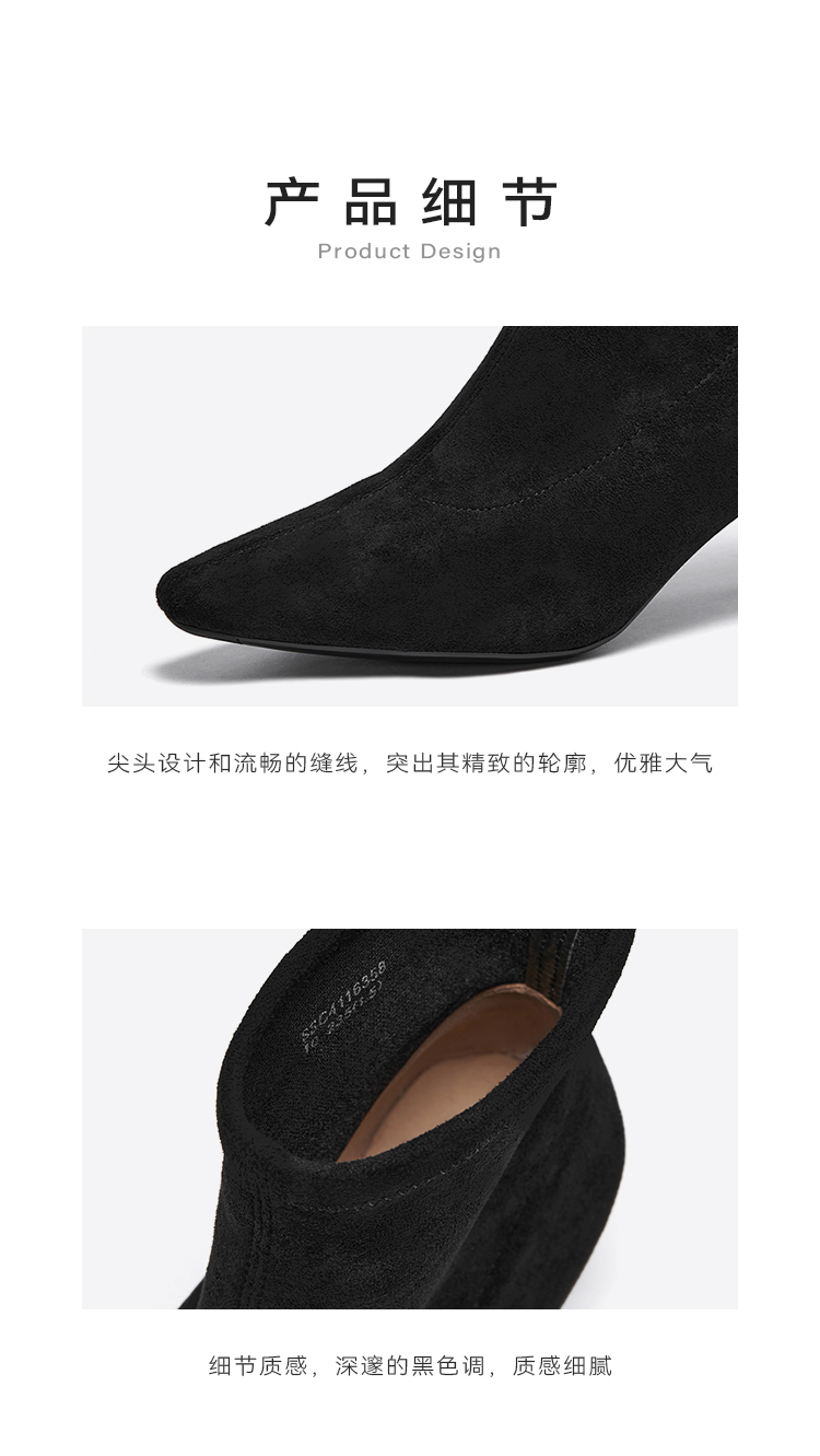 星期六优雅绒面尖头显瘦时装靴SSC4116358