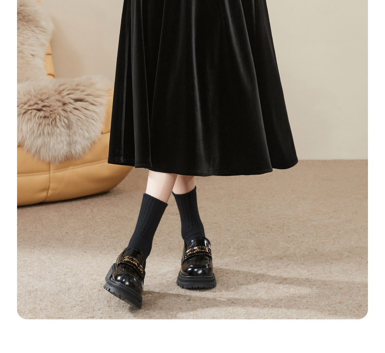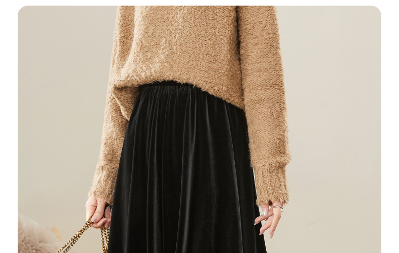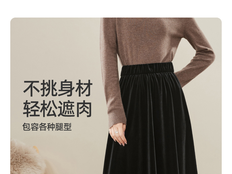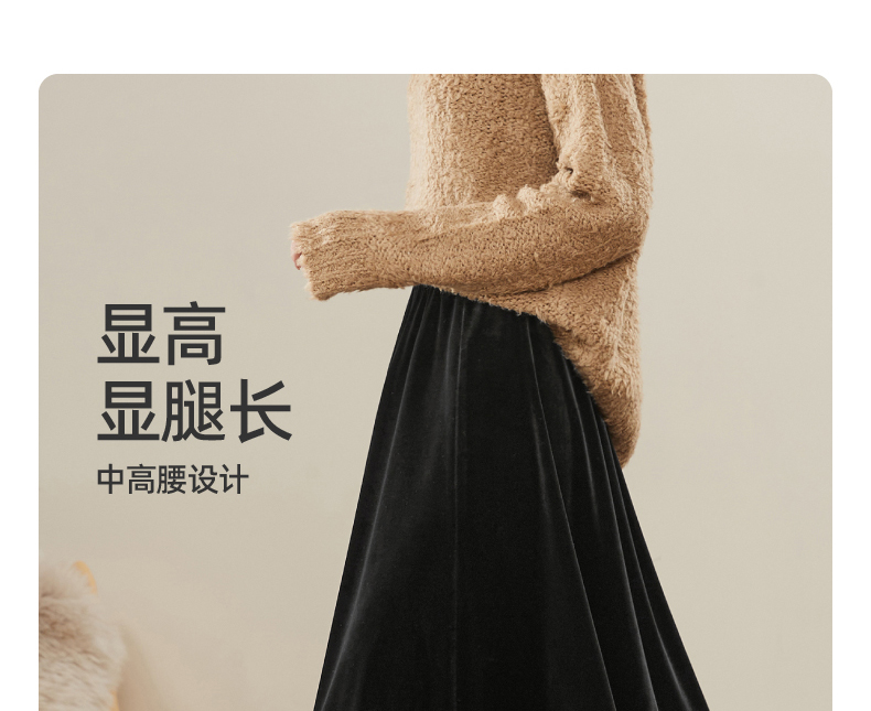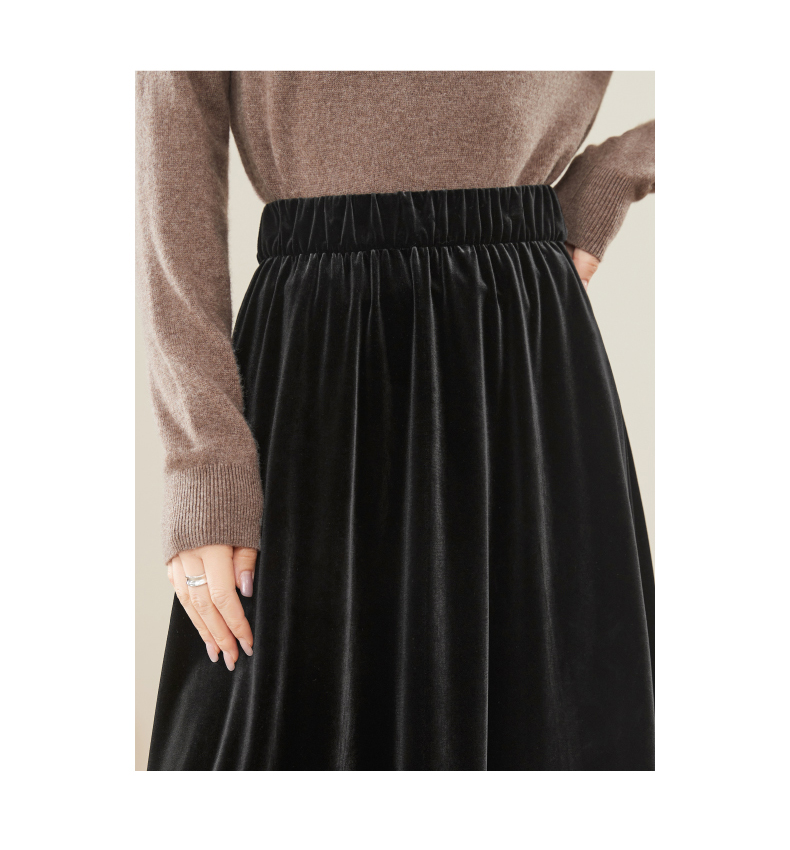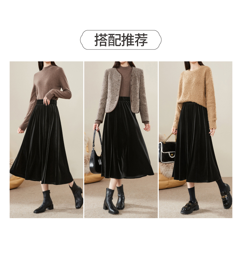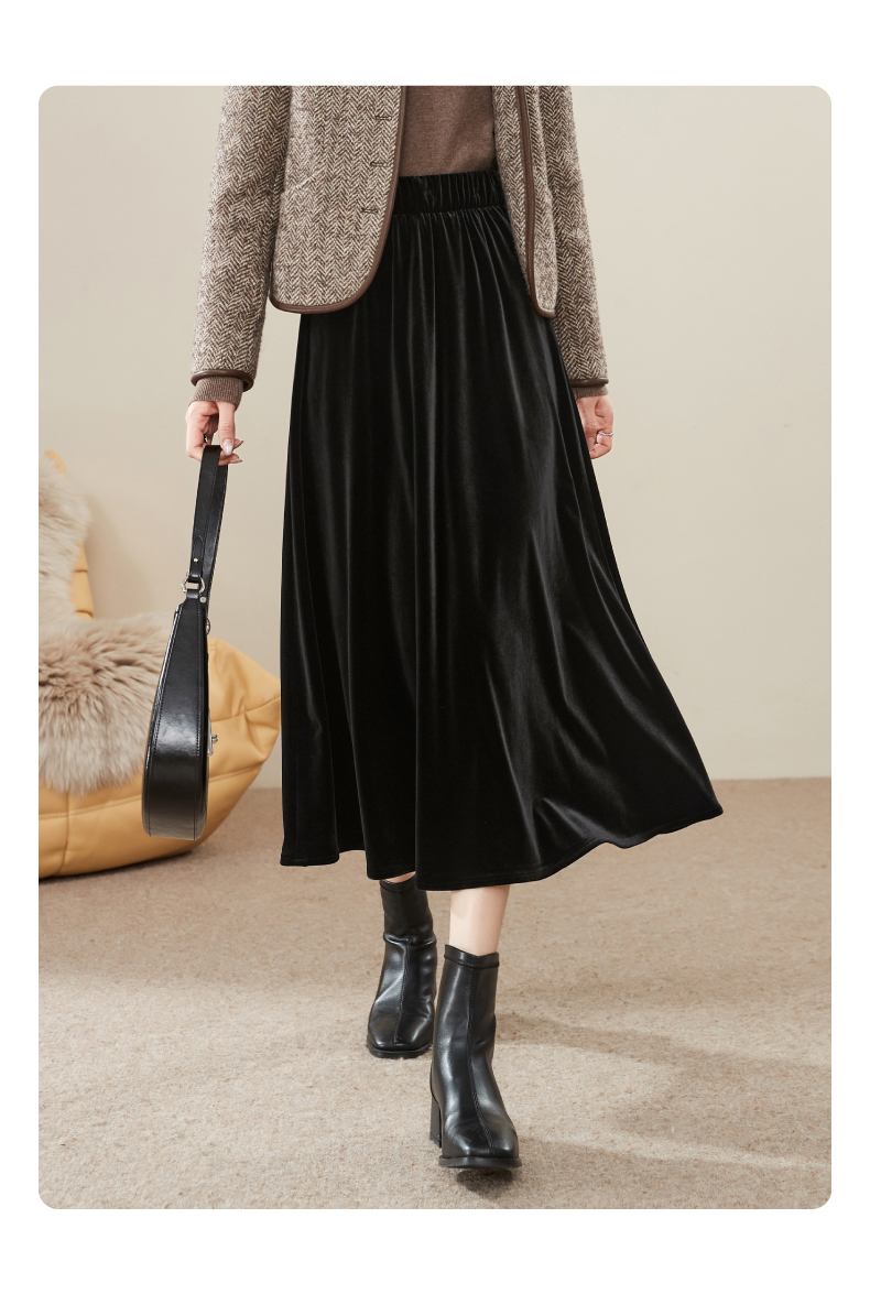 逸阳2024年冬季高腰丝绒A版裙、宽松遮肉、显瘦百搭宽松半身裙子1811