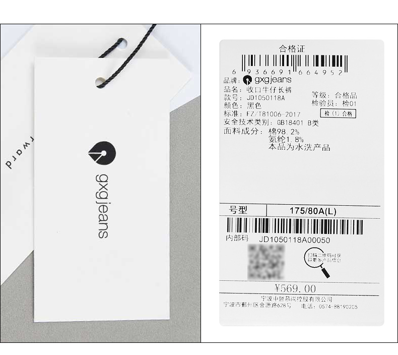 gxgjeans男装春季休闲裤男潮流黑色束脚裤