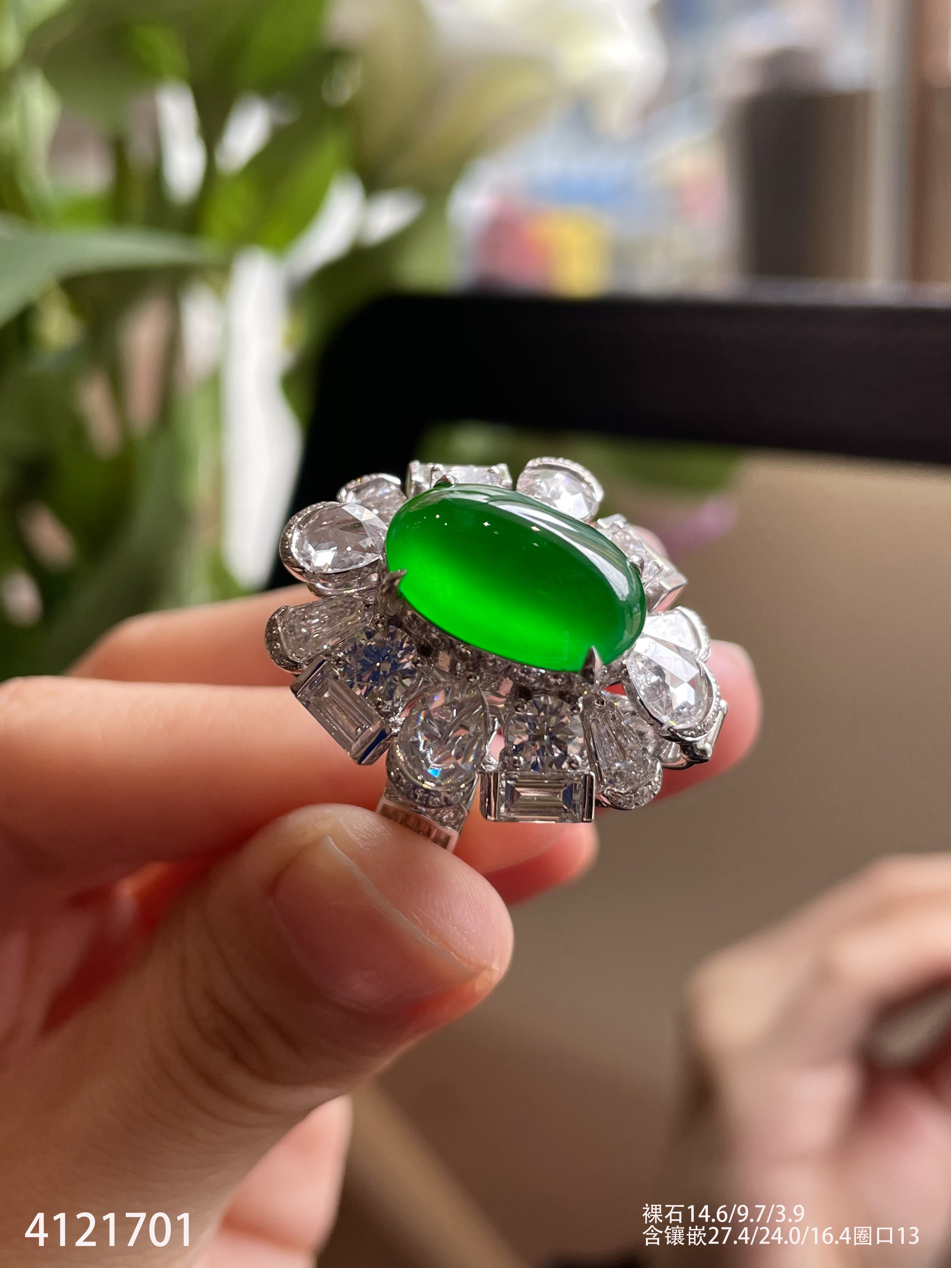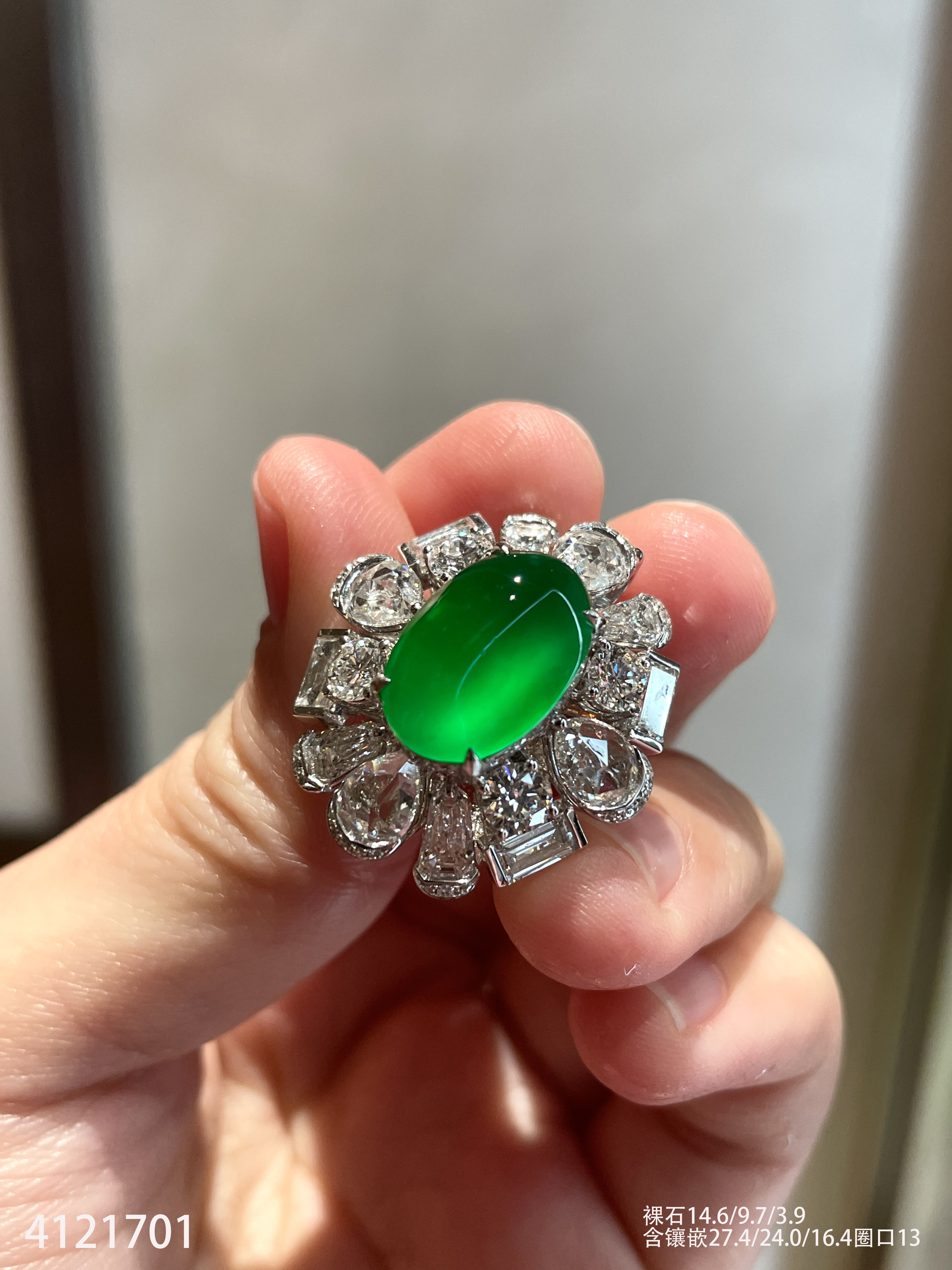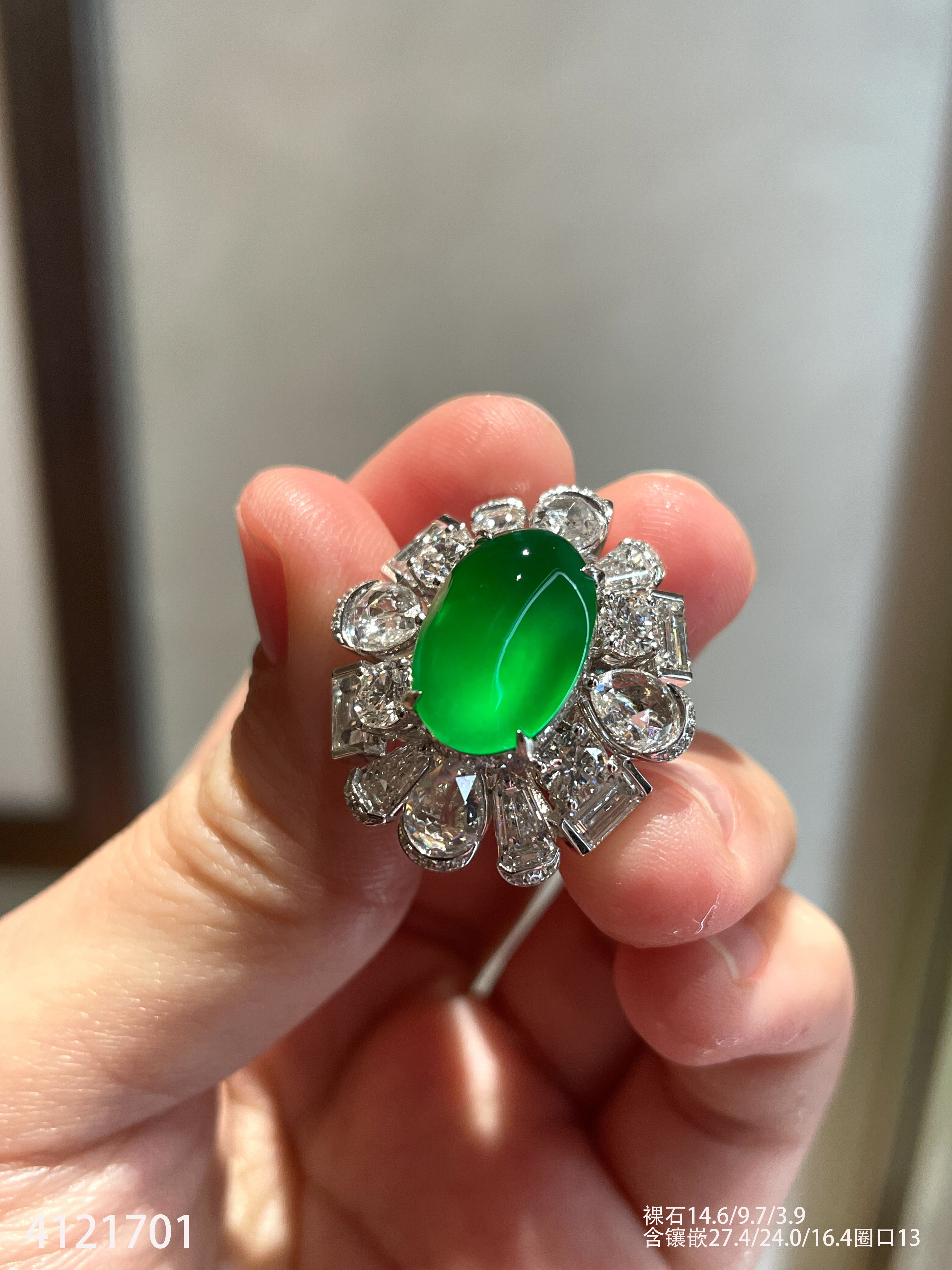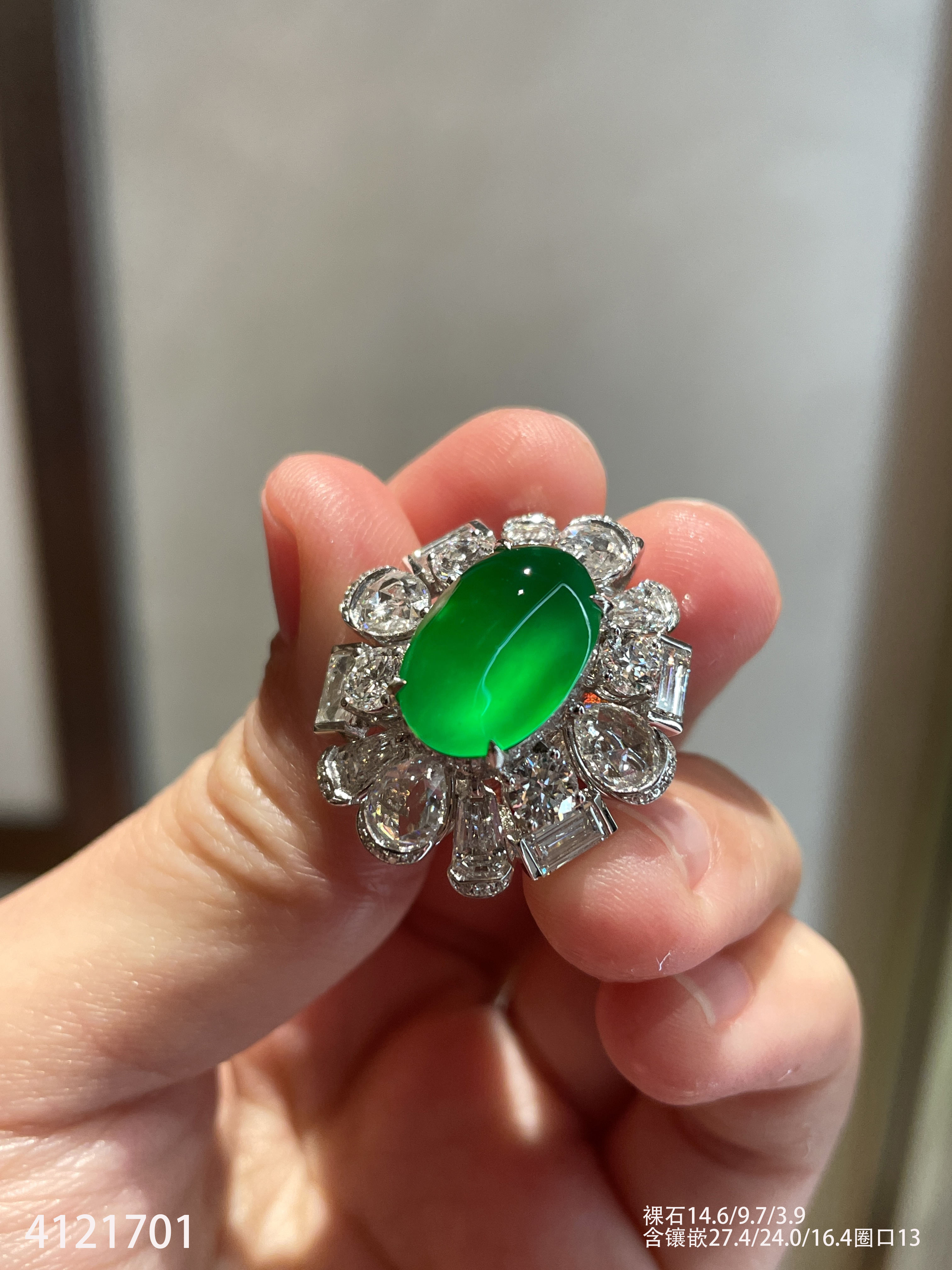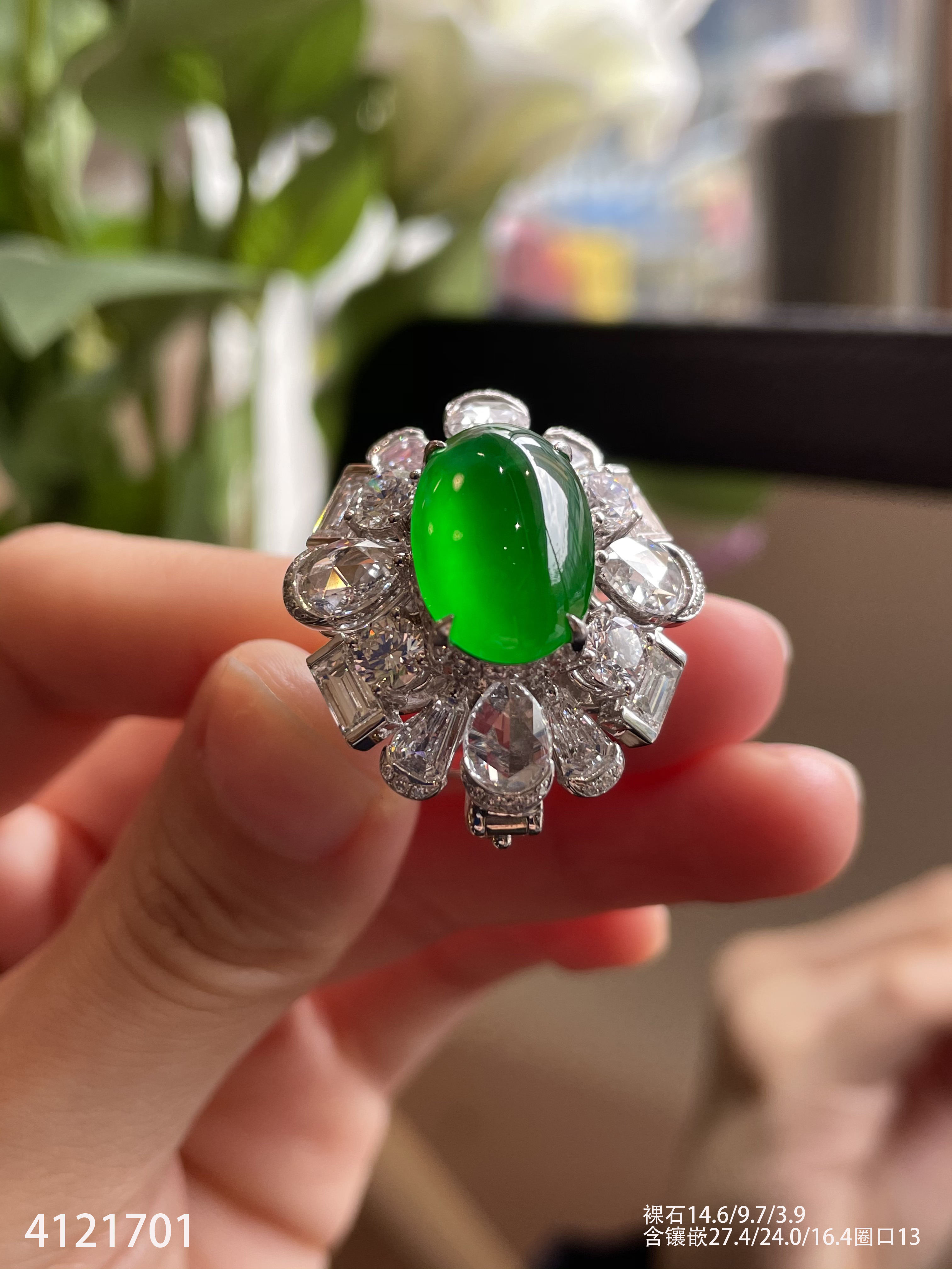 老坑龙石种帝王绿蛋面戒指【4121701】具体价格微信咨询
