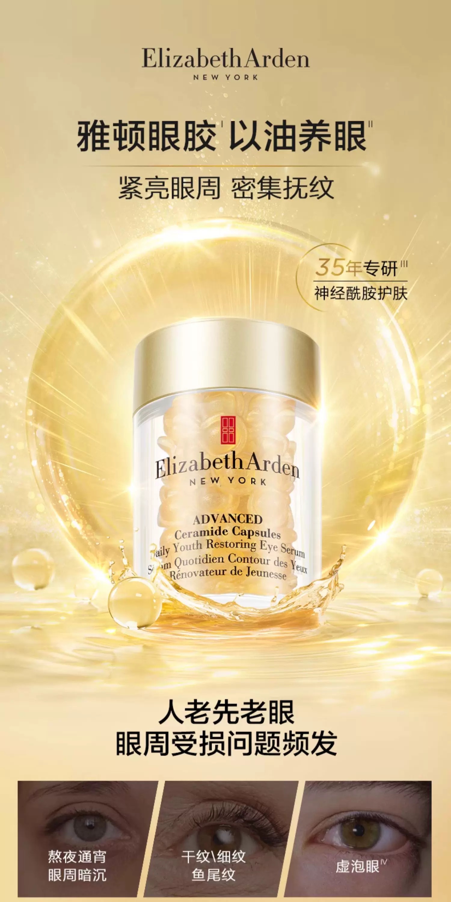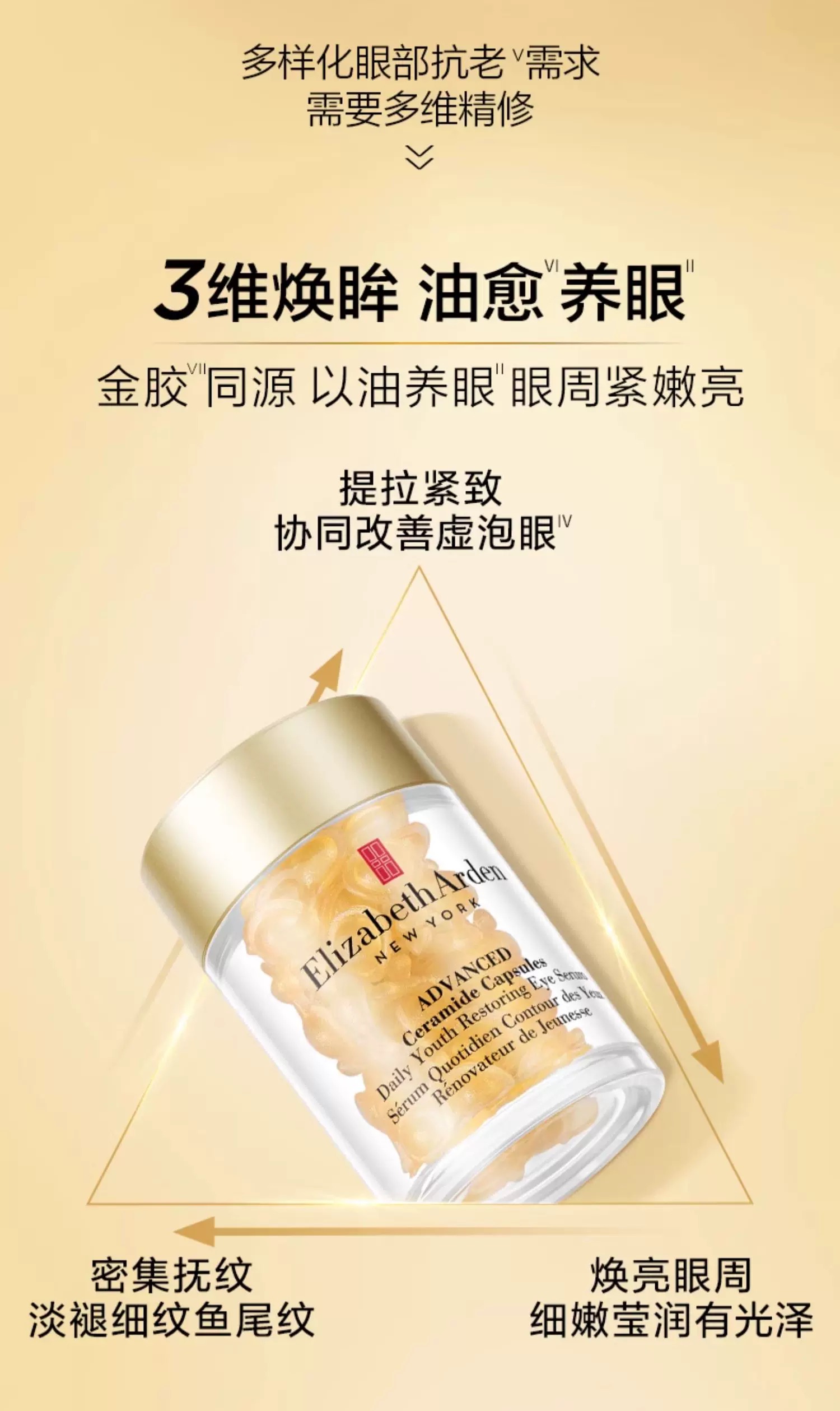Elizabeth Arden/伊丽莎白雅顿眼胶眼精华油淡纹抗皱 紧致神经酰胺保湿次抛胶囊 60粒