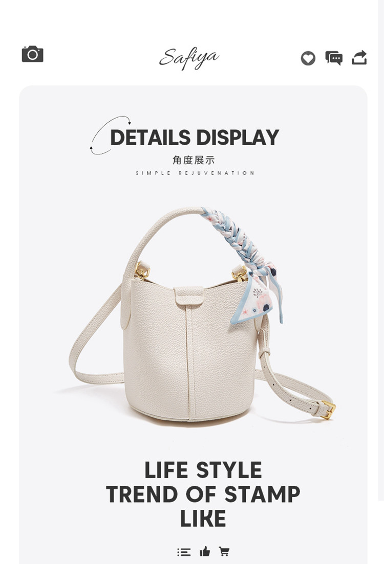 Safiya/索菲娅二层牛皮2022新款水桶包单肩包女式斜挎包手提包SF900107Y