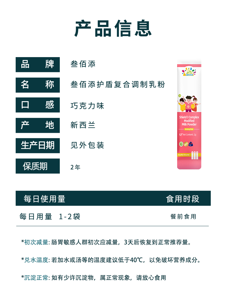 叁佰添护盾Ⅰ复合调制乳粉儿童七联益生菌蛋白酶乳糖酶 2g*30(2025.01到期)