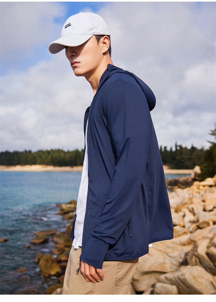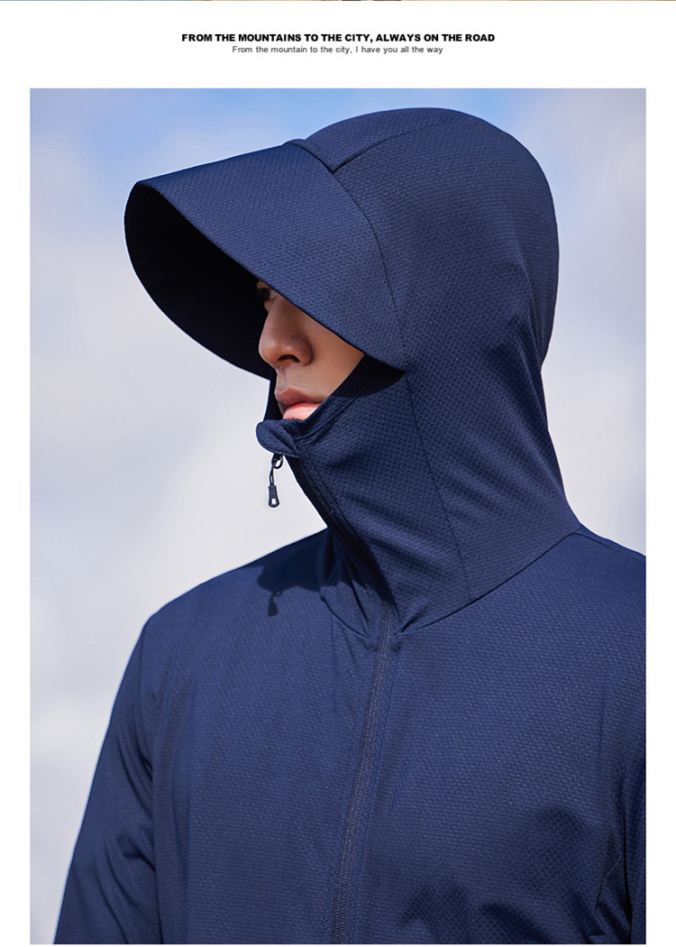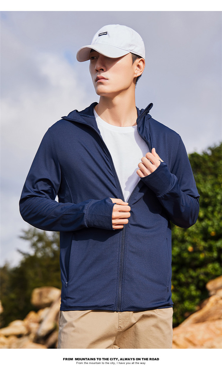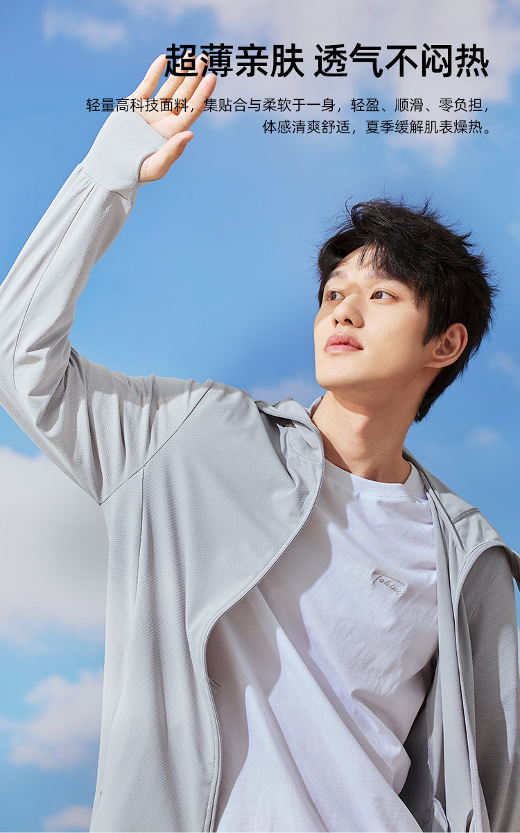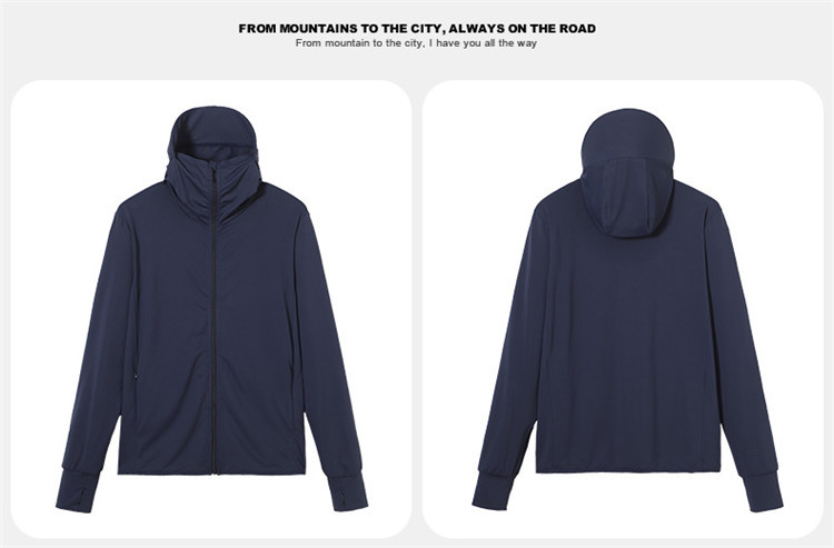 拓路者皮肤衣连帽外套简约纯色防晒衣短款拉链开衫显瘦防晒服男