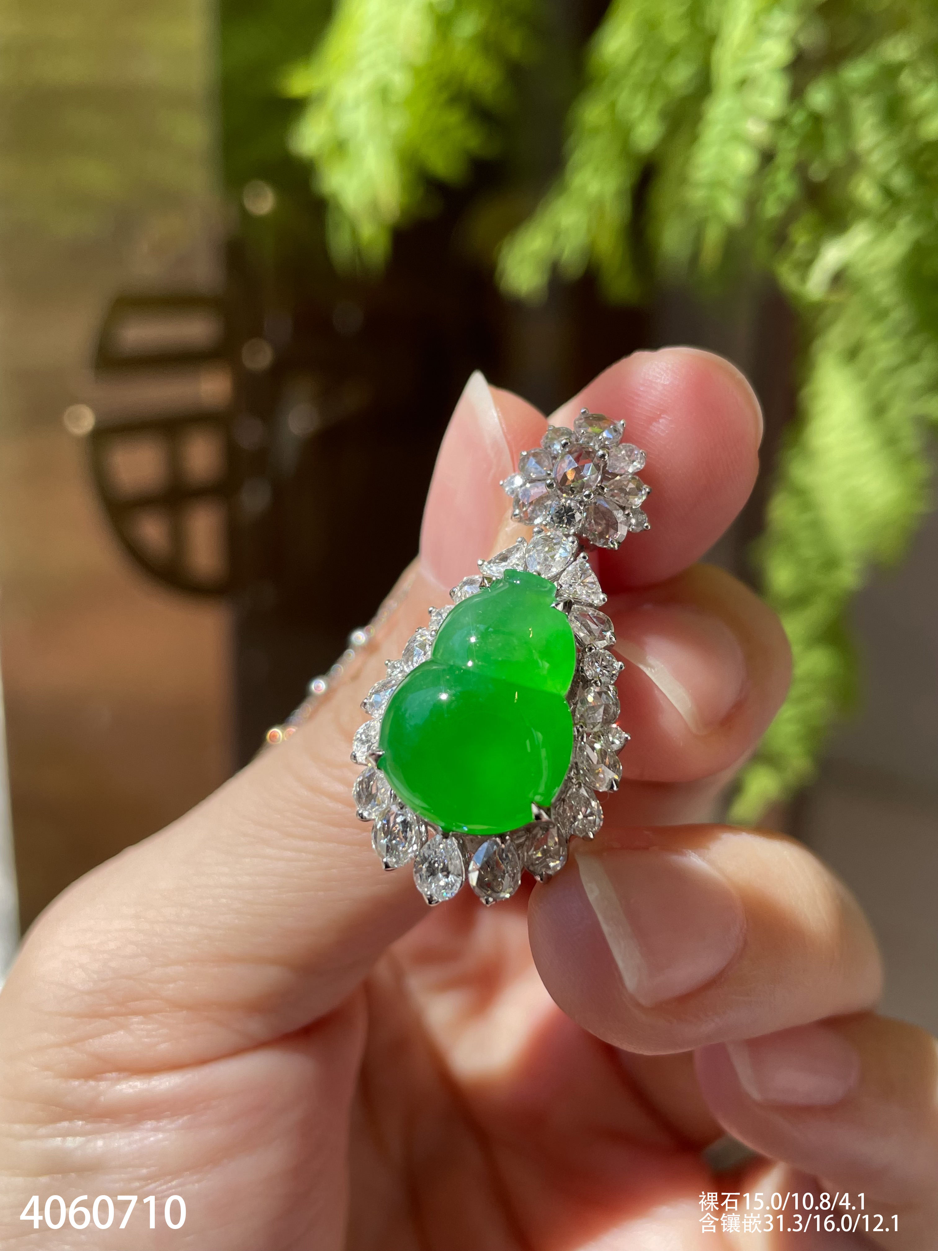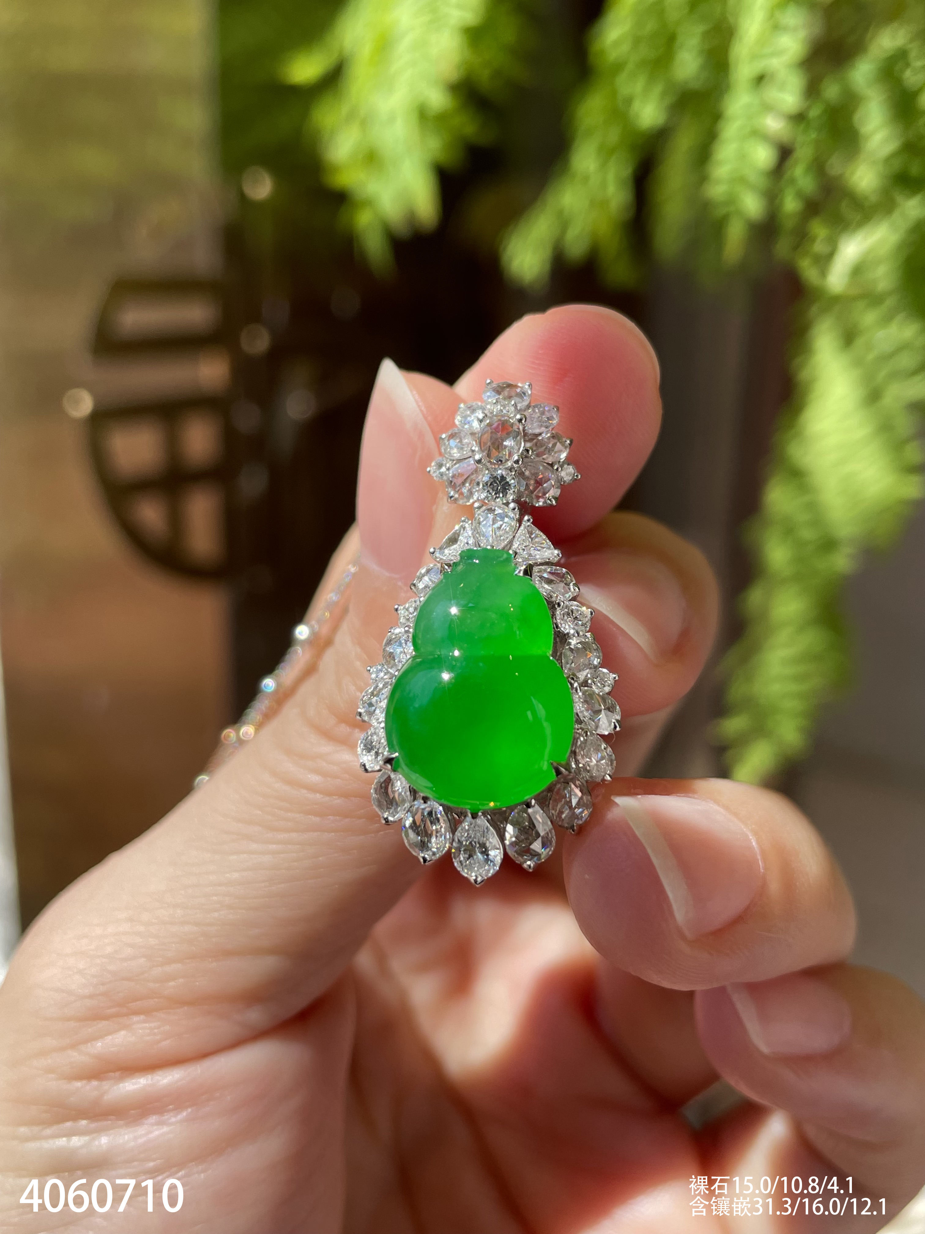 高冰艳绿葫芦吊坠【4060710】具体价格微信咨询