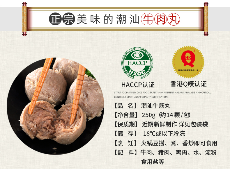 喜得佳 手打潮汕正宗牛筋丸250g 火锅食材牛肉丸牛筋丸系列涮火锅丸子烧烤丸串关东煮汤料必备供港品质非清真