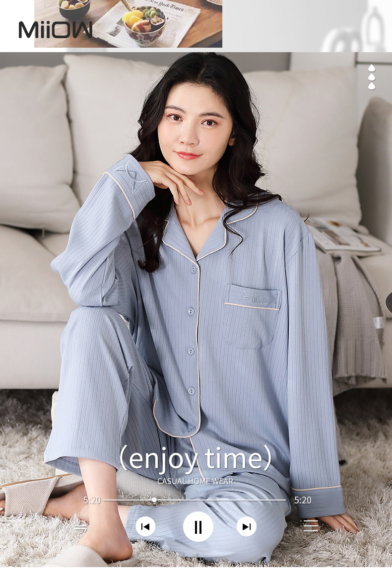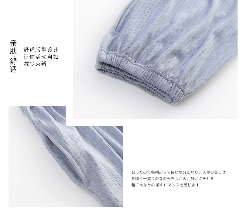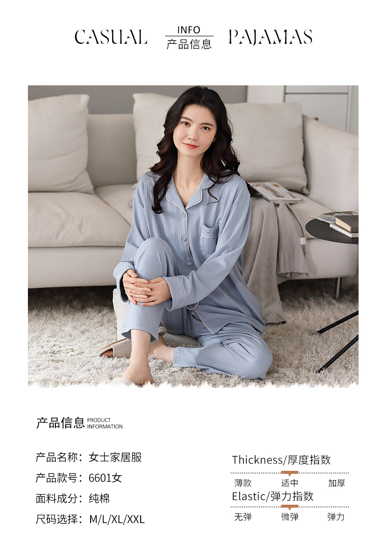 猫人长袖开衫睡衣女MR6601U蓝色双面100%棉