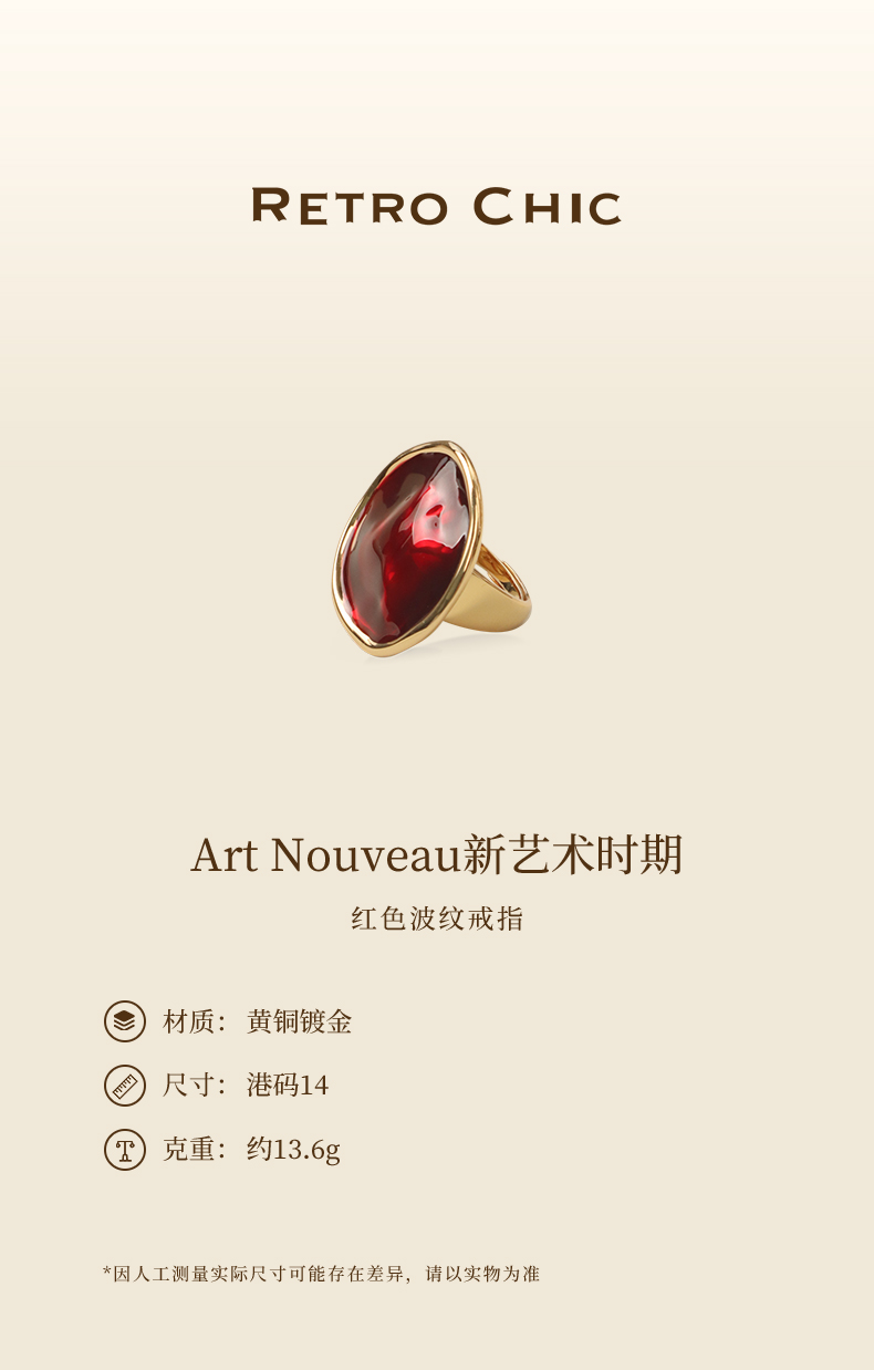 【谭维维&辛芷蕾&戚薇同款】Art Nouveau新艺术时期 | 红色波纹戒指(活口)