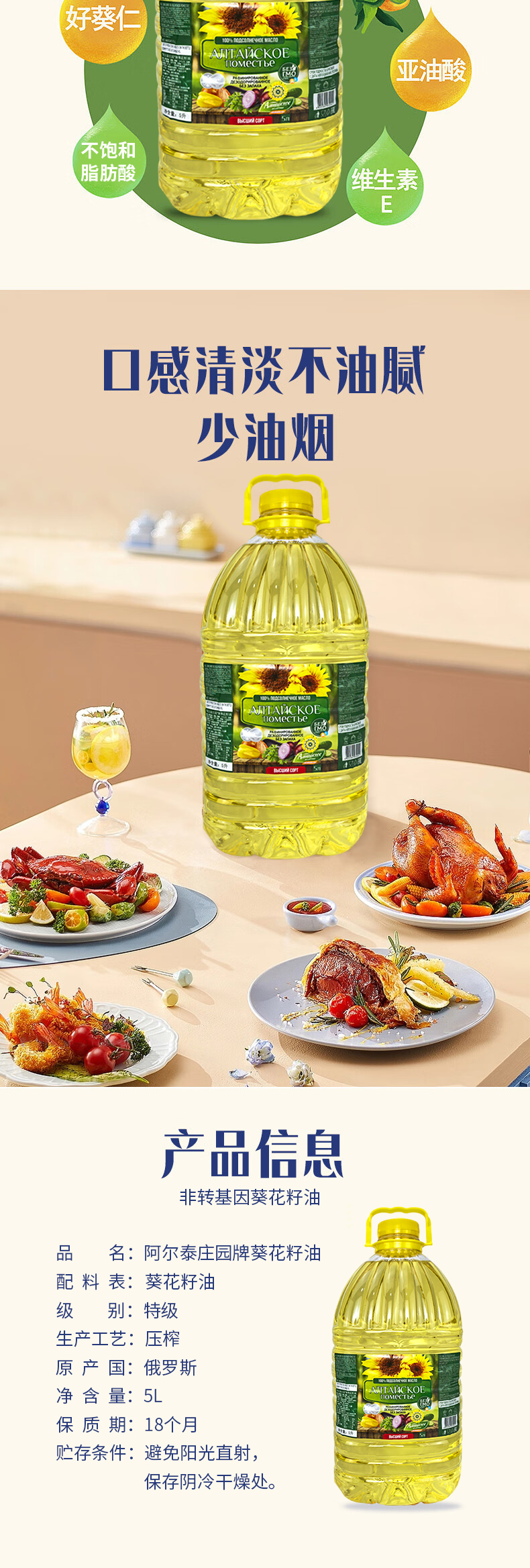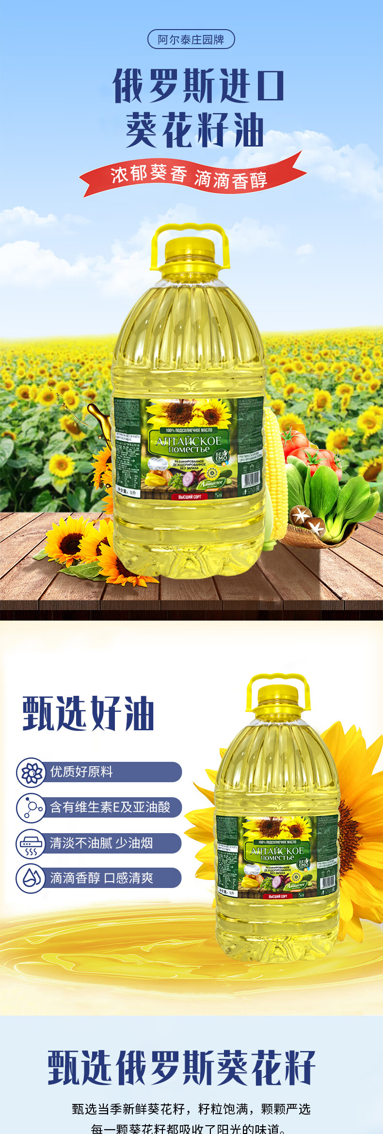 俄罗斯进口阿尔泰庄园牌葵花籽油5L
