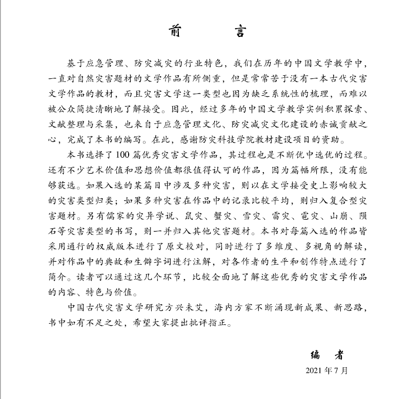 中国古代灾害文学作品研读(防灾减灾系列教材)