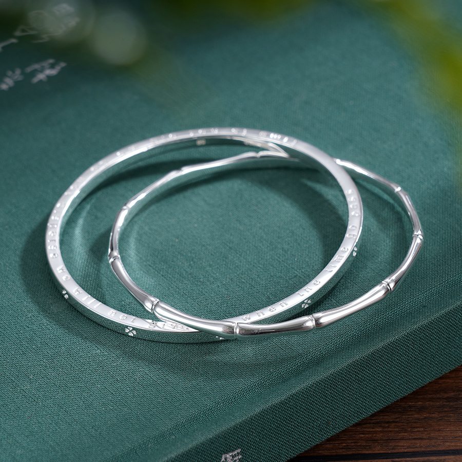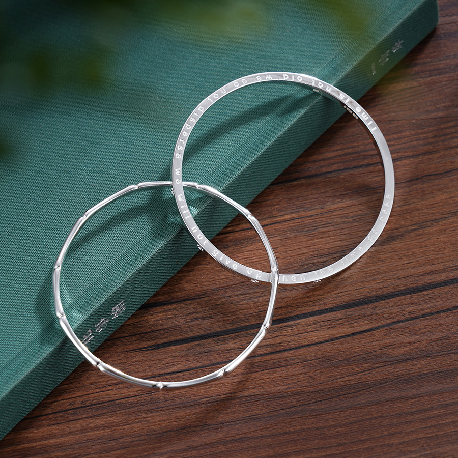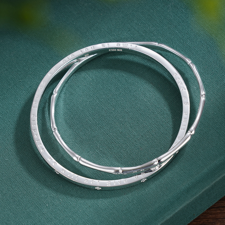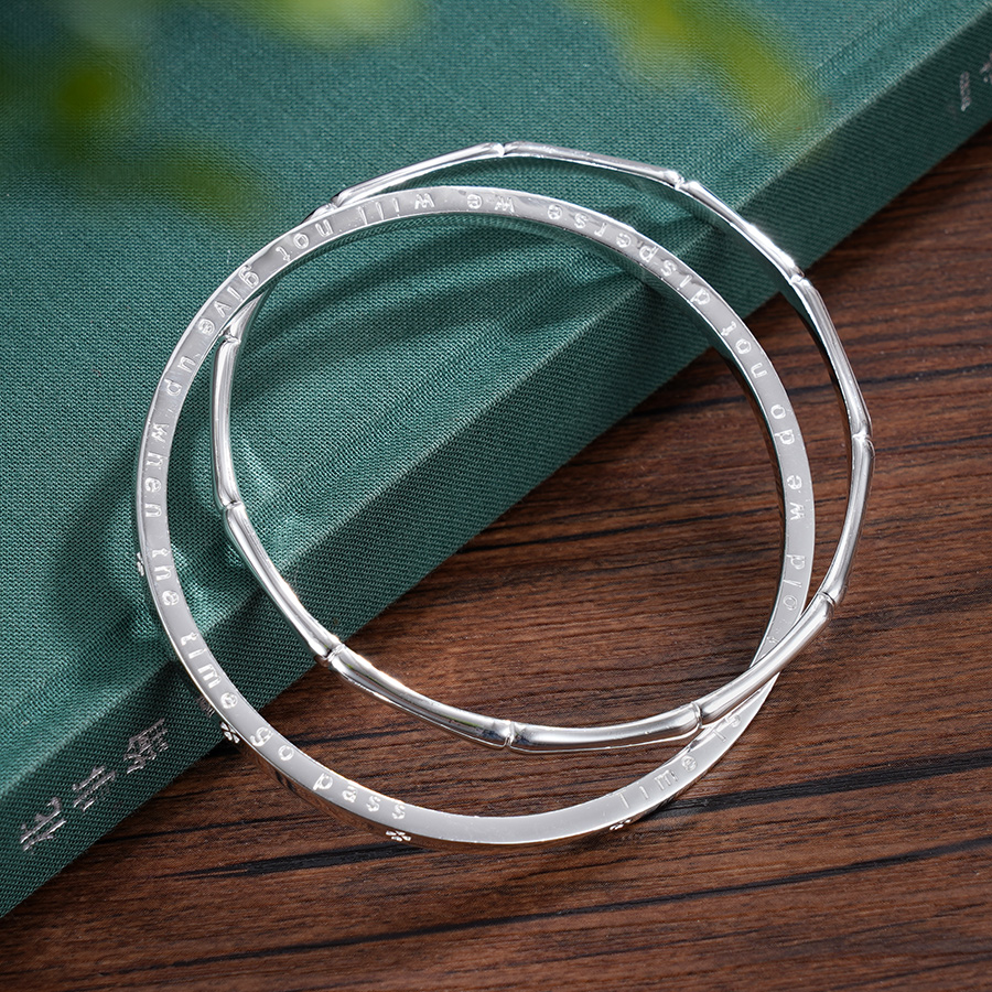 子佩集S999银【时光不老】手镯【TC0242336】纯银手镯双环两个圈竹节英文2507