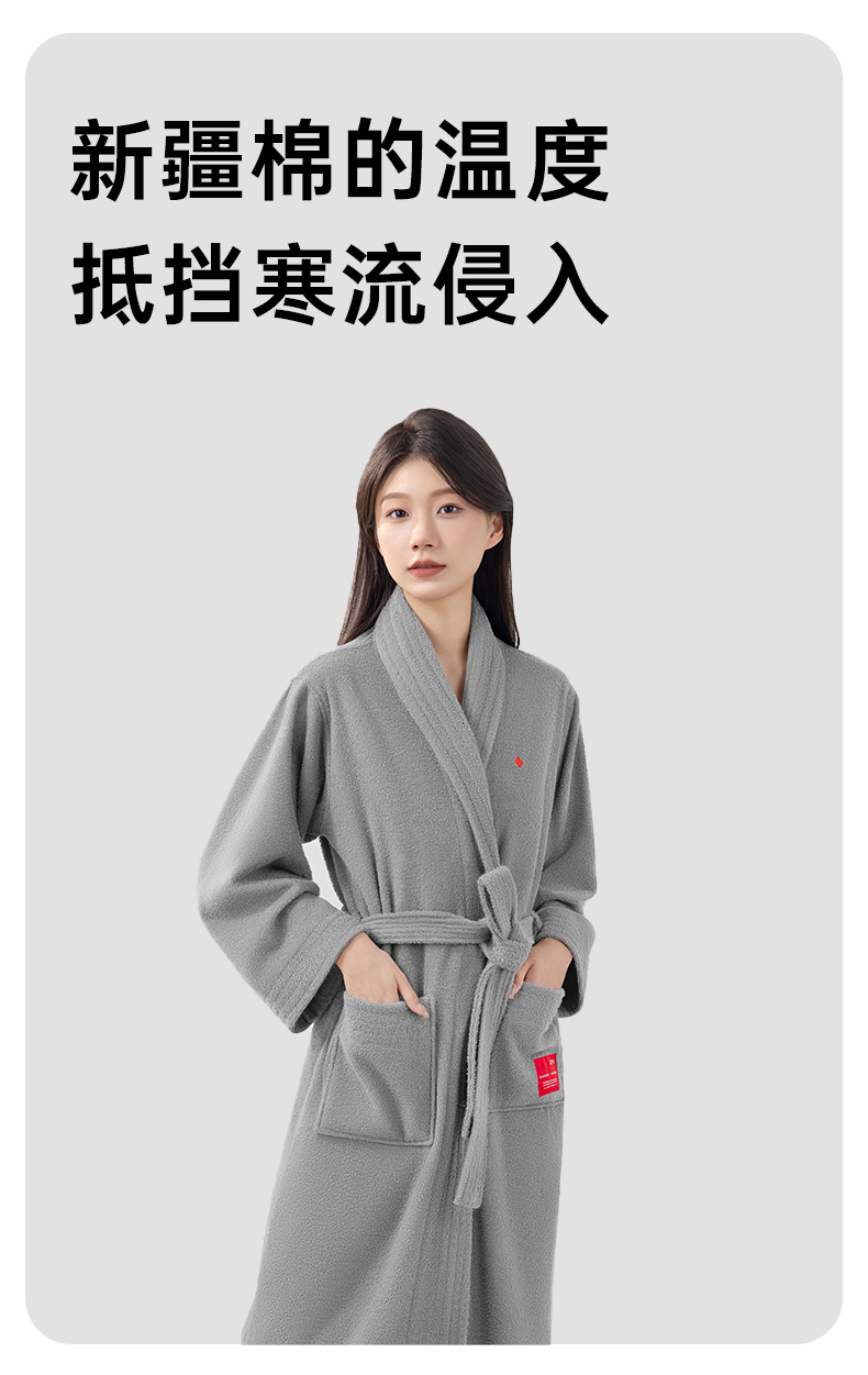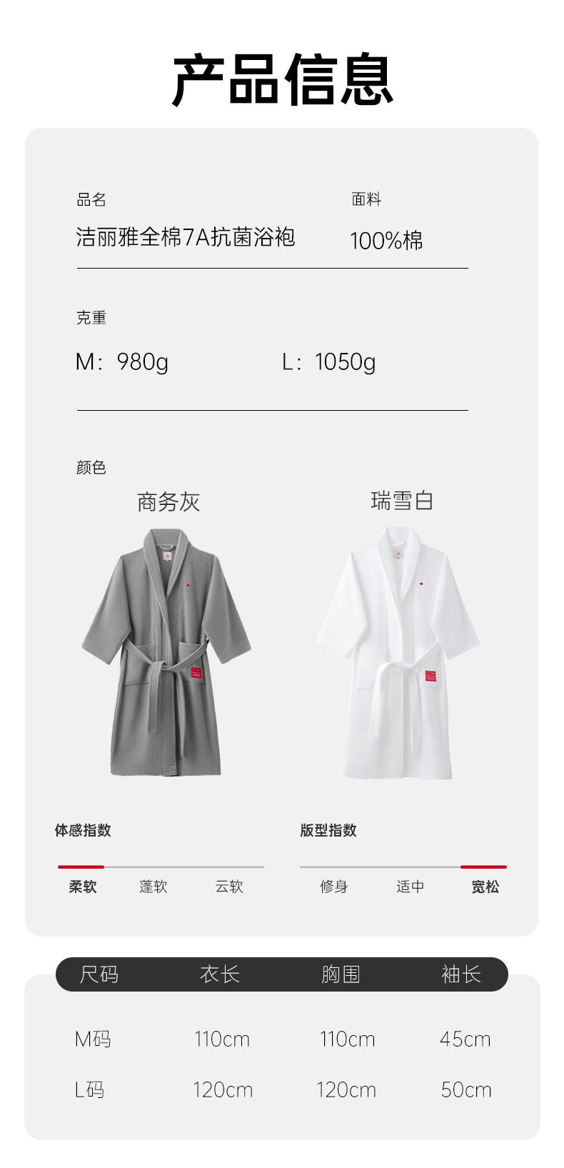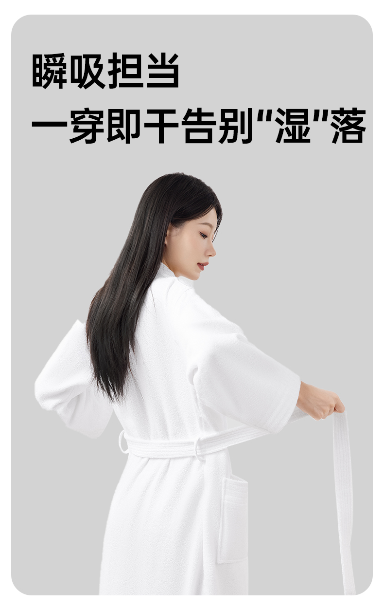 洁丽雅酒店纯棉浴袍亲肤柔软吸水睡袍成人男女全棉情侣款浴衣洗澡