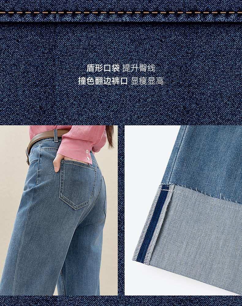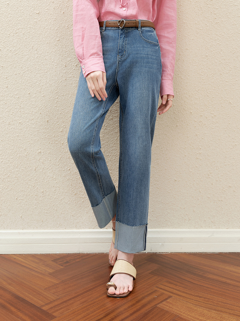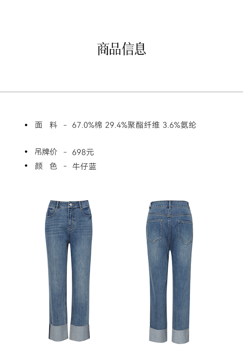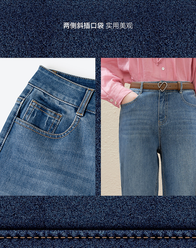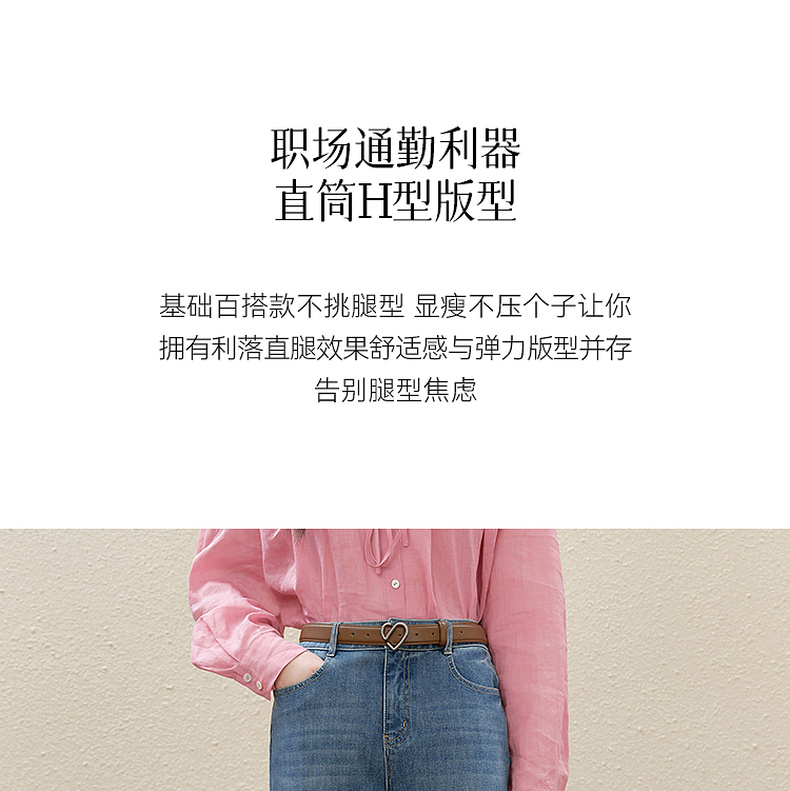 【严选】【四面弹】诗凡黎九分翻边直筒牛仔裤2025秋新款高腰窄版薄烟管裤7G6450781