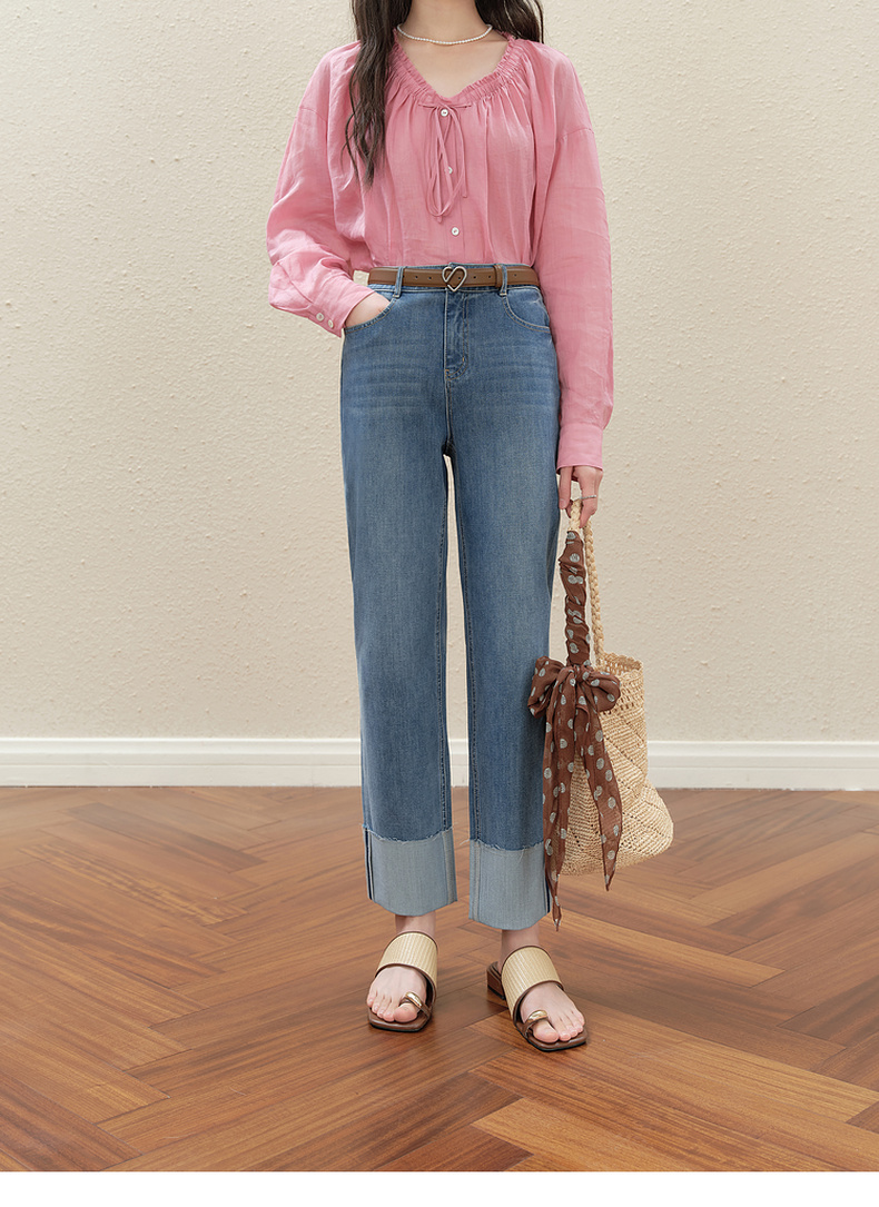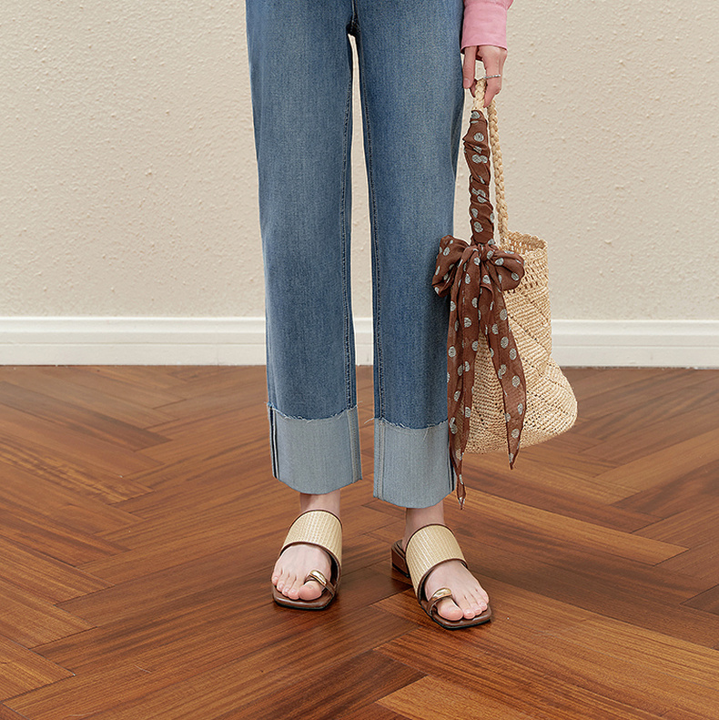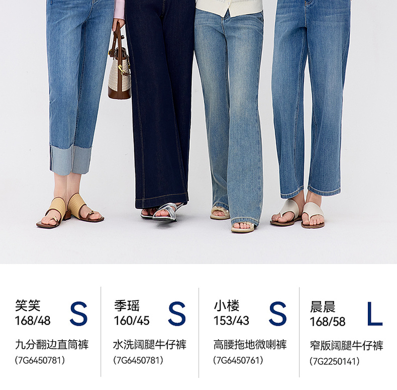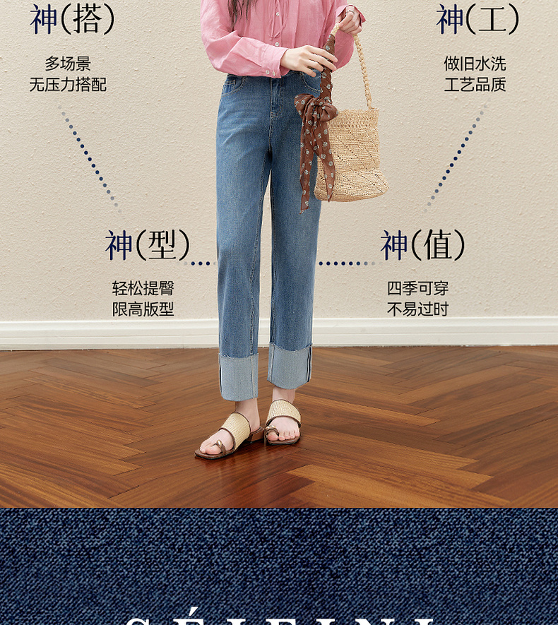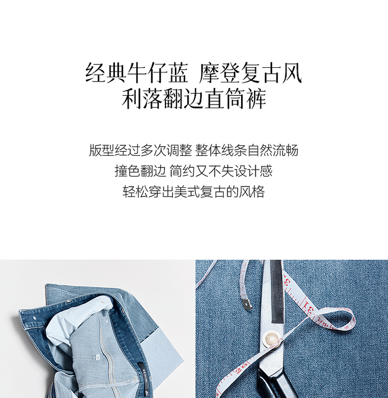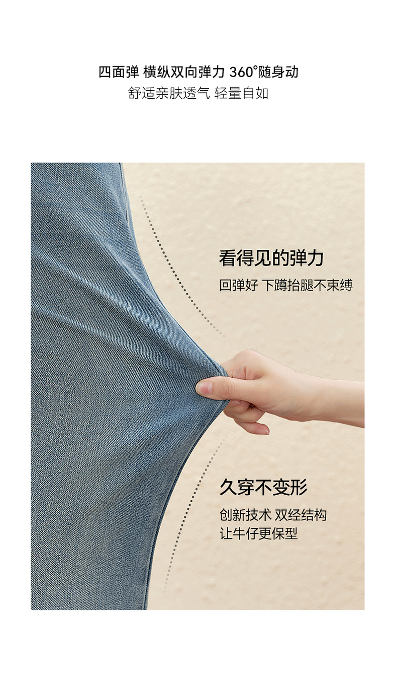 【严选】【四面弹】诗凡黎九分翻边直筒牛仔裤2025秋新款高腰窄版薄烟管裤7G6450781