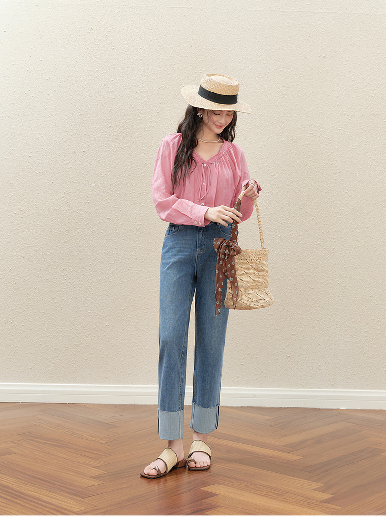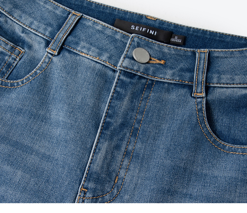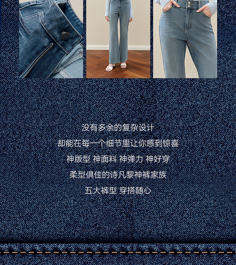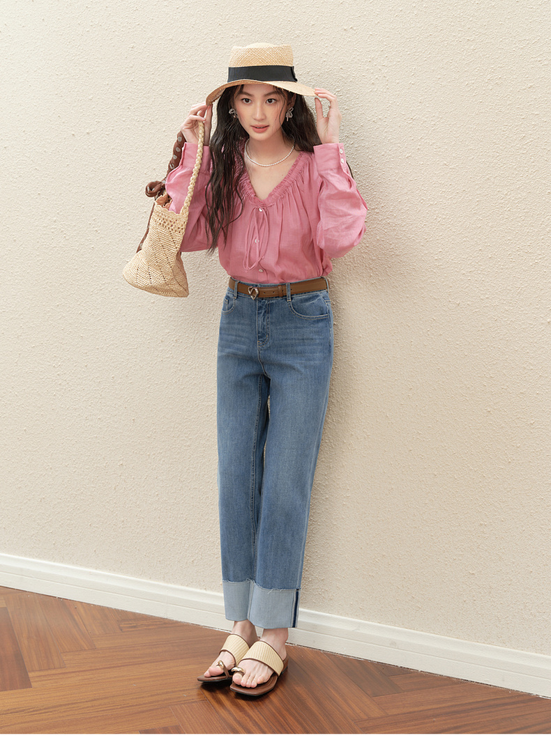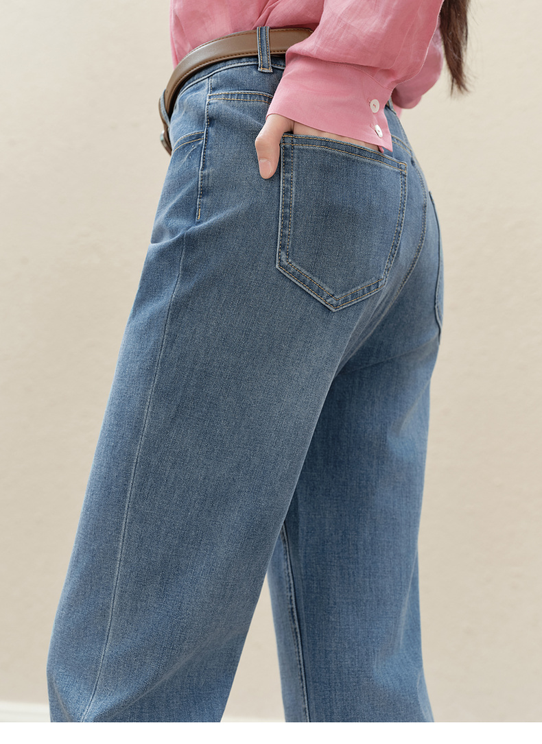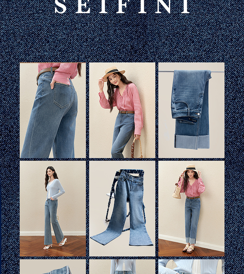 【严选】【四面弹】诗凡黎九分翻边直筒牛仔裤2025秋新款高腰窄版薄烟管裤7G6450781