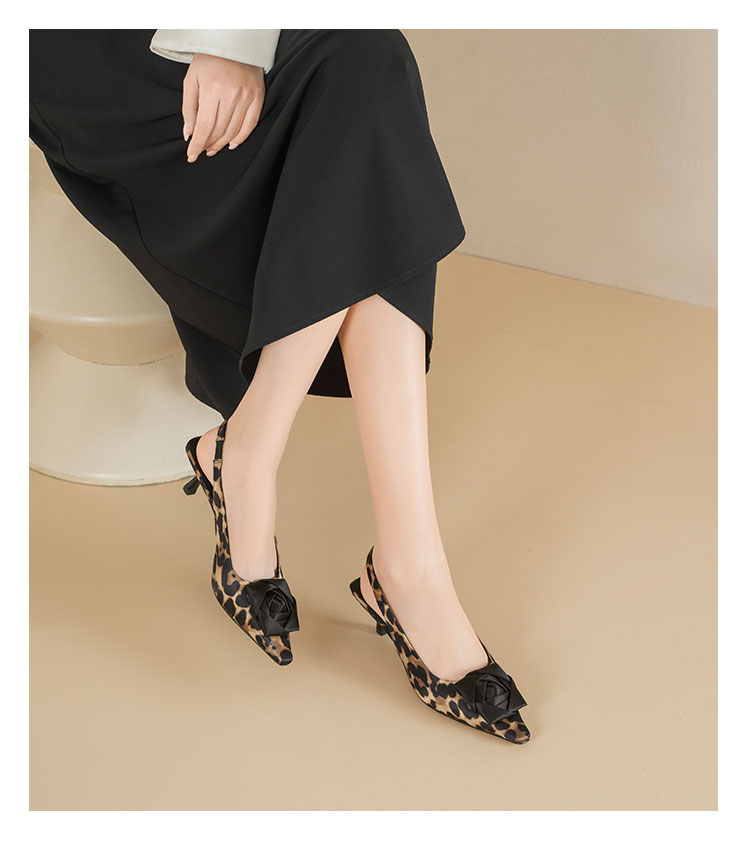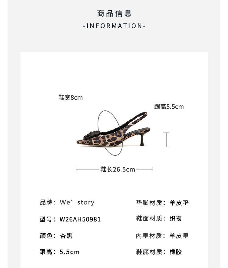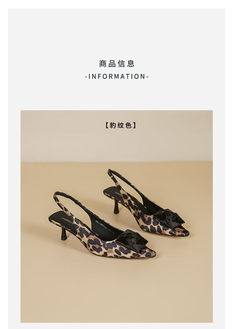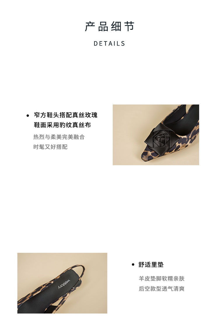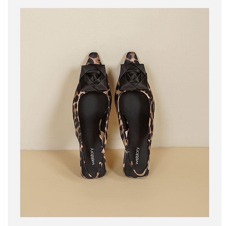 Westory2026年春季小方头中跟豹纹玫瑰花朵后空鞋时装空凉鞋W26AH50981