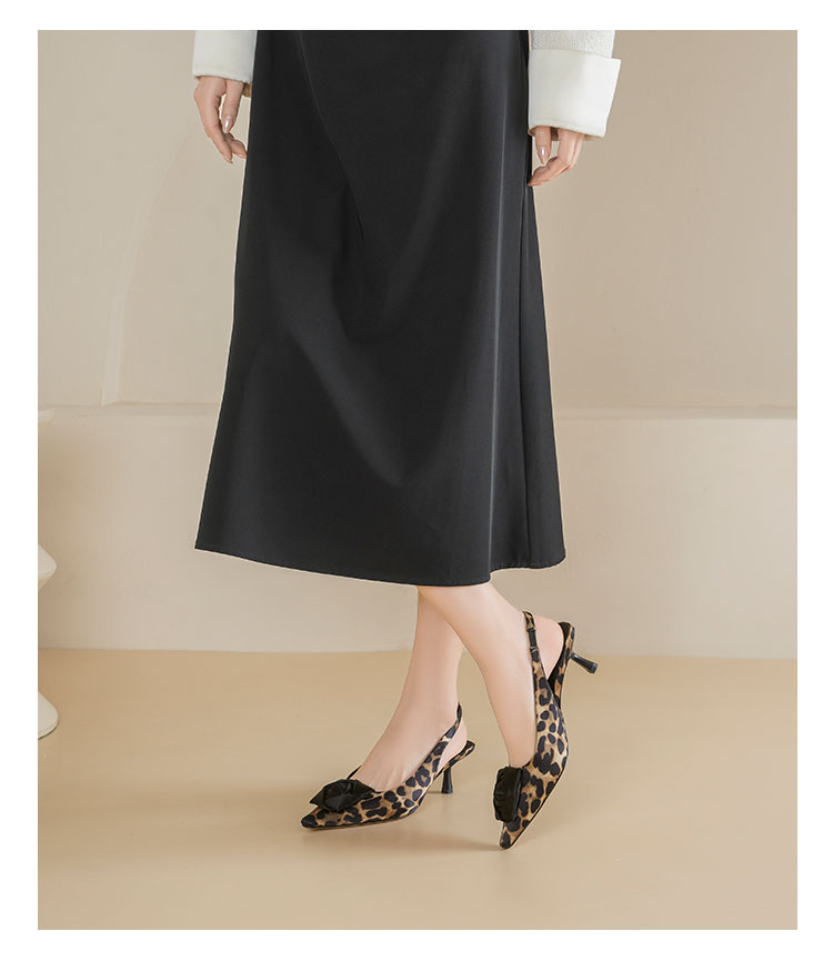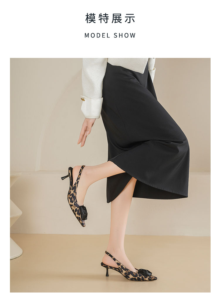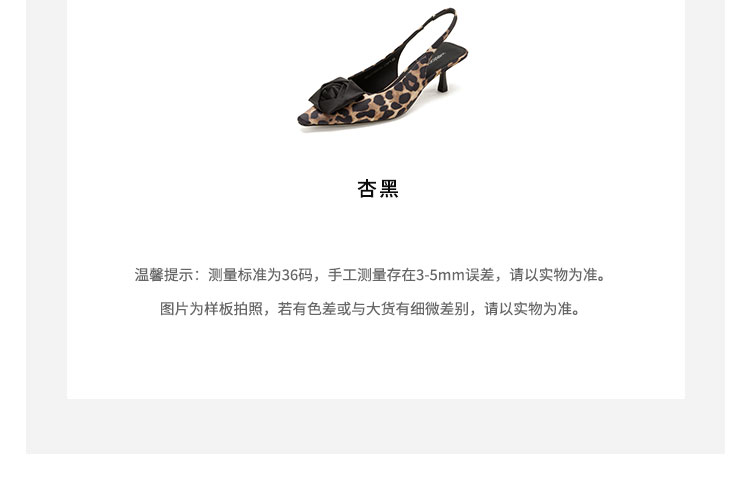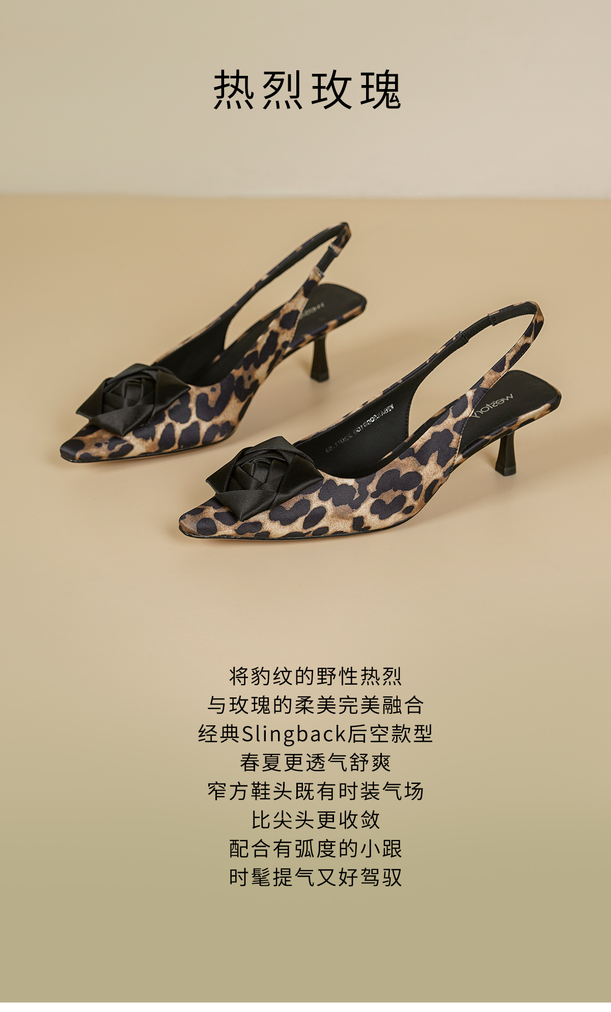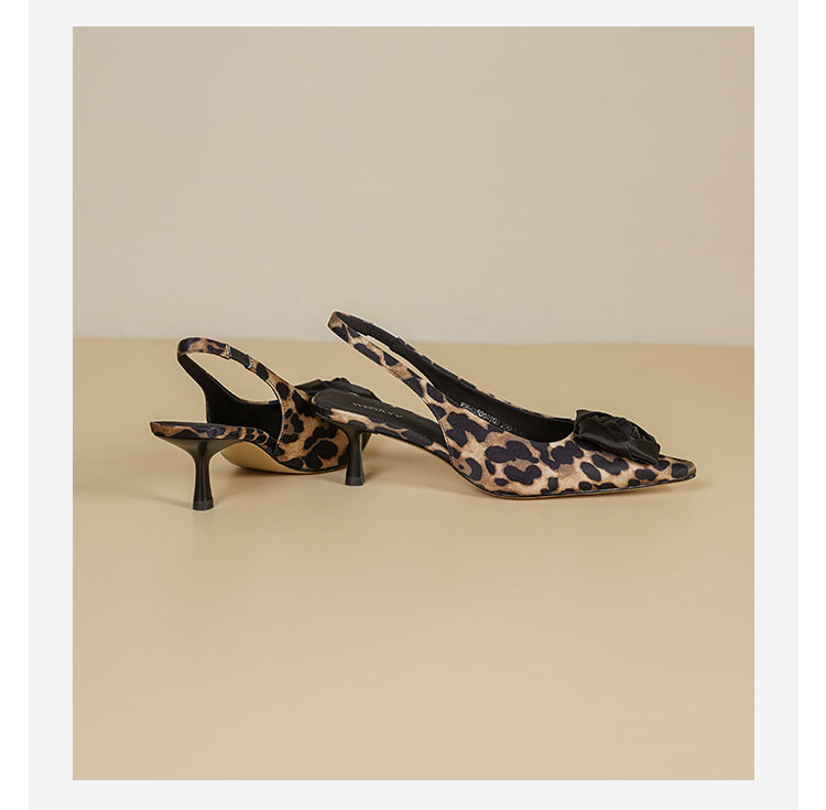Westory2026年春季小方头中跟豹纹玫瑰花朵后空鞋时装空凉鞋W26AH50981