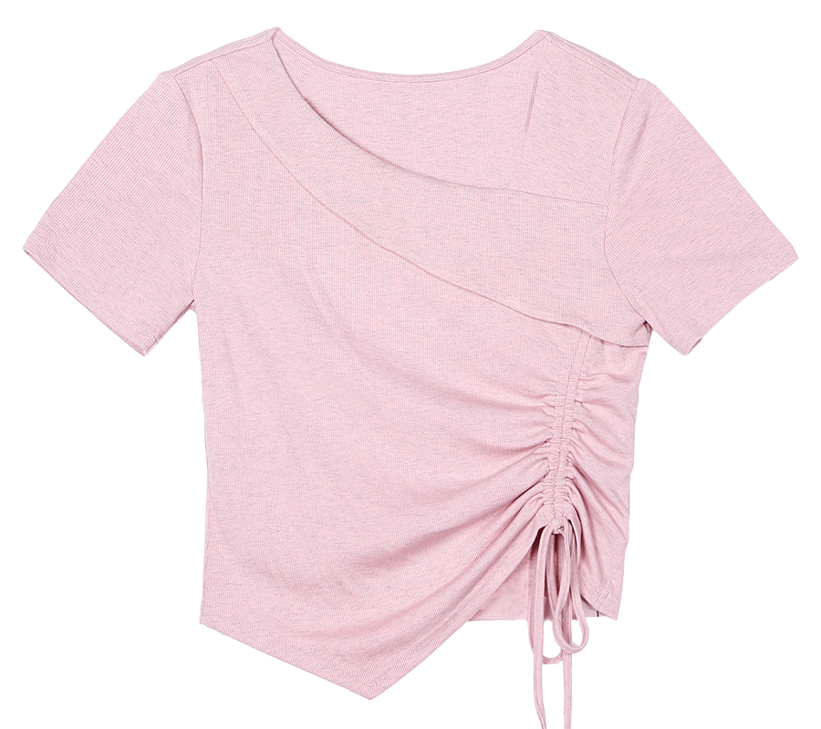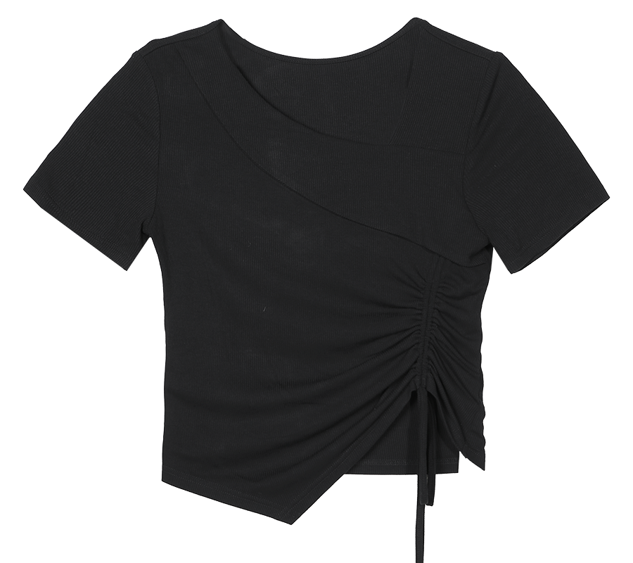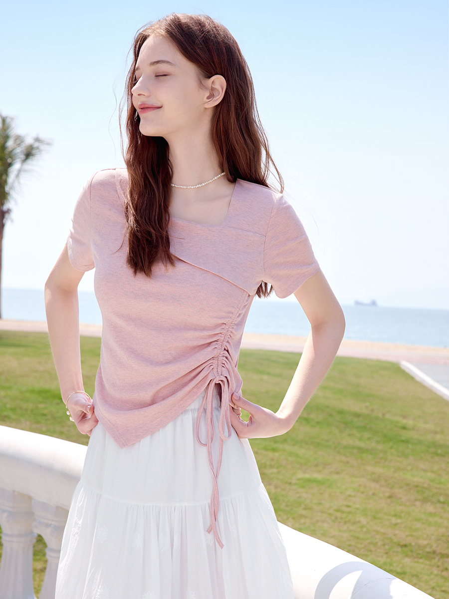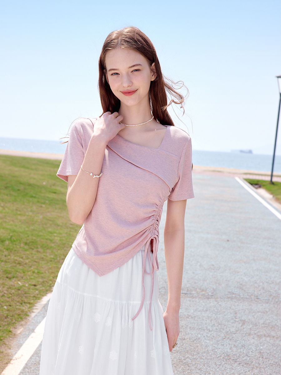 【百图lulu定制】【褶皱T恤】betu百图设计感抽绳收腰显瘦T恤女短袖2025年夏季新款褶皱小衫