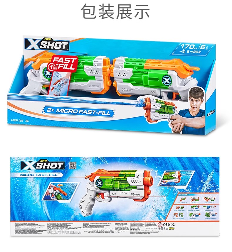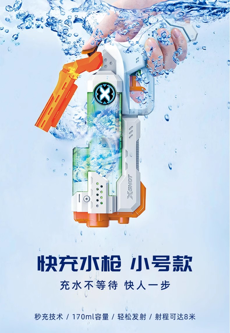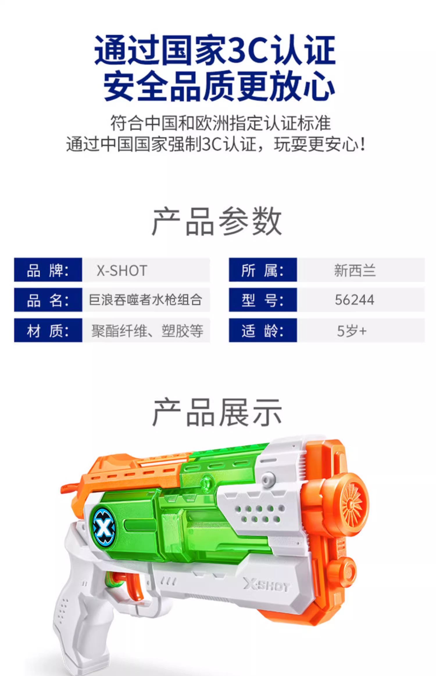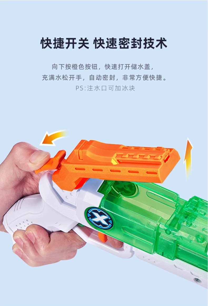 170ml容量 射程约8m | 新西兰ZURU X特攻水战系列巨浪吞食者速充水枪(小号款) 1秒速充儿童水枪玩具喷呲滋泚水枪男孩1只装 5岁+