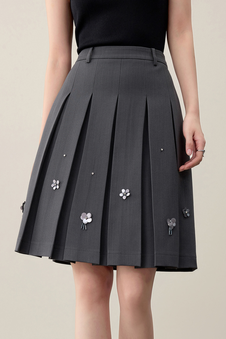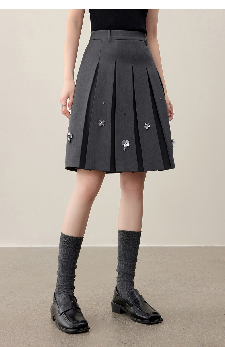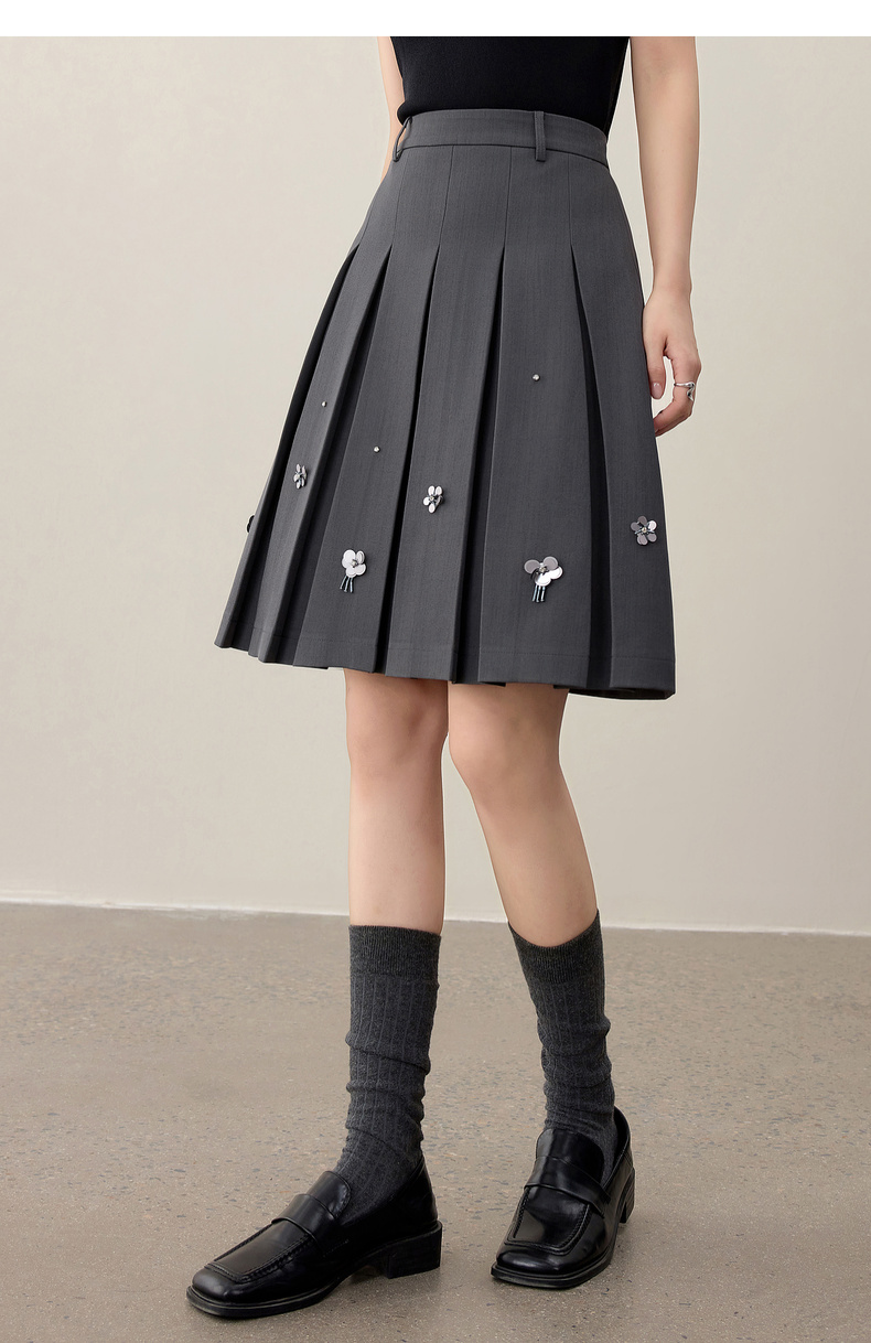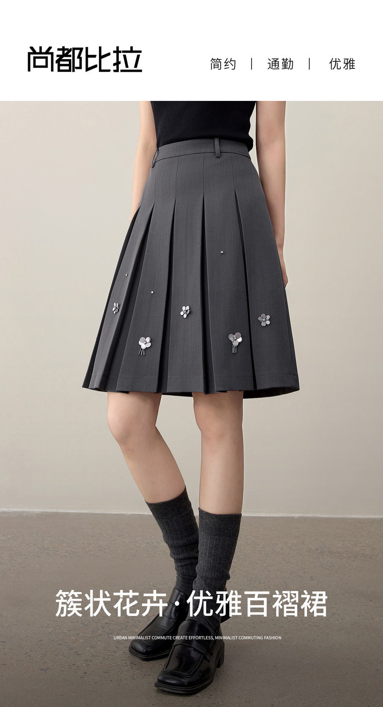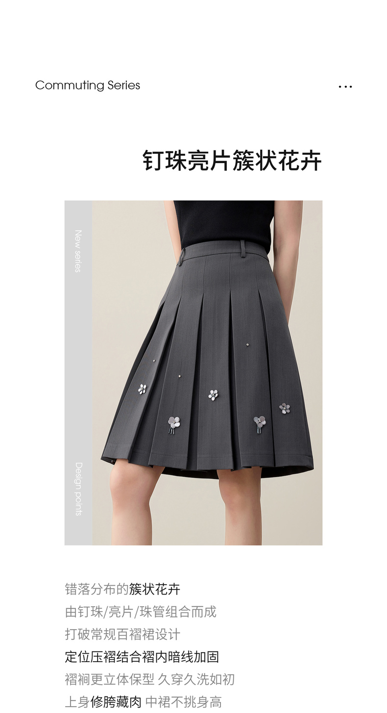 【内购】【簇状花卉】优雅通勤松紧腰高温压褶藏肉显瘦A字百褶裙半身裙-153QB2895