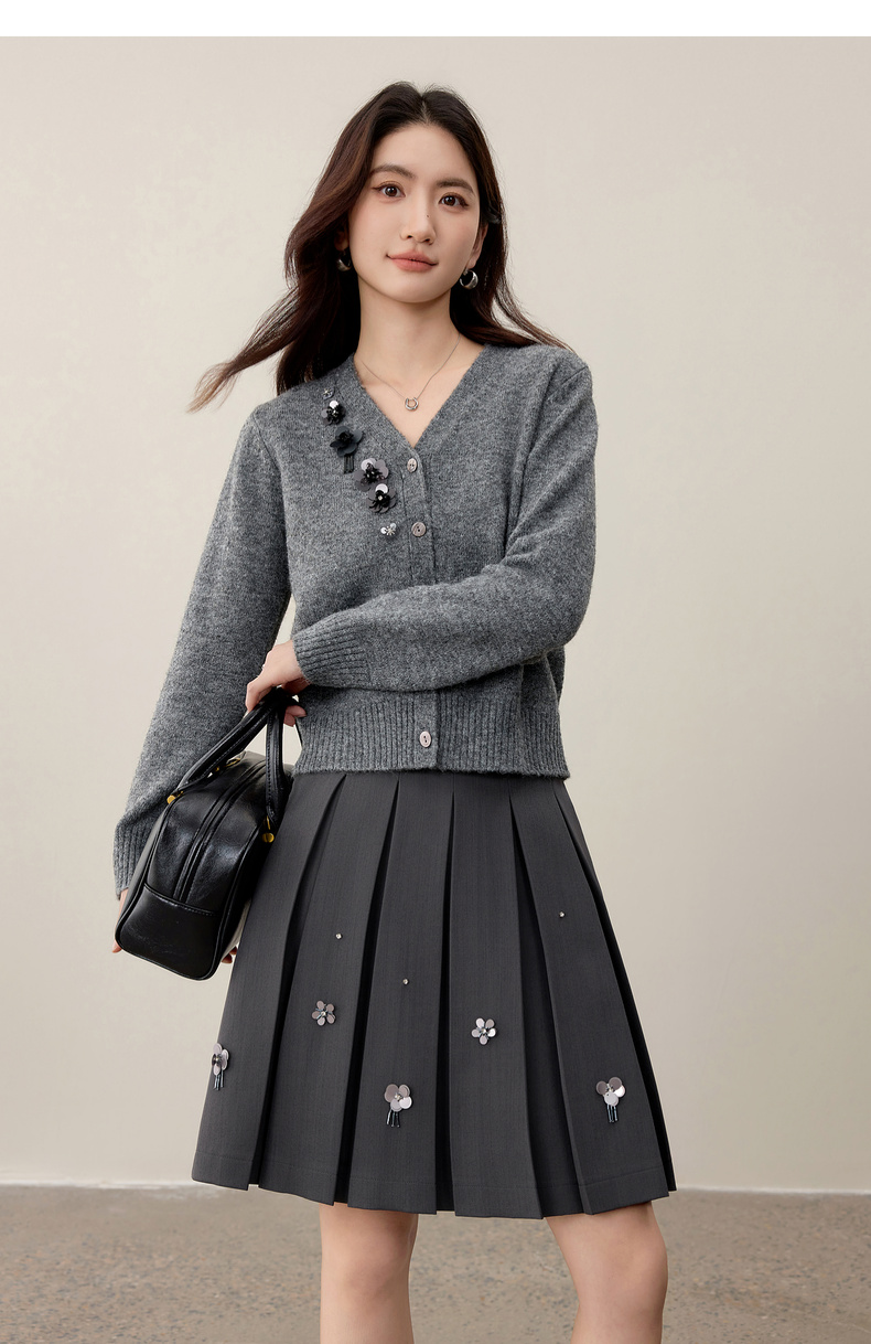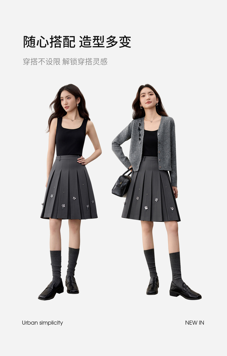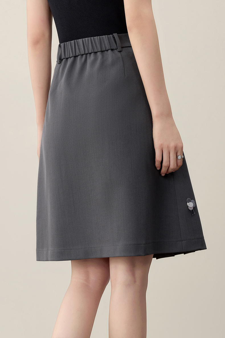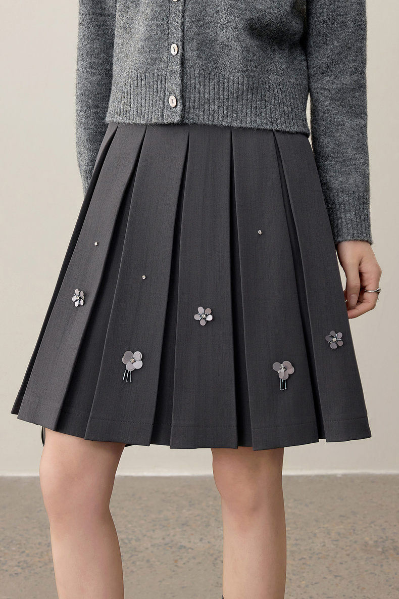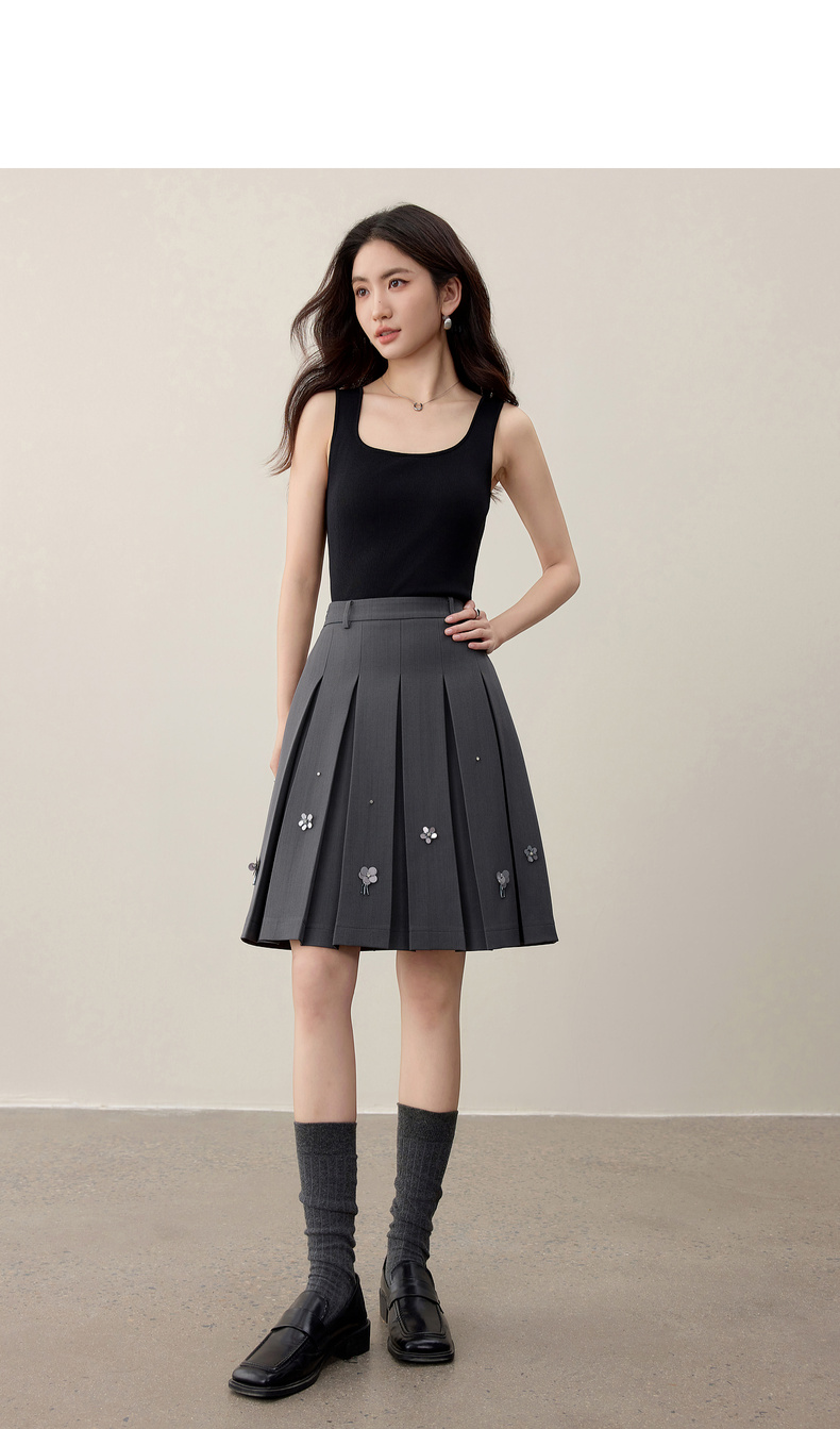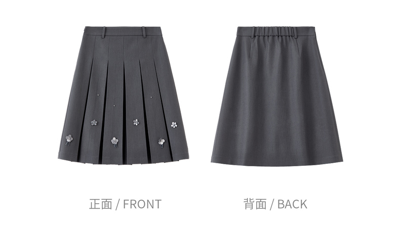 【内购】【簇状花卉】优雅通勤松紧腰高温压褶藏肉显瘦A字百褶裙半身裙-153QB2895