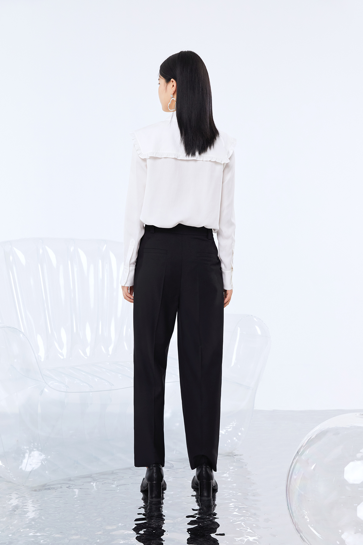 NEELLY纳俪商场同款秋季新款白色直筒休闲裤女通勤简约亚麻长裤N24071H02005