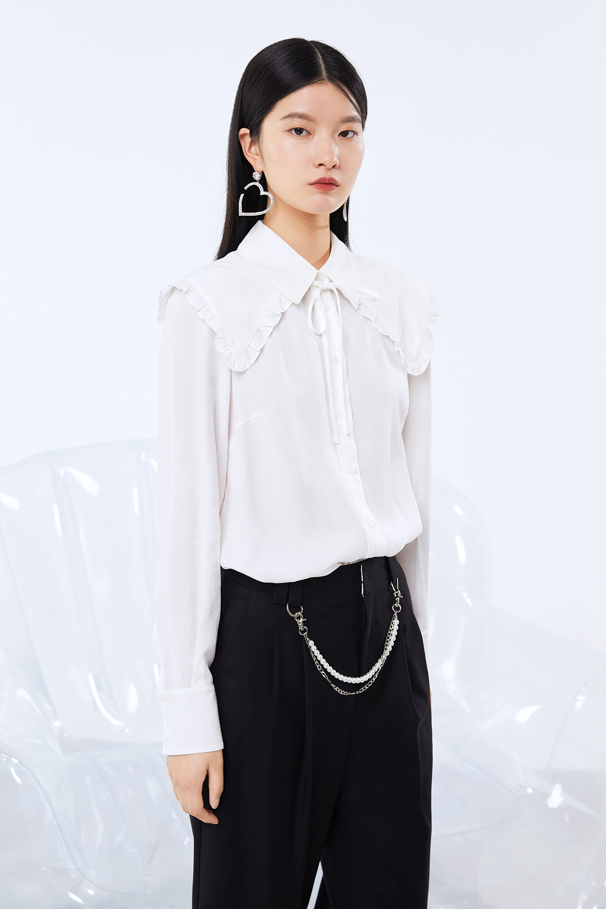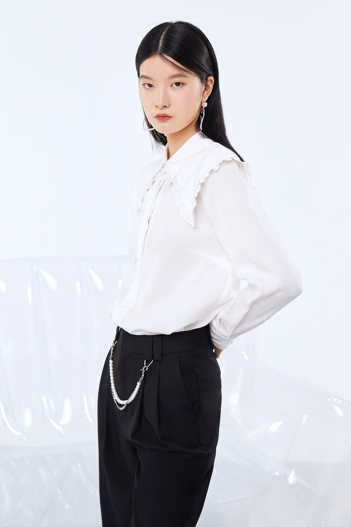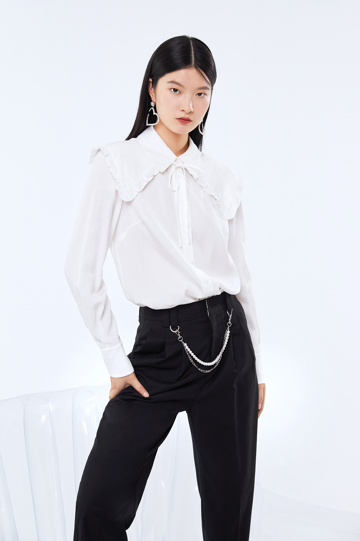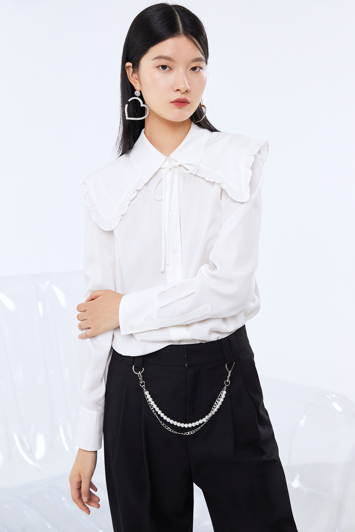 NEELLY纳俪西装领白色衬衫女新款2021年冬季简约内搭设计感两件套N21101B01015