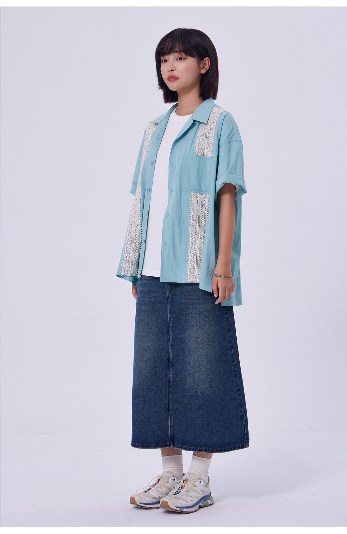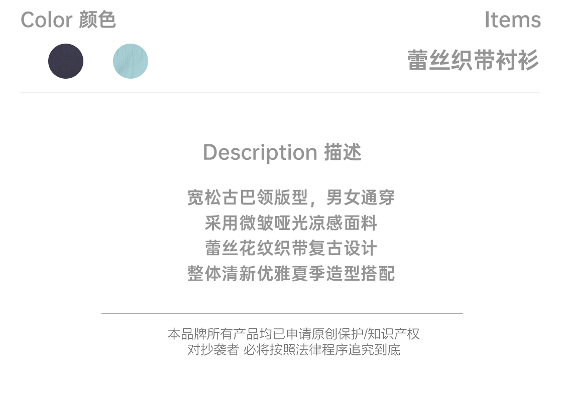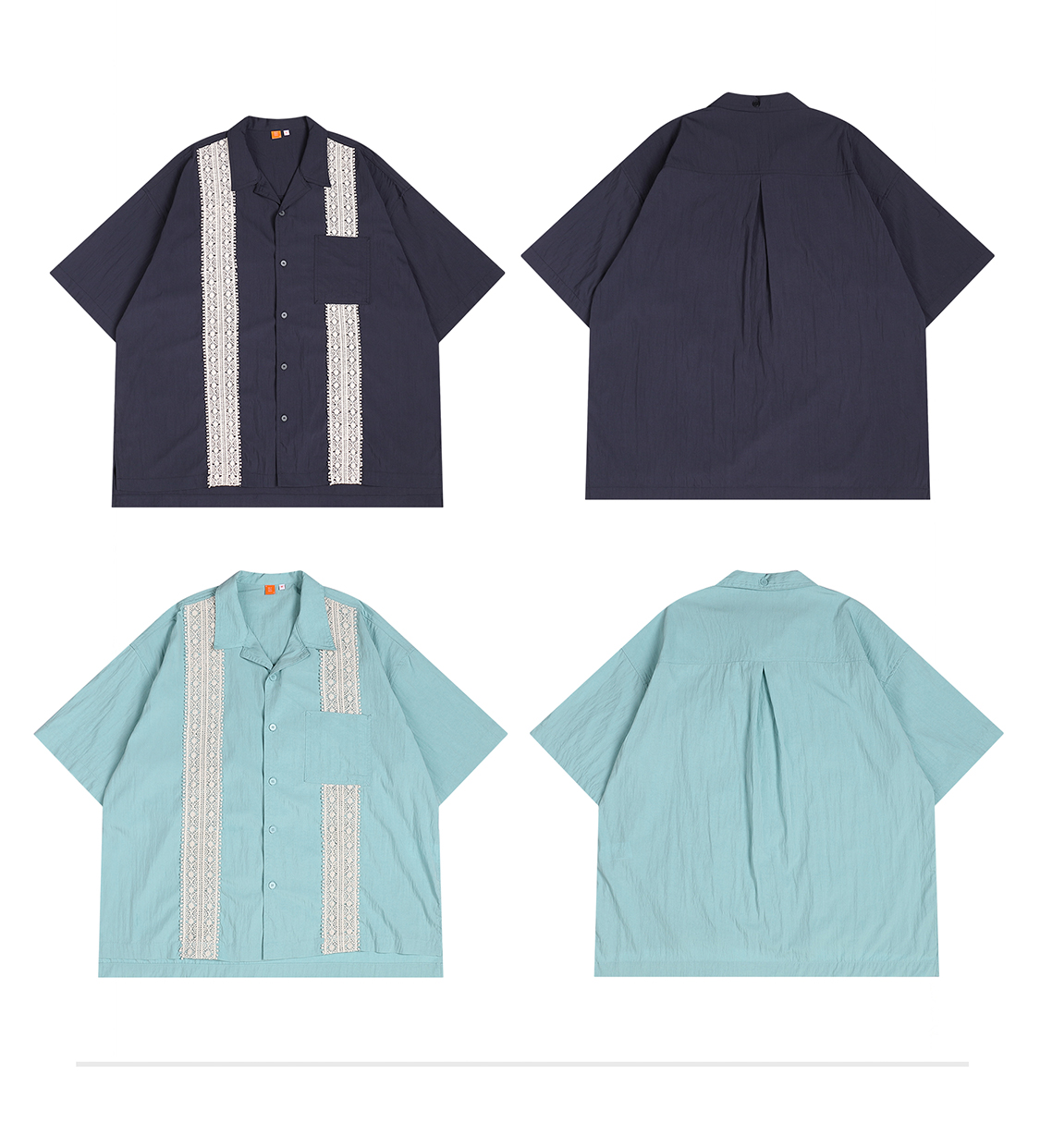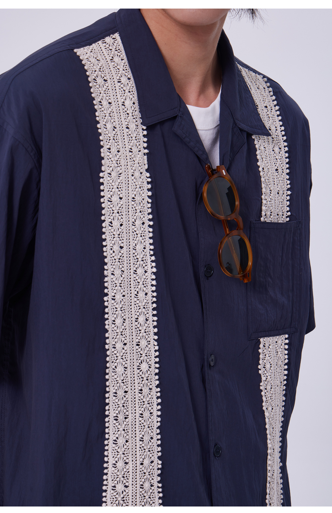 OADB/A31413A006/蕾丝织带古巴领衬衫