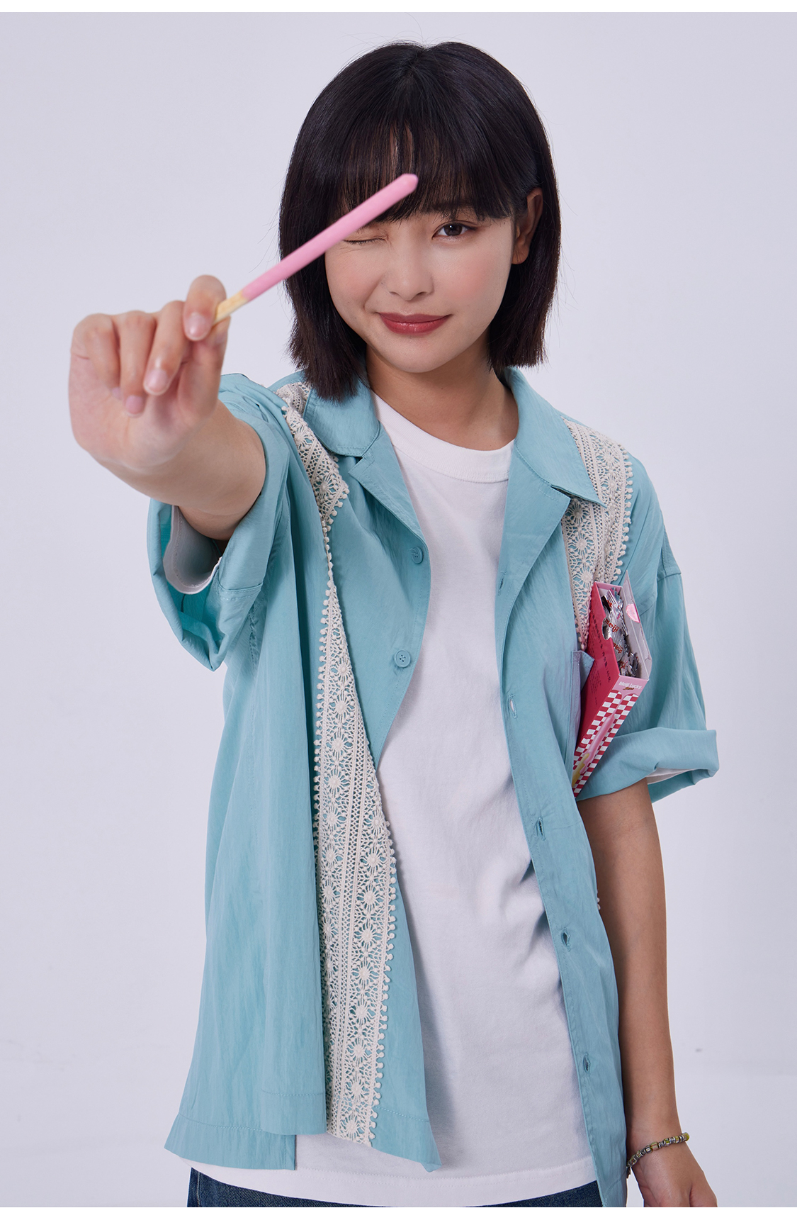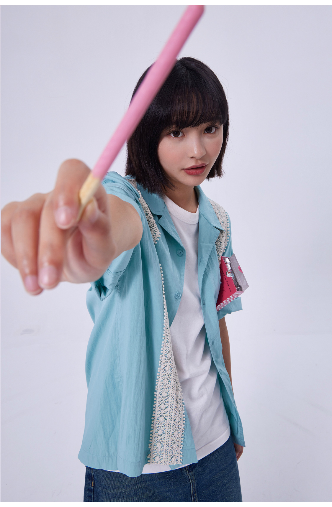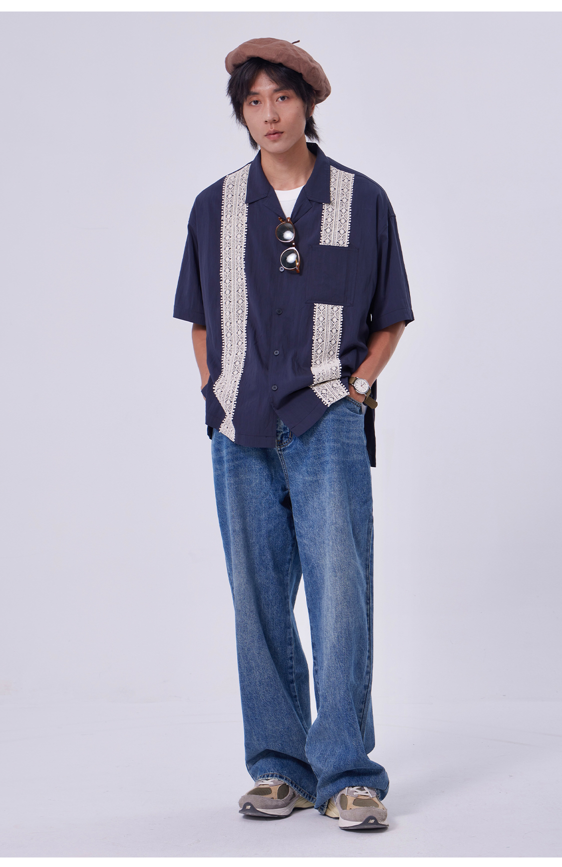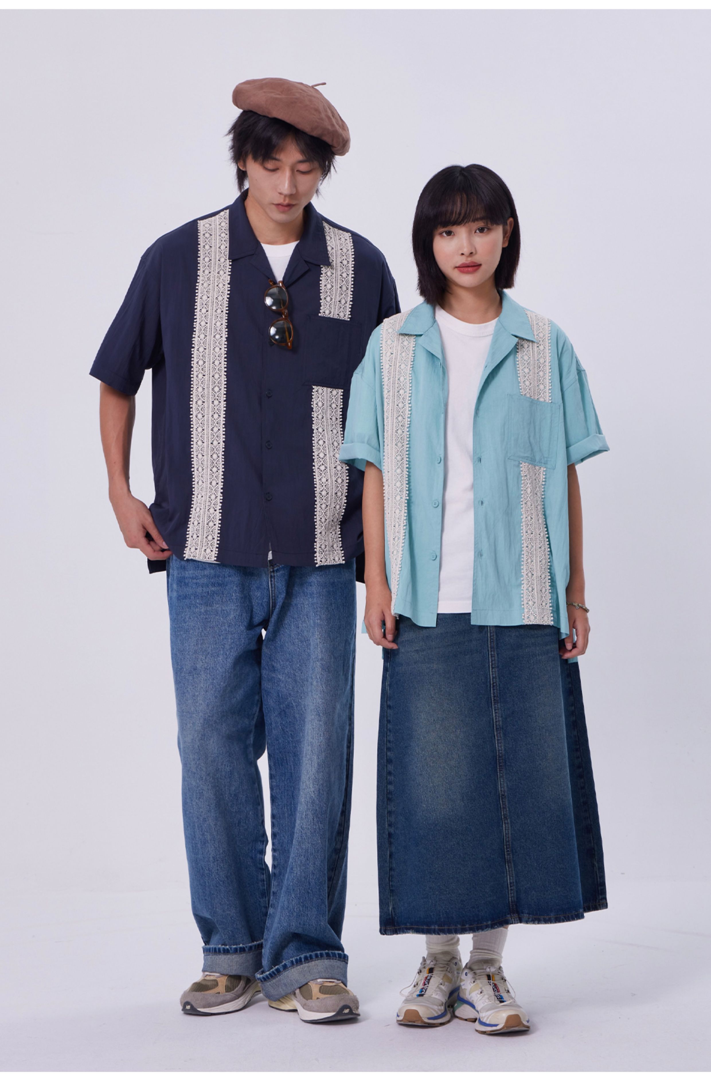 OADB/A31413A006/蕾丝织带古巴领衬衫