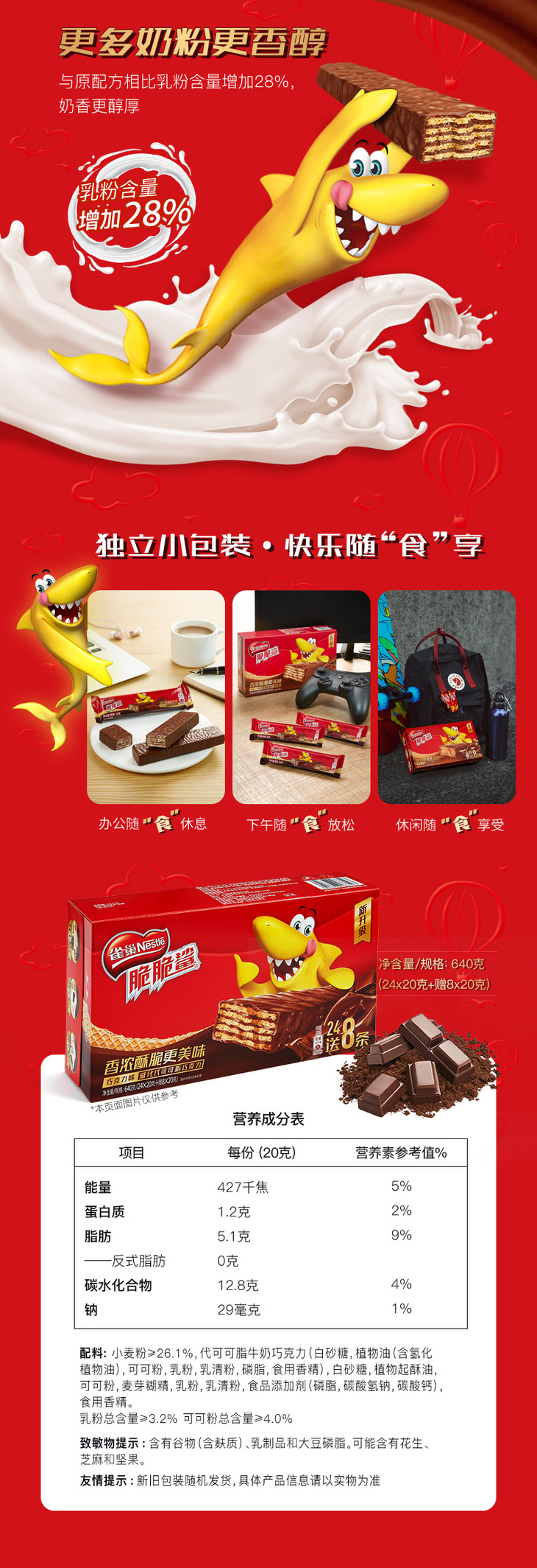 雀巢花生脆脆鲨威化巧克力 整盒 20g*32块