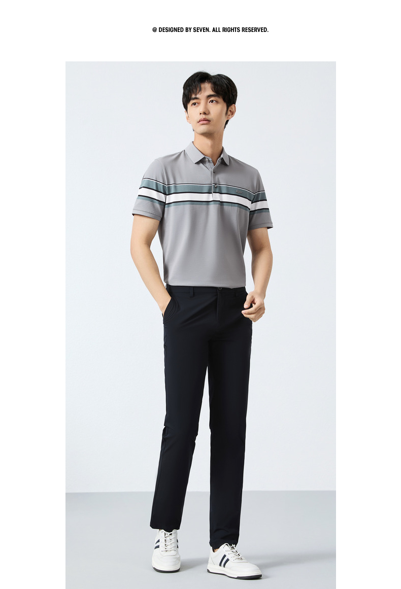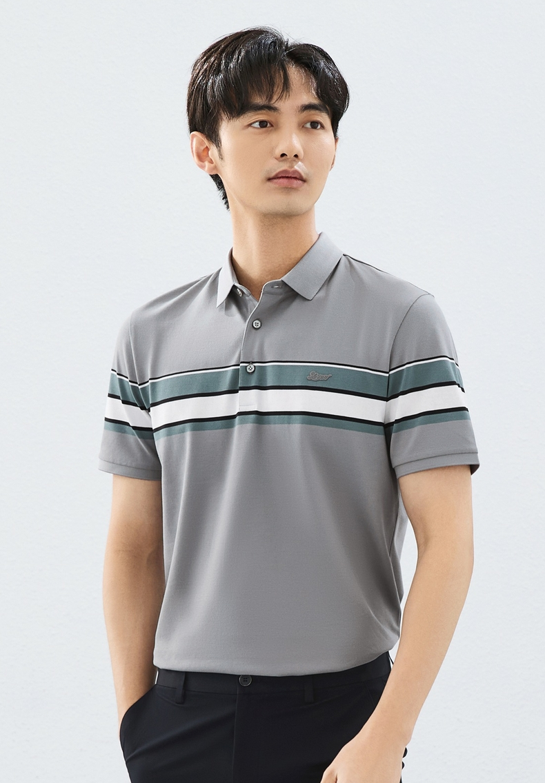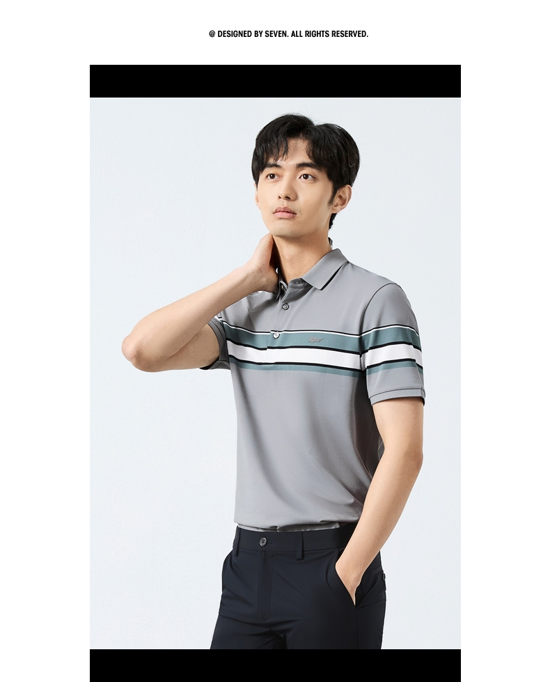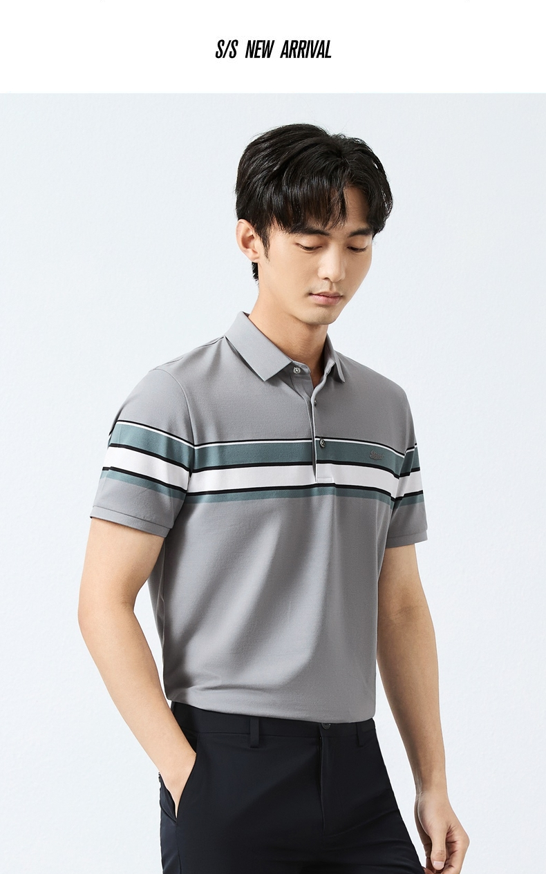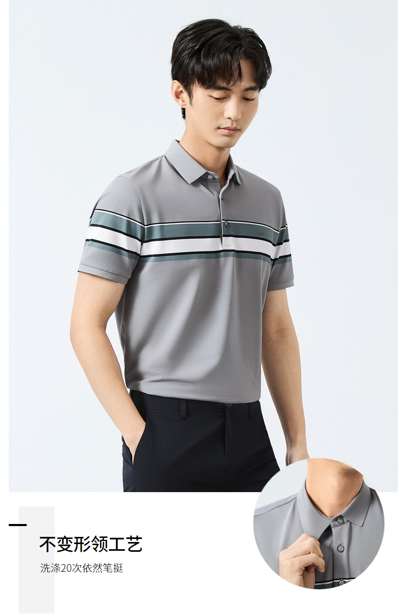 【定位条polo衫】柒牌撞色条纹POLO衫男夏季薄款休闲翻领短袖t恤128T72970