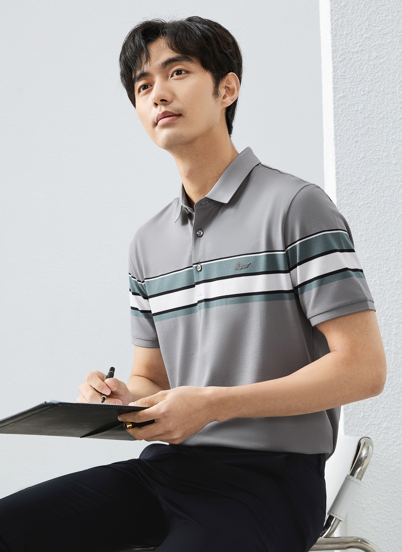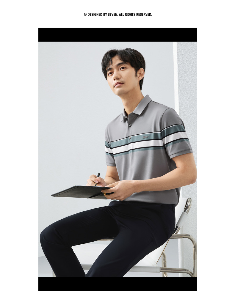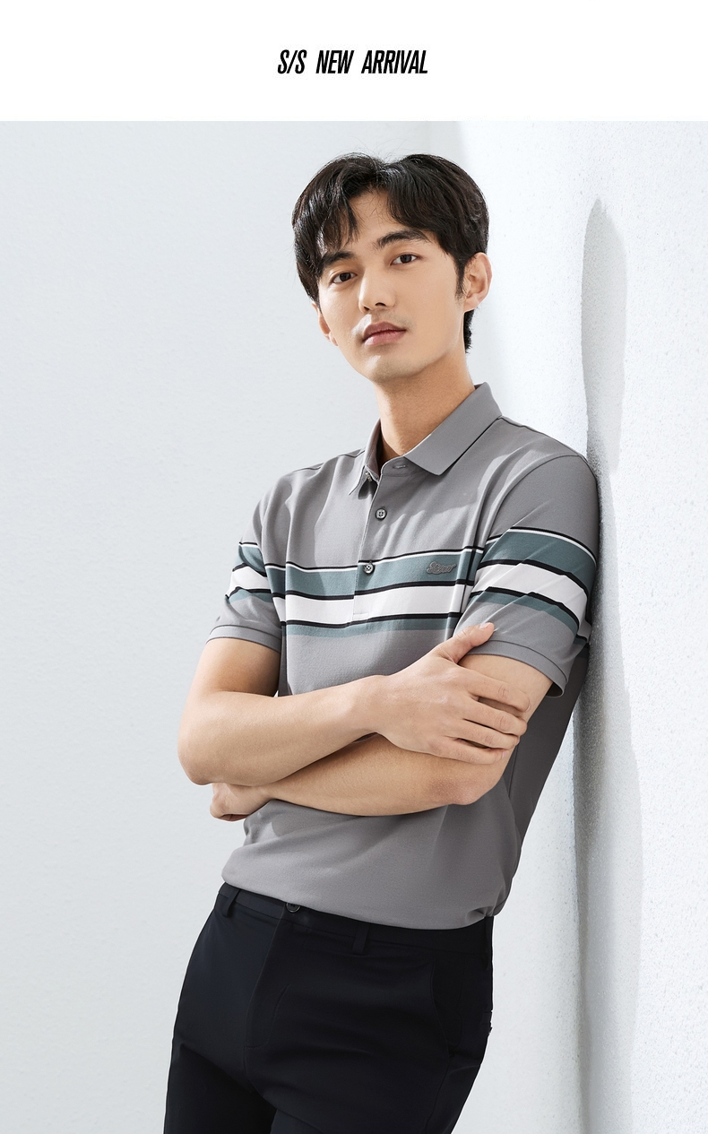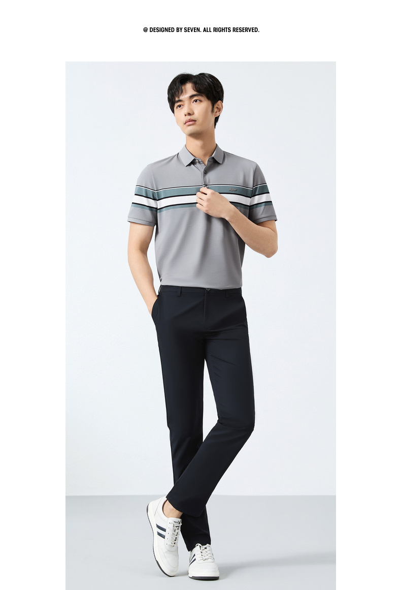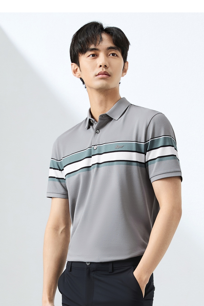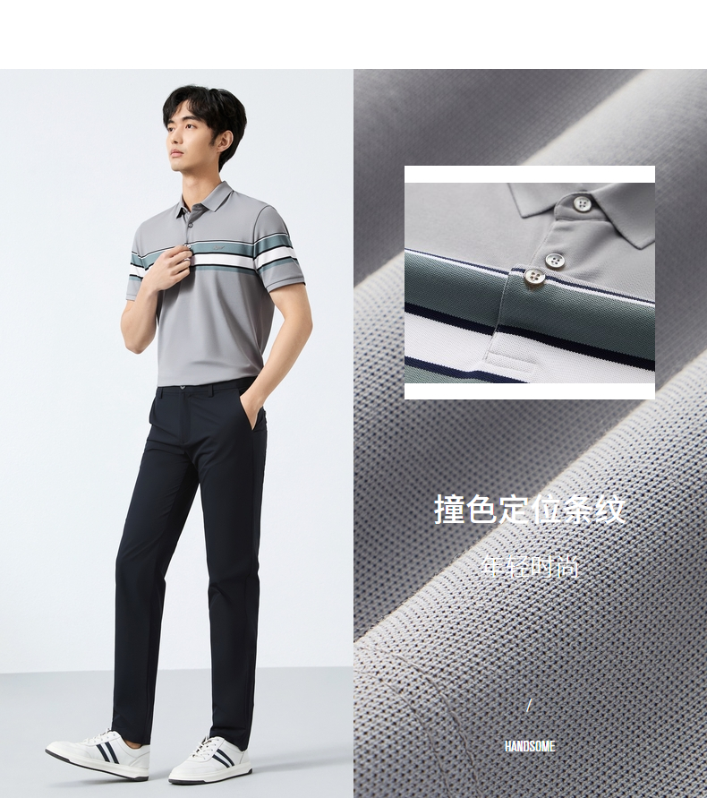 【定位条polo衫】柒牌撞色条纹POLO衫男夏季薄款休闲翻领短袖t恤128T72970