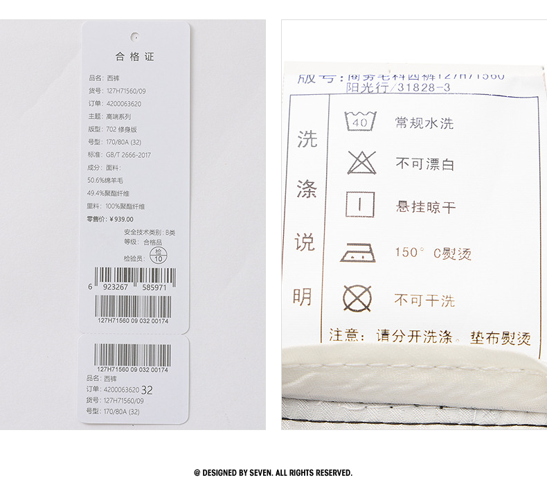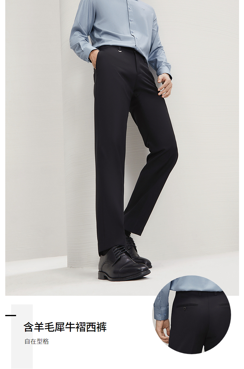 【犀牛褶工艺】柒牌西裤男士商务正装2025秋季新款含羊毛直筒长裤 127H71560
