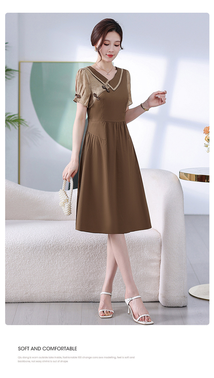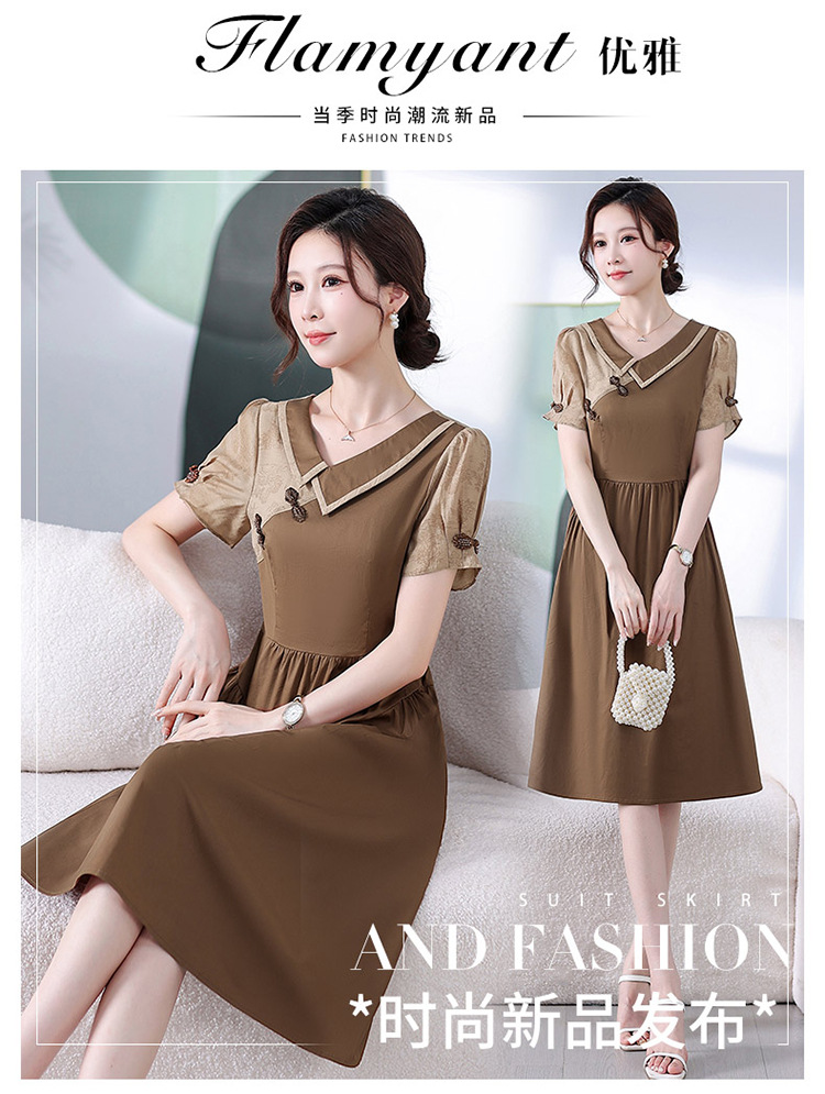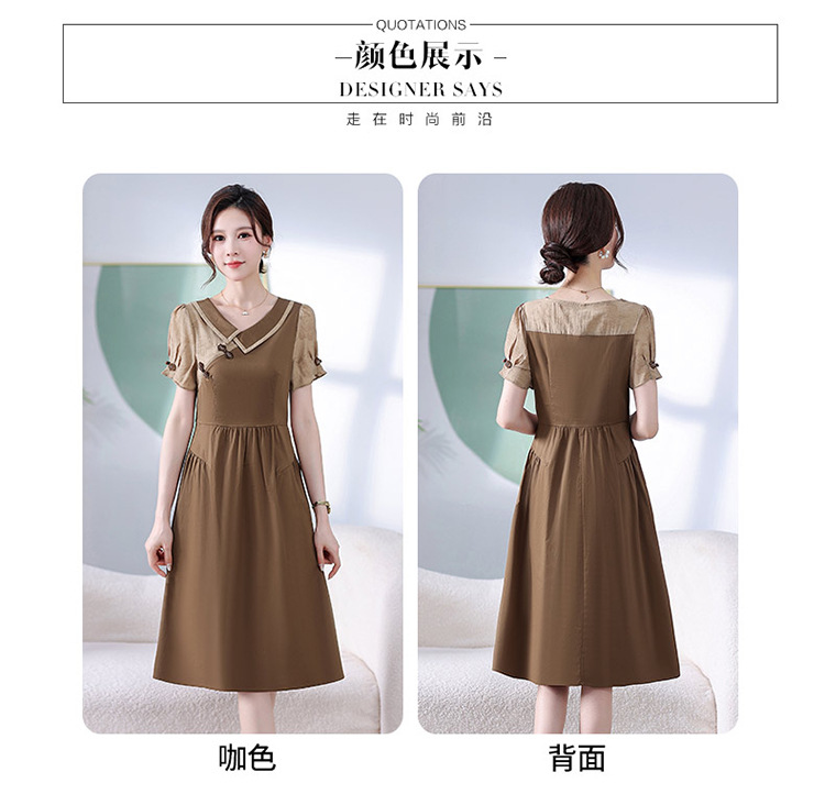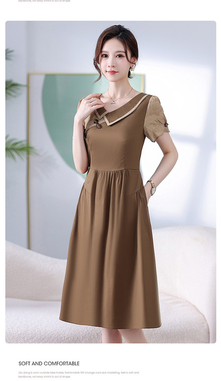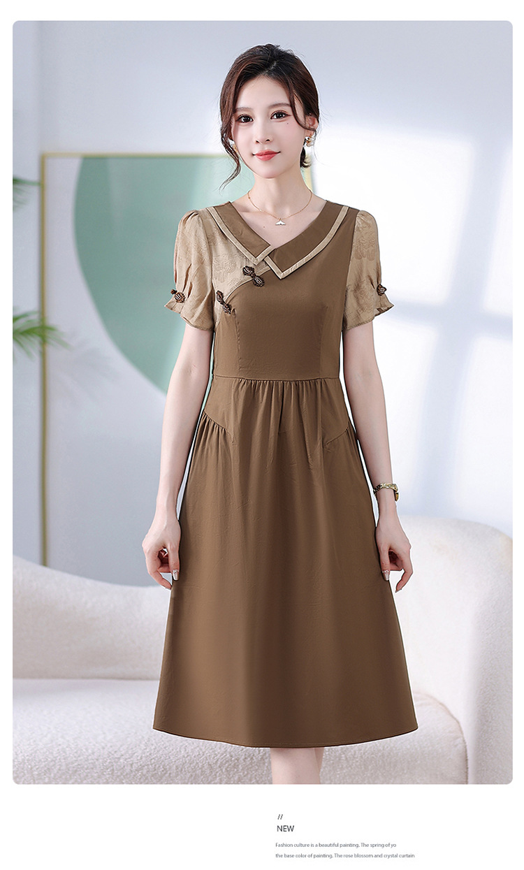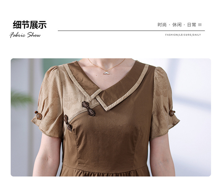 翻领拼结连衣裙,中式国风气质优雅中长裙QYM- XY-24Y170-Y