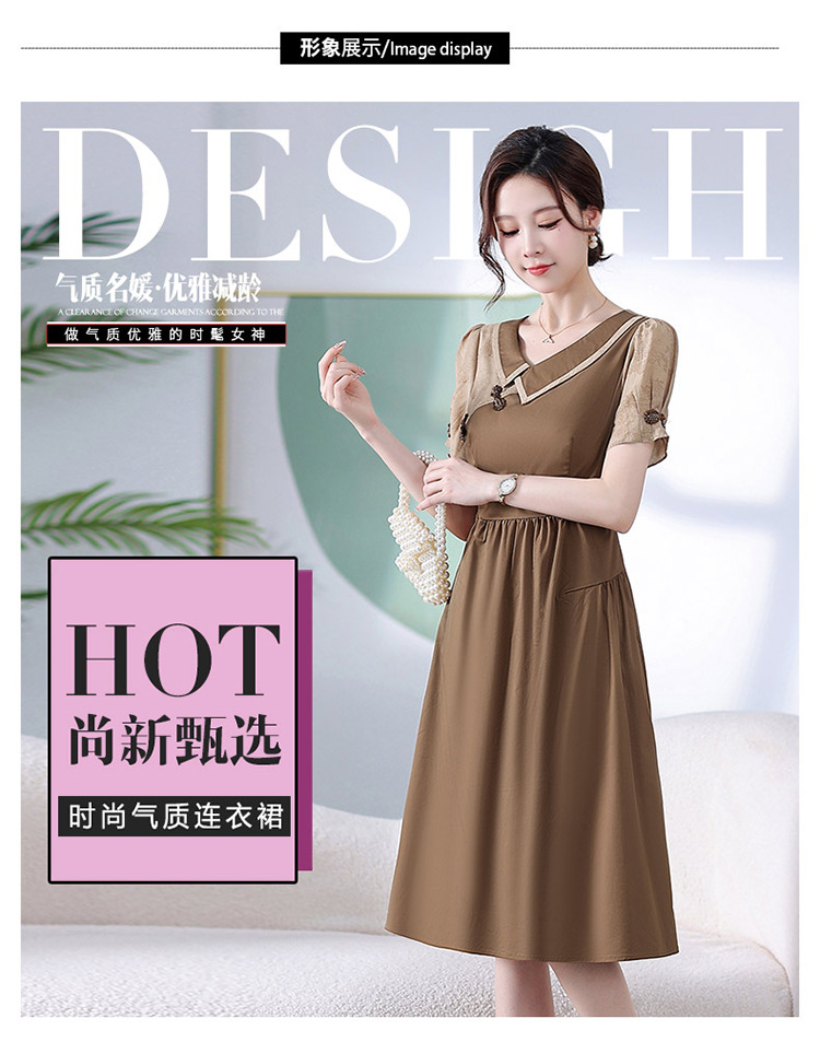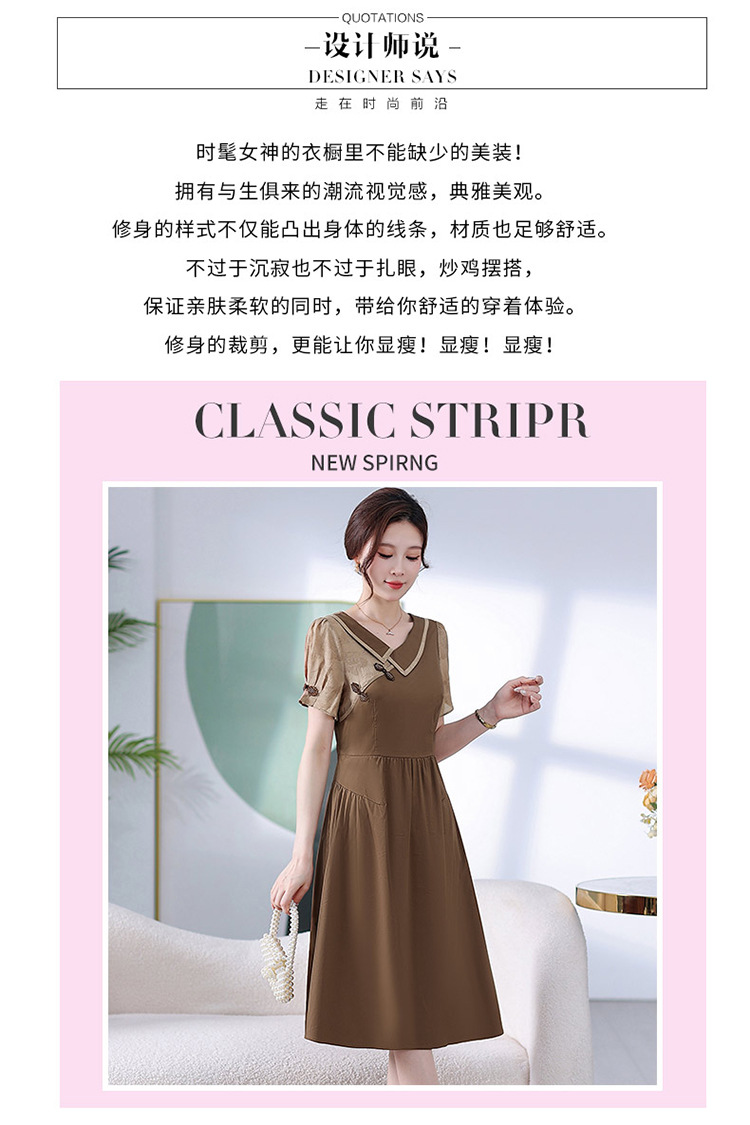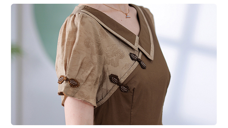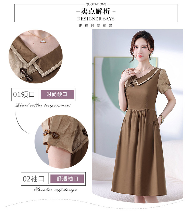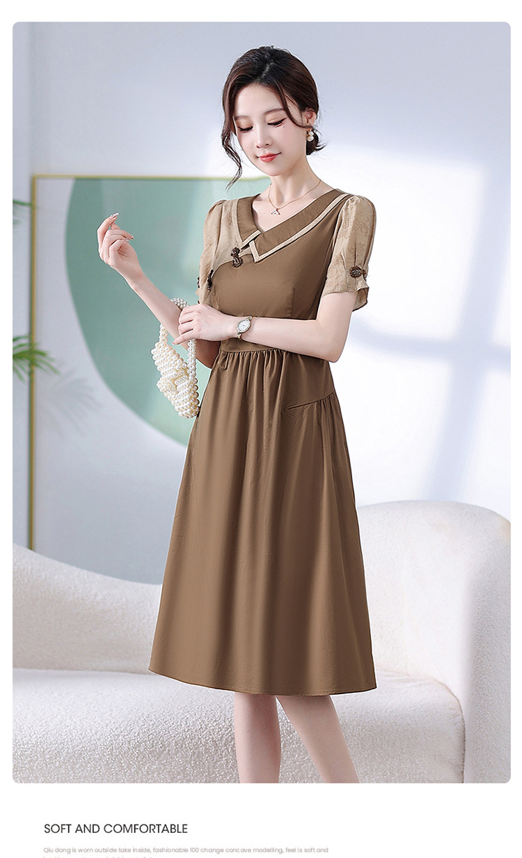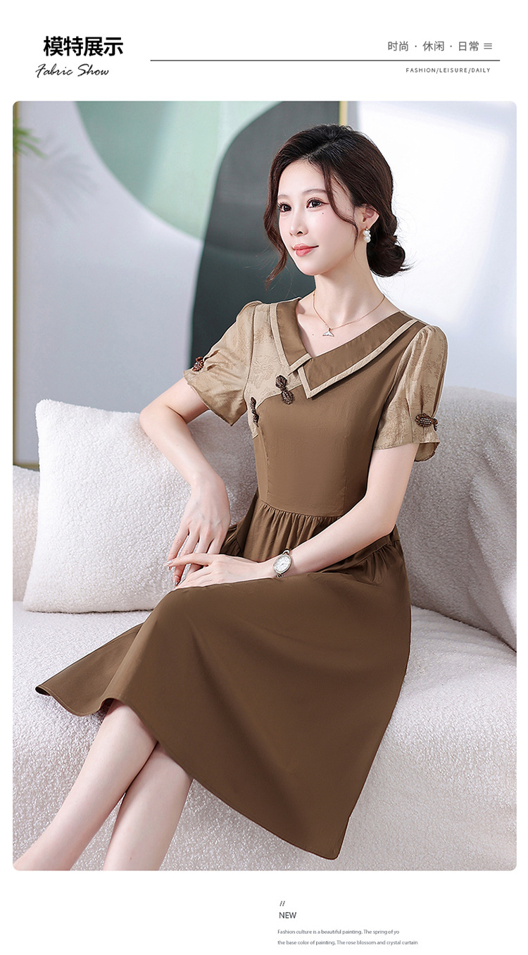 翻领拼结连衣裙,中式国风气质优雅中长裙QYM- XY-24Y170-Y