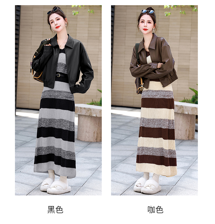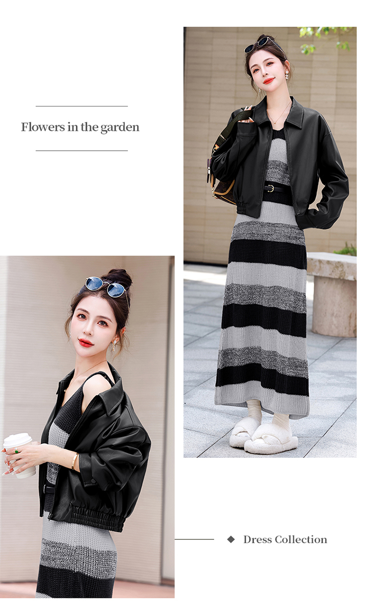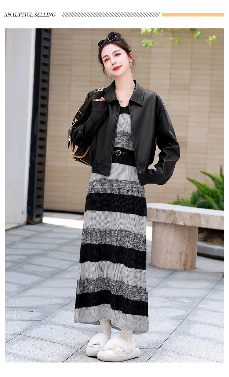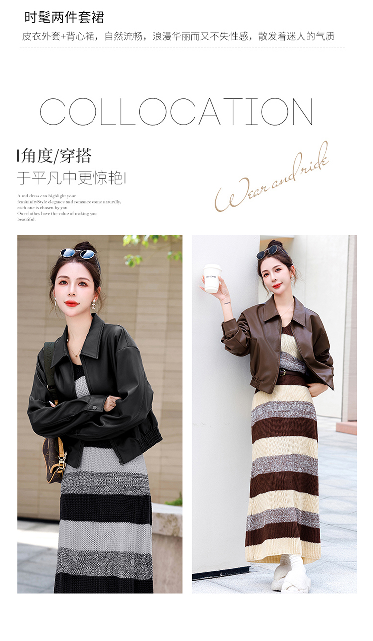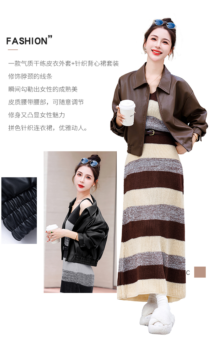 时尚百搭,新款秋装机车皮甲针织长裙套装HR-YJLY8035