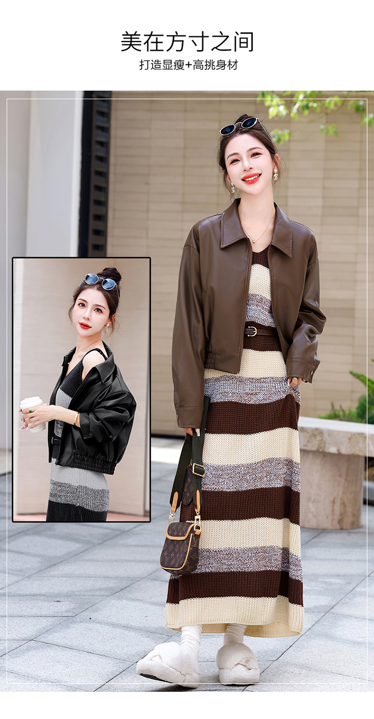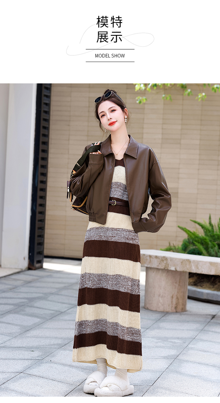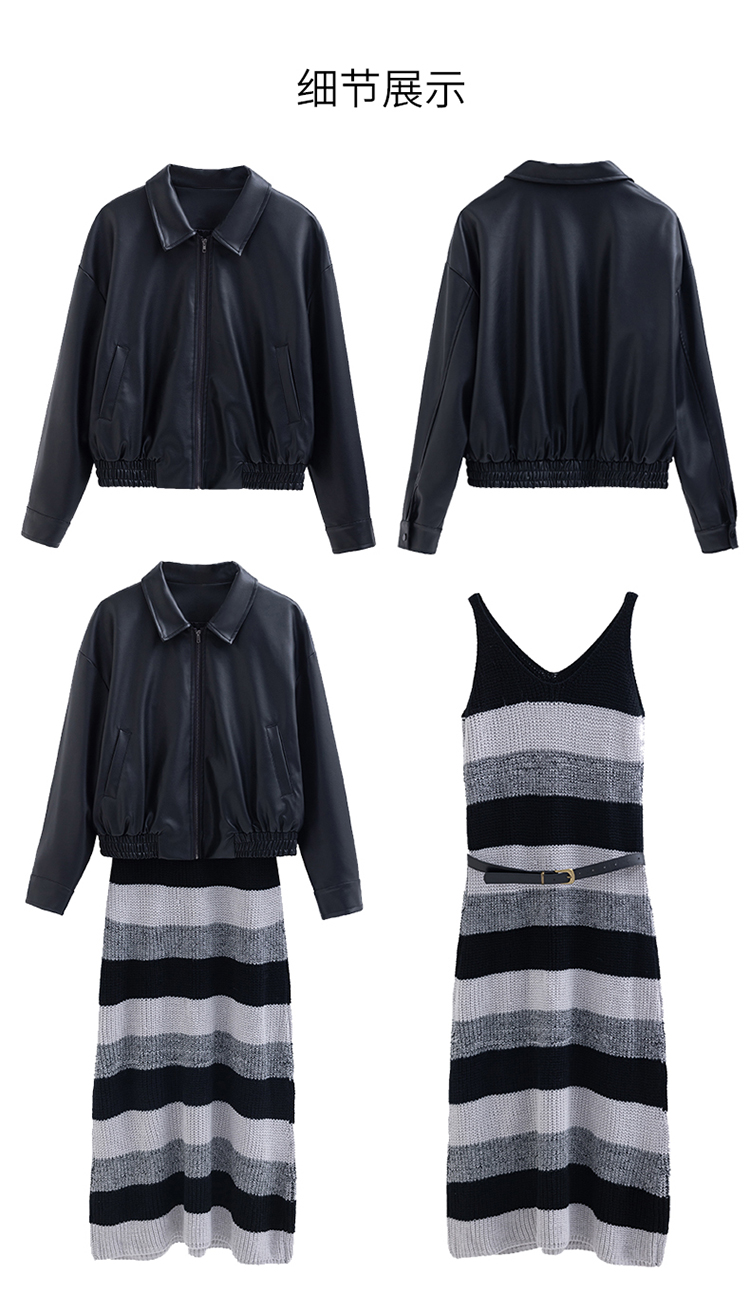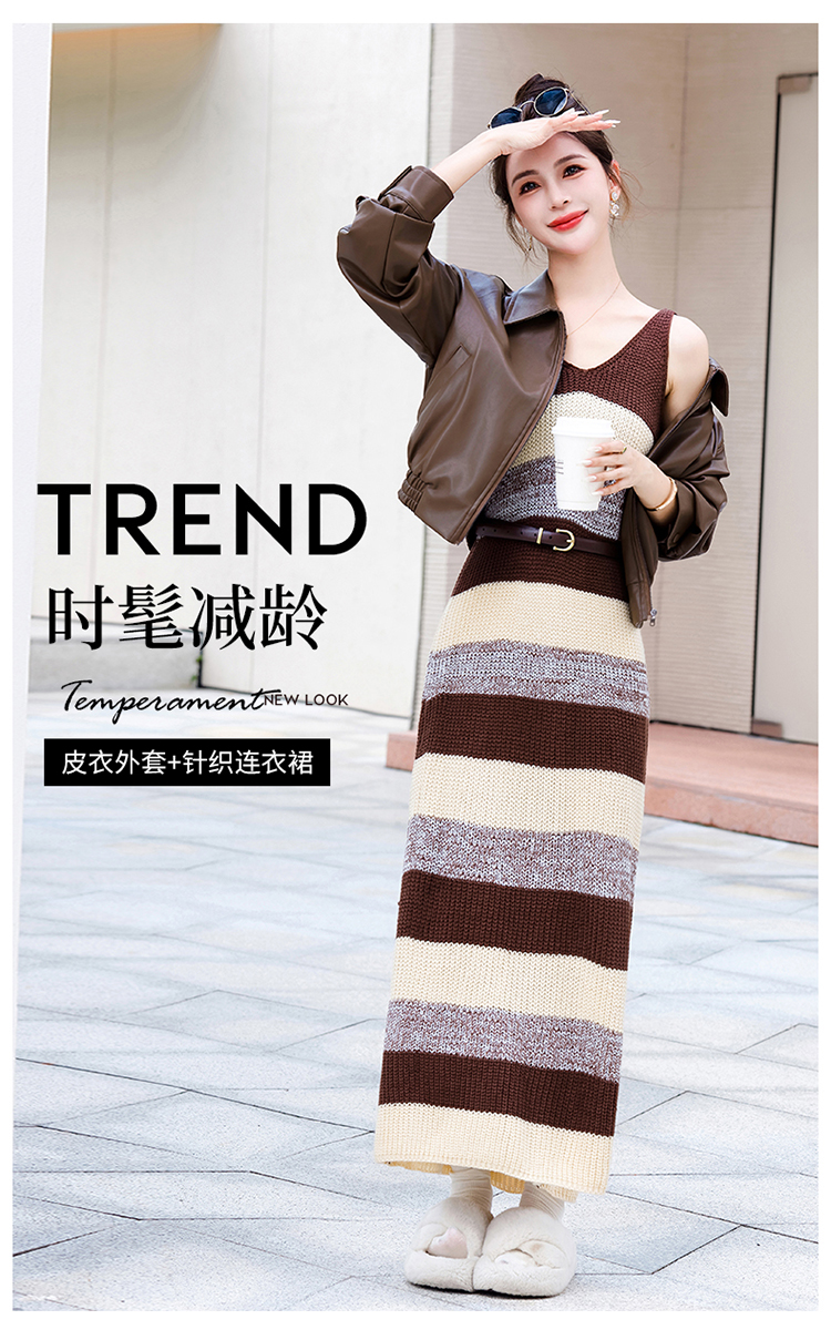 时尚百搭,新款秋装机车皮甲针织长裙套装HR-YJLY8035