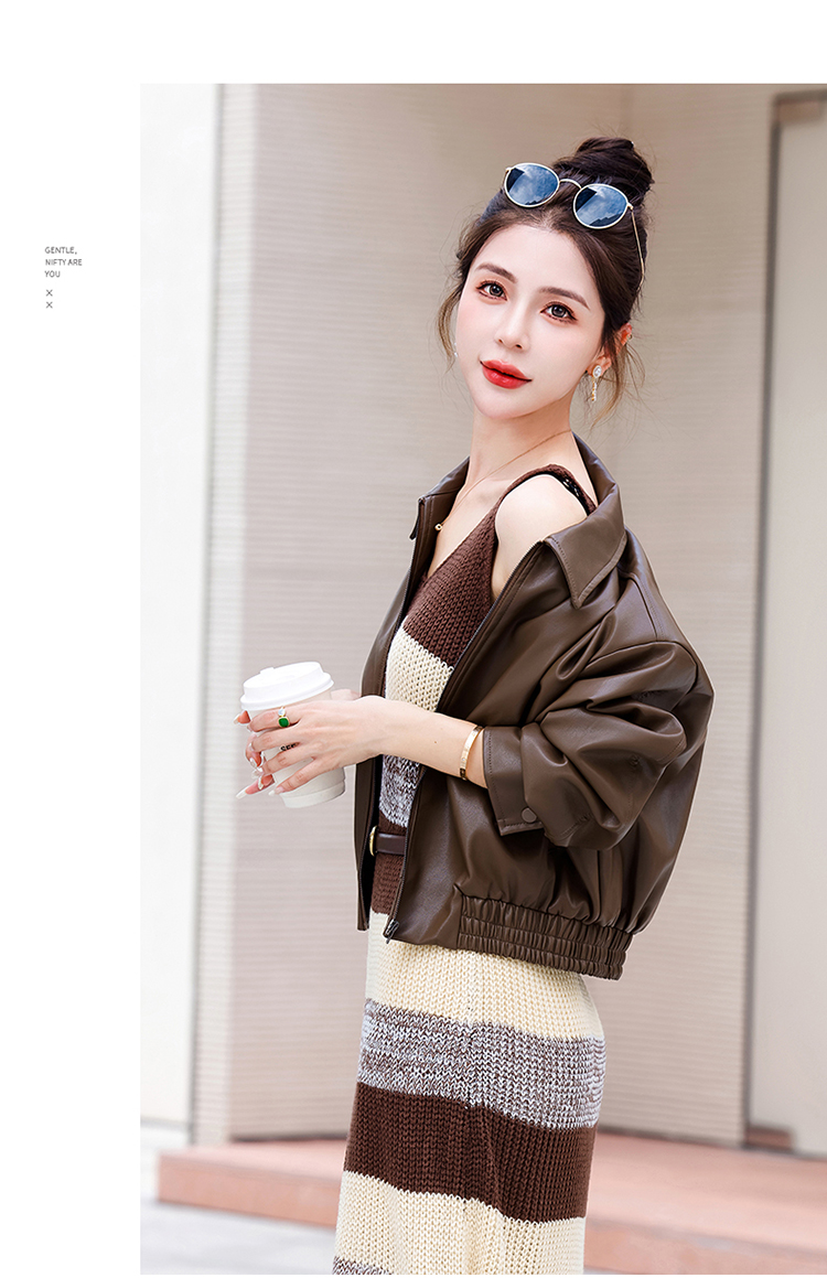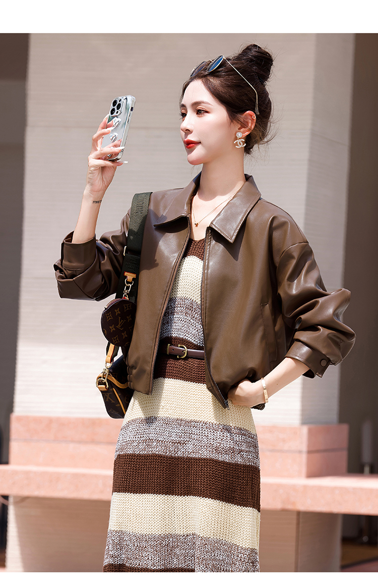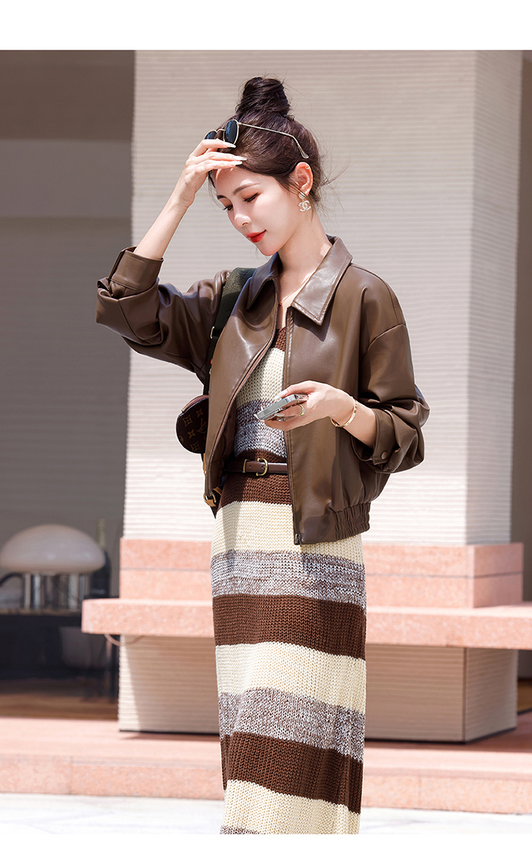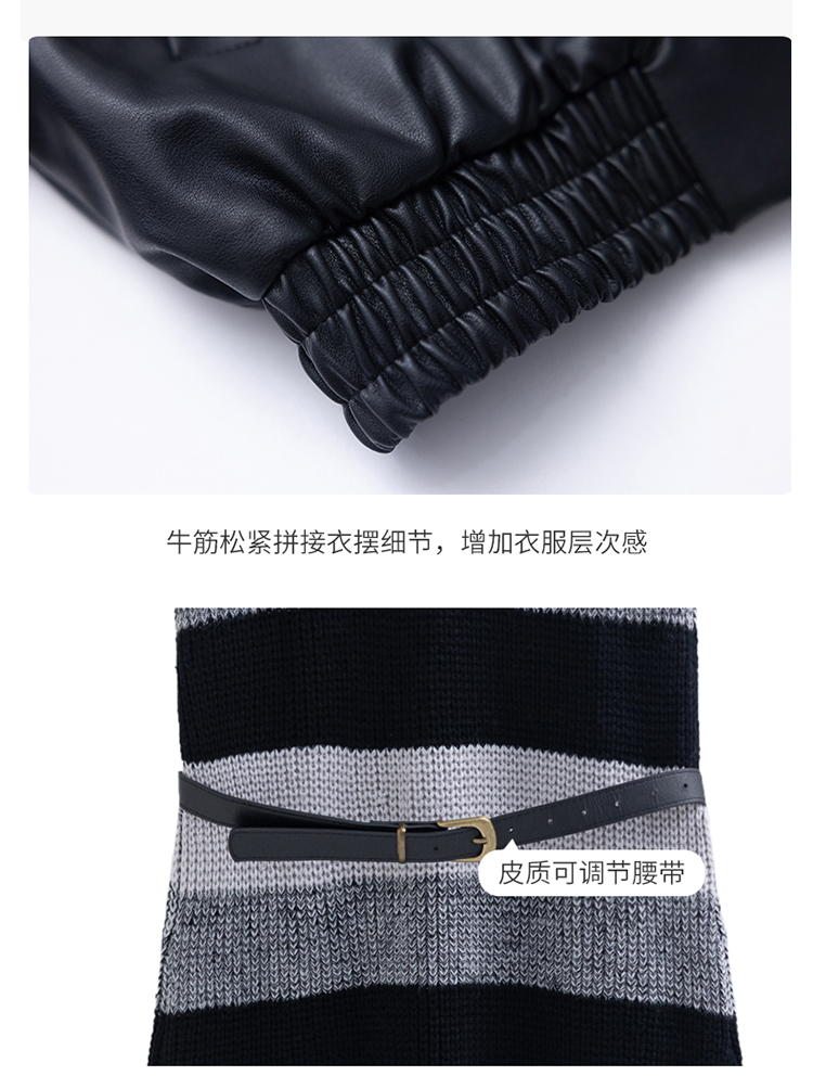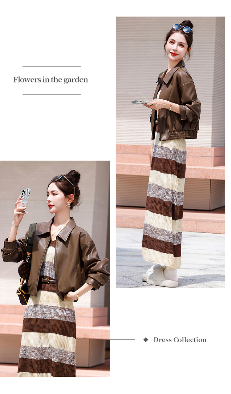 时尚百搭,新款秋装机车皮甲针织长裙套装HR-YJLY8035