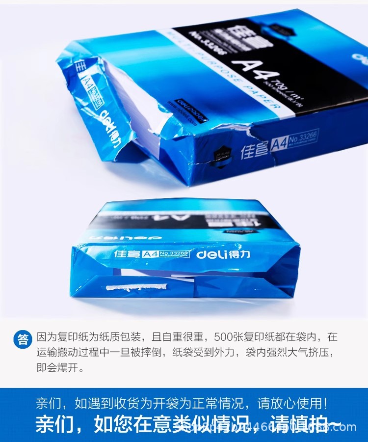 得力A4复印纸5包70g佳宣打印批发80g整箱铭锐A4纸经典办公纸免邮