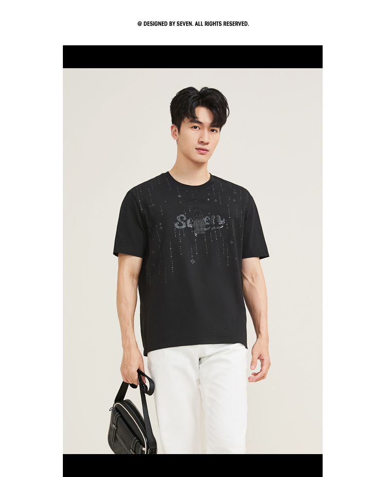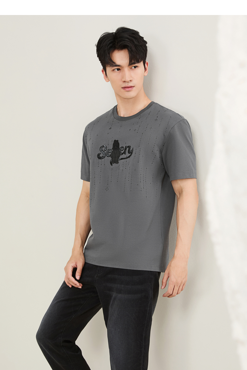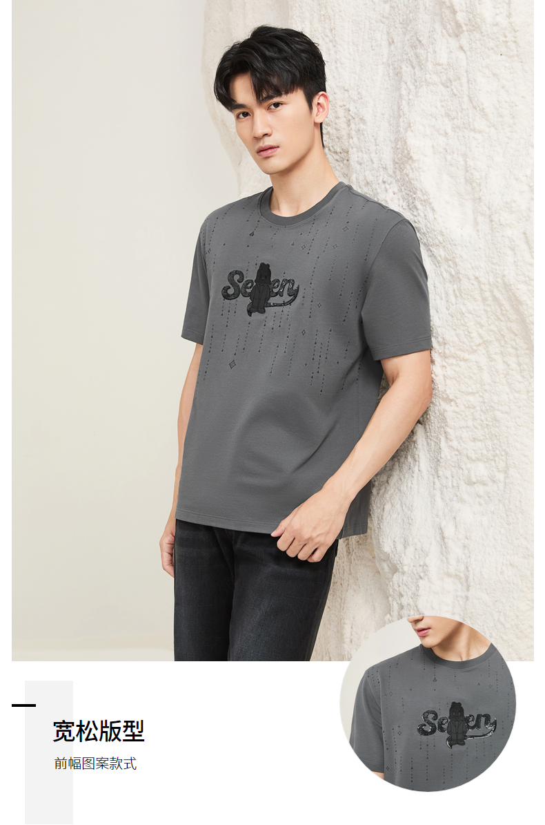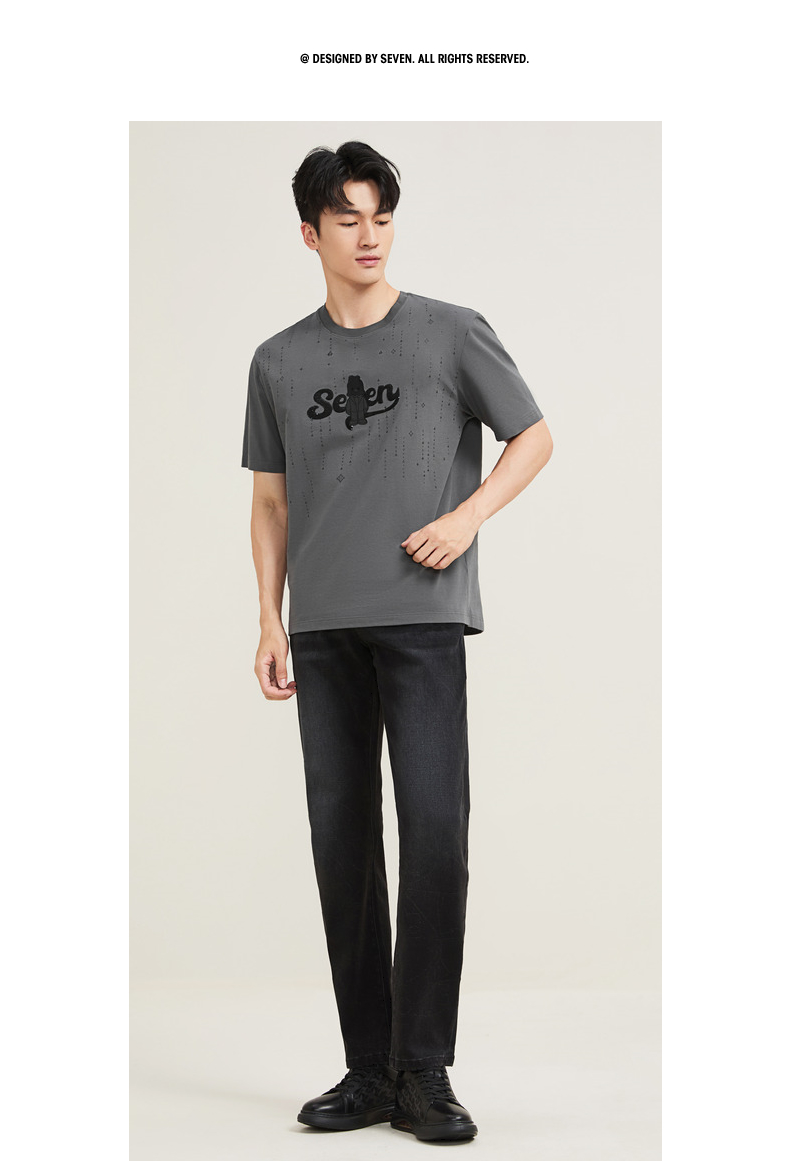 【柒先生/肌理面料/重磅T恤】柒牌男装2025夏季短袖时尚T130T70050