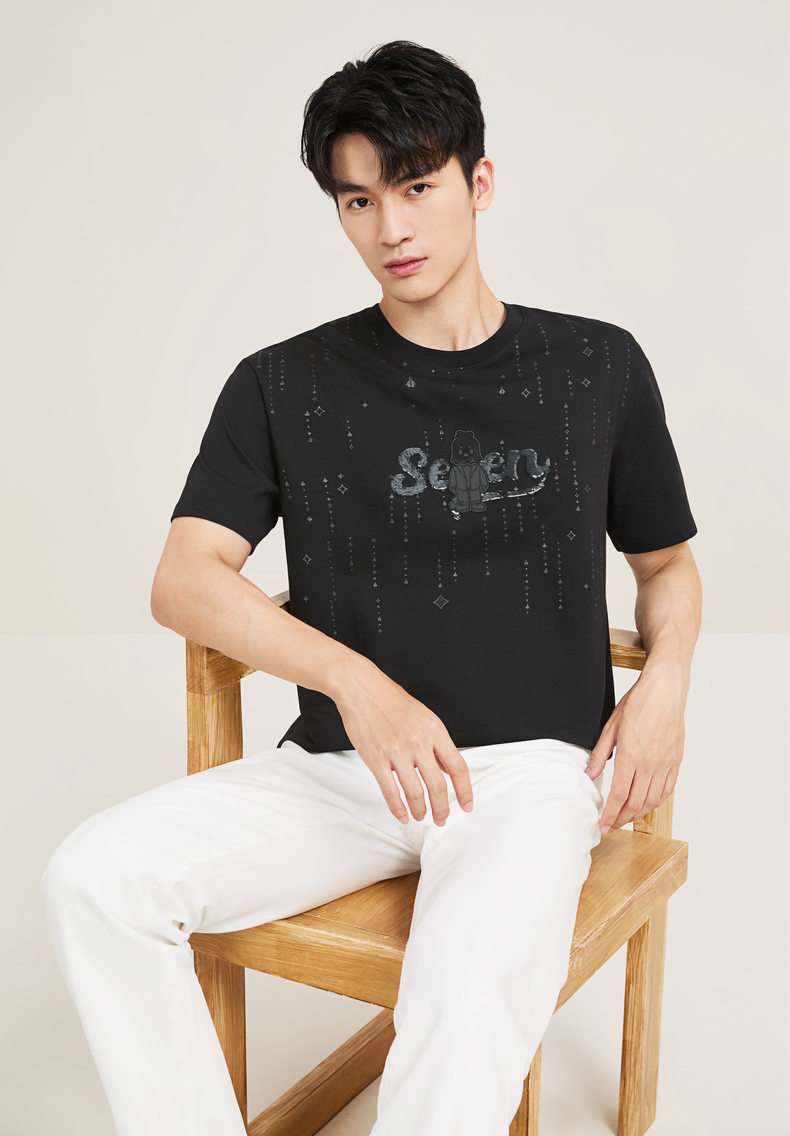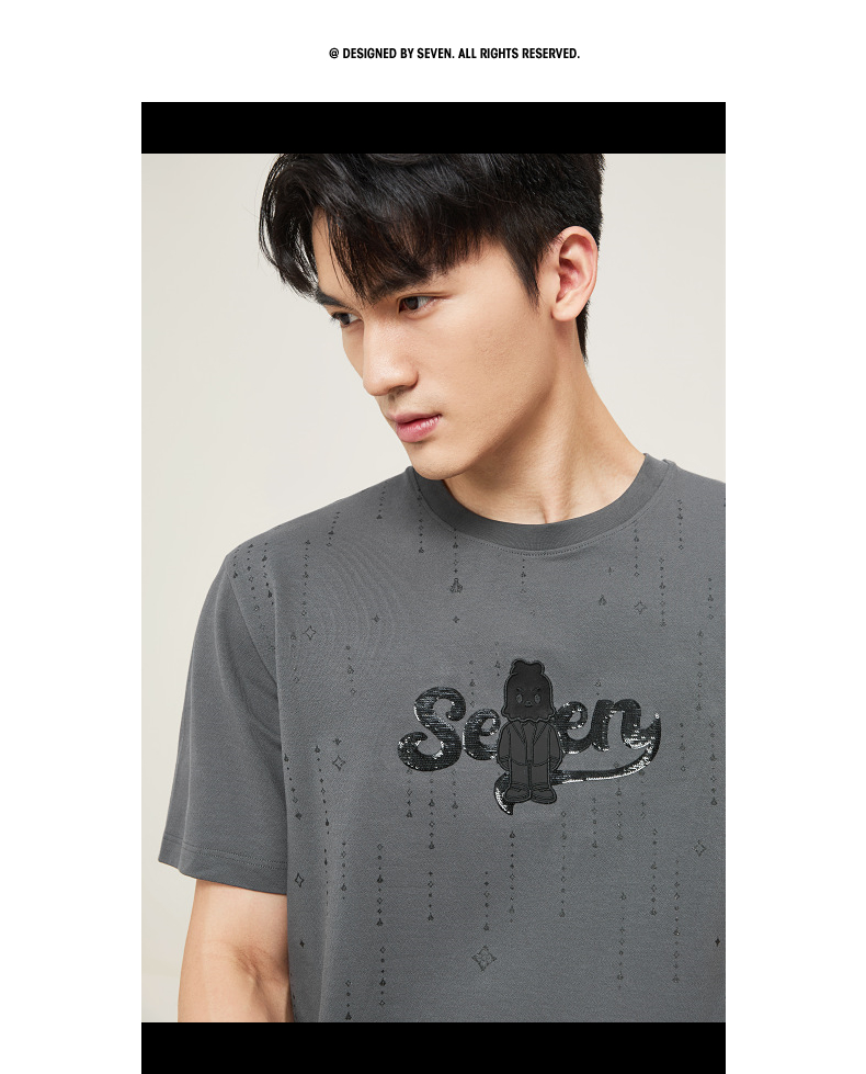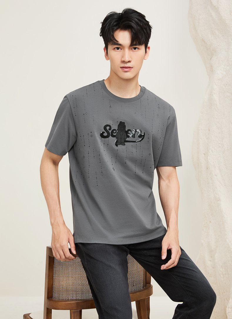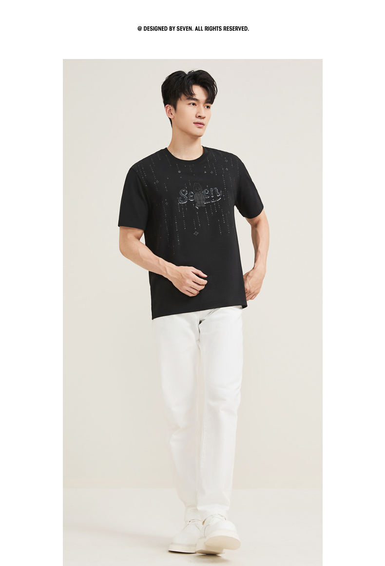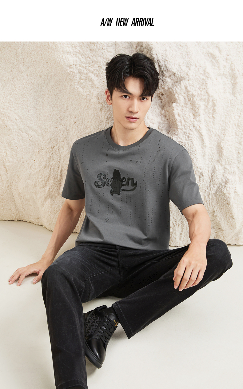 【柒先生/肌理面料/重磅T恤】柒牌男装2025夏季短袖时尚T130T70050