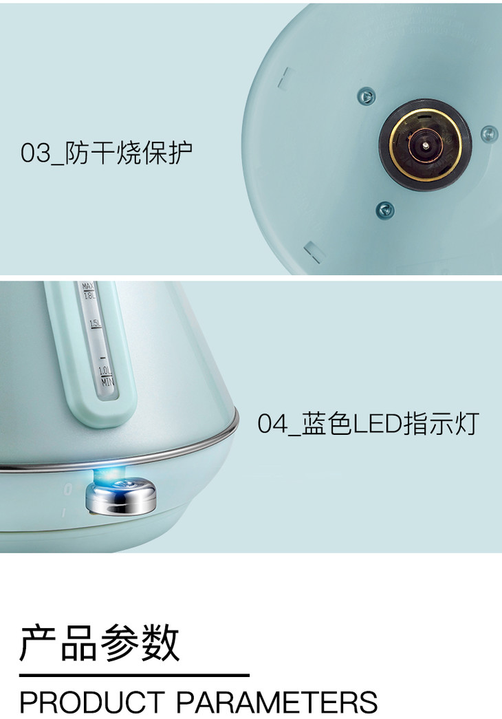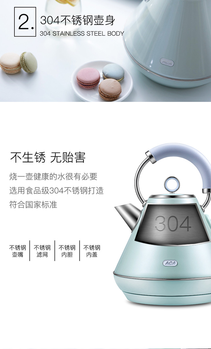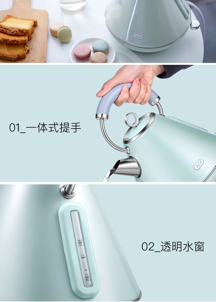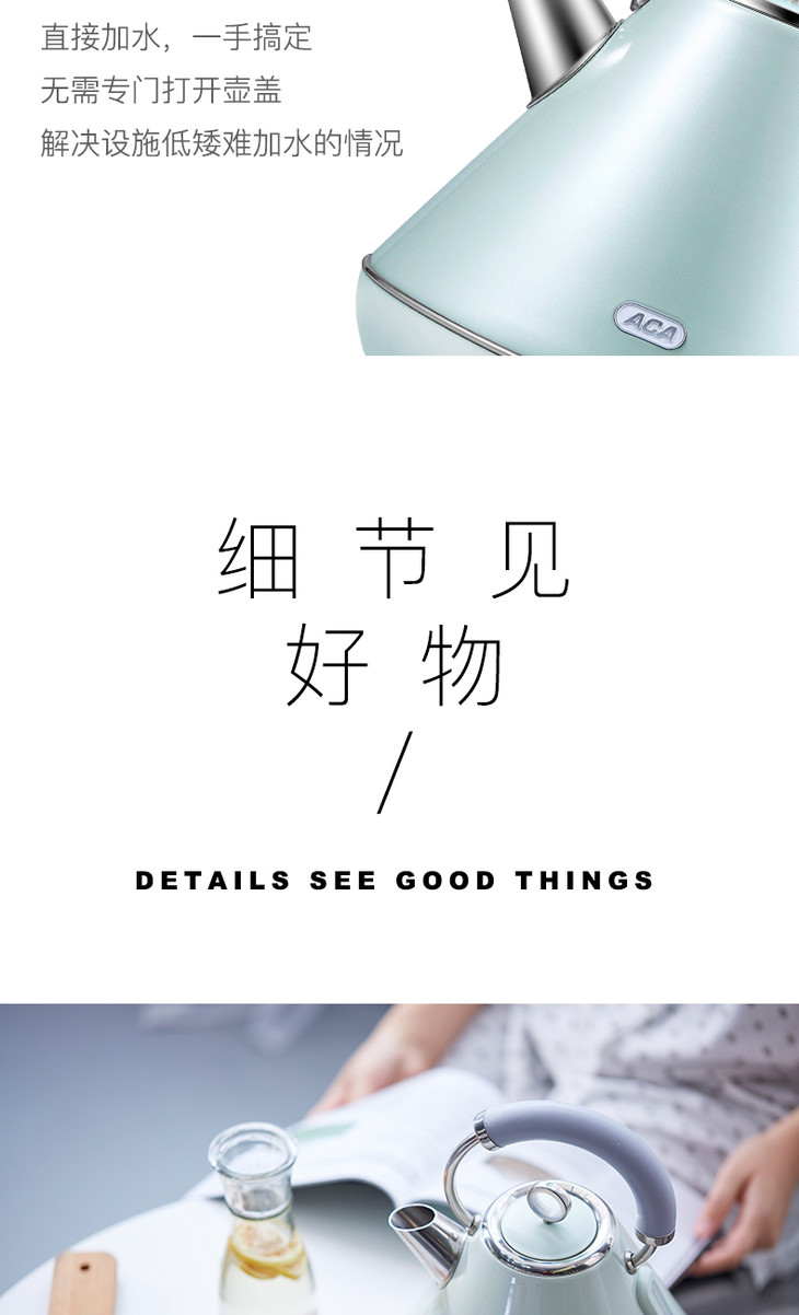 ACA/北美电器 AK-SC18A 电热水壶家用自动断电防干烧不锈钢热水壶