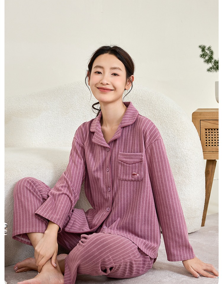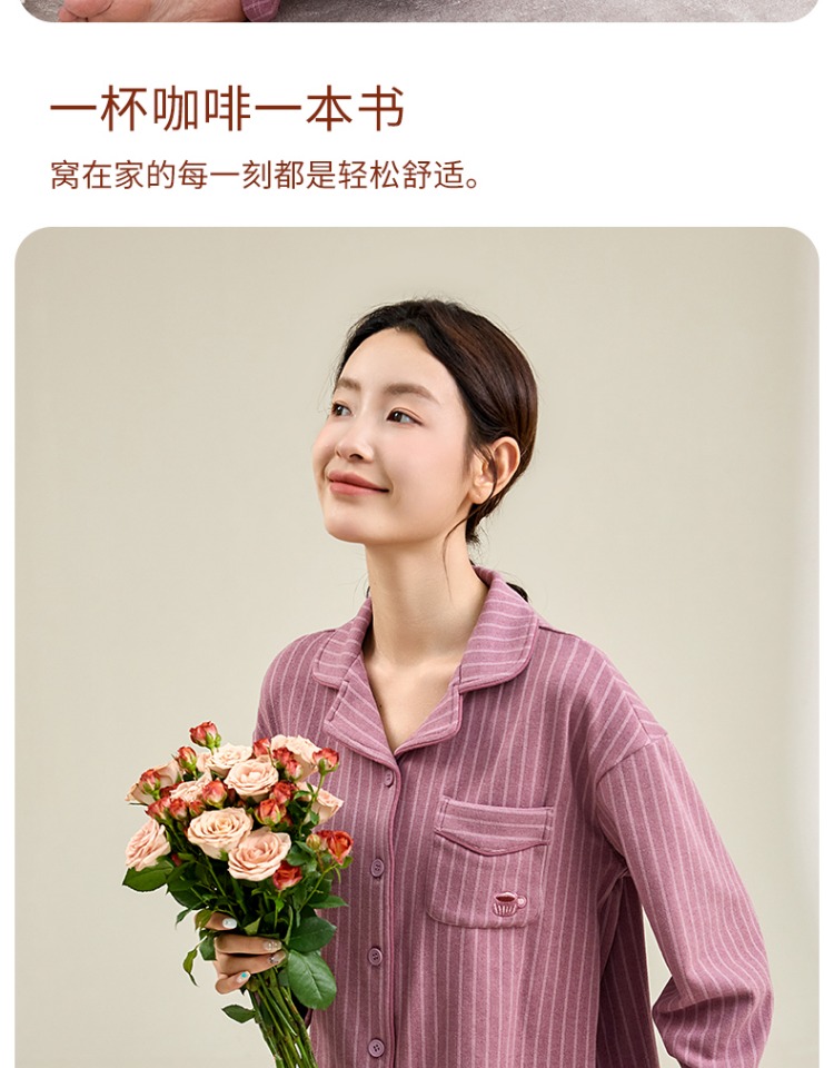 康妮雅女式长袖长裤开襟套装